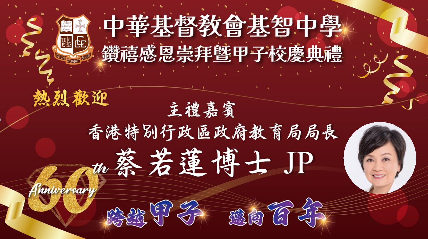 日期:2025年10月31日(星期五) 地點:本校禮堂 時間:10:00 a.m. 主禮嘉賓:香港特別行政區政府教育局局長 蔡若蓮博士 JP 證道:中華基督教會香港區會總幹事 王家輝牧師