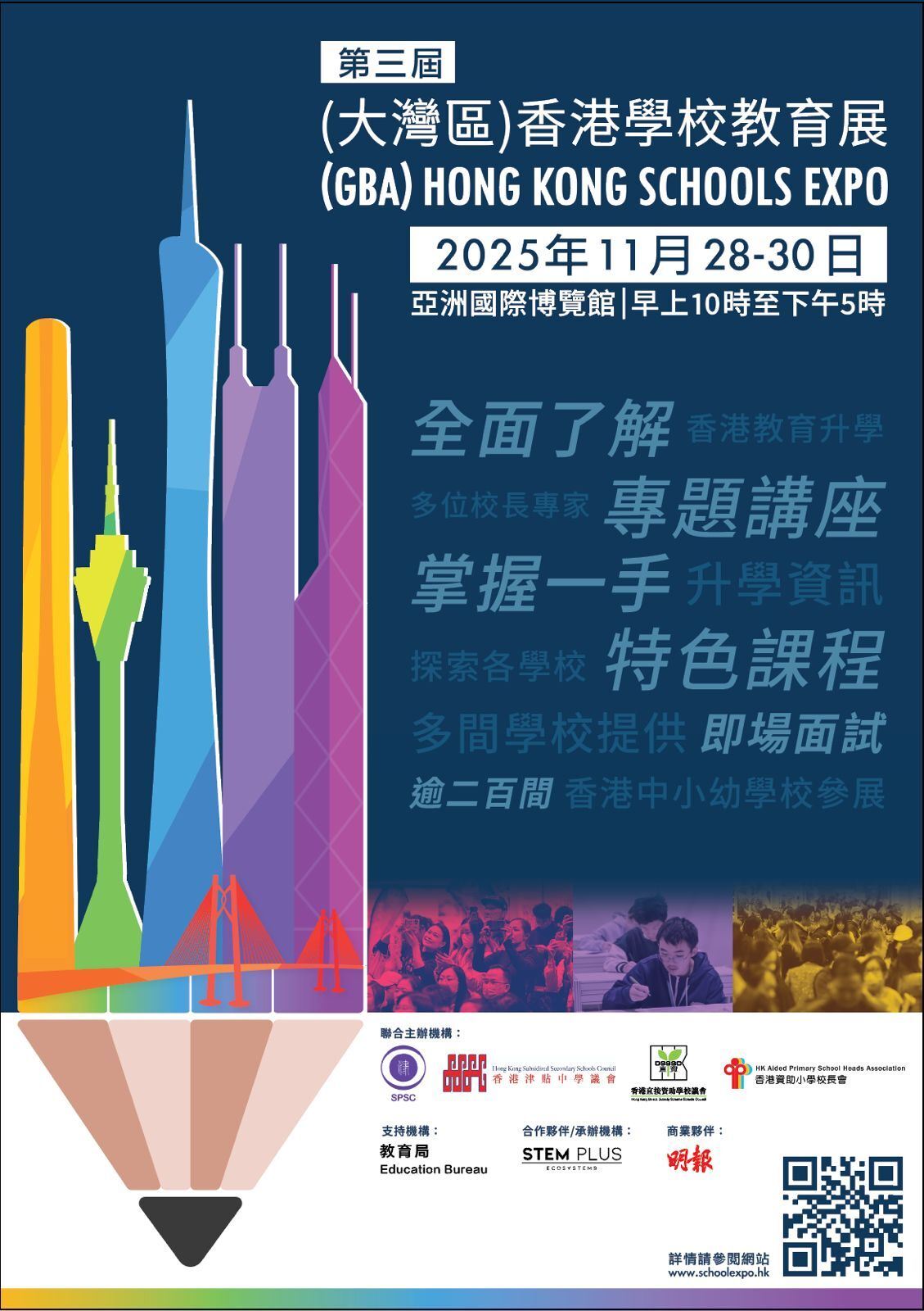 本校將於參展第三屆(大灣區)香港學校教育展(本校展位:A14),活動詳情如下: