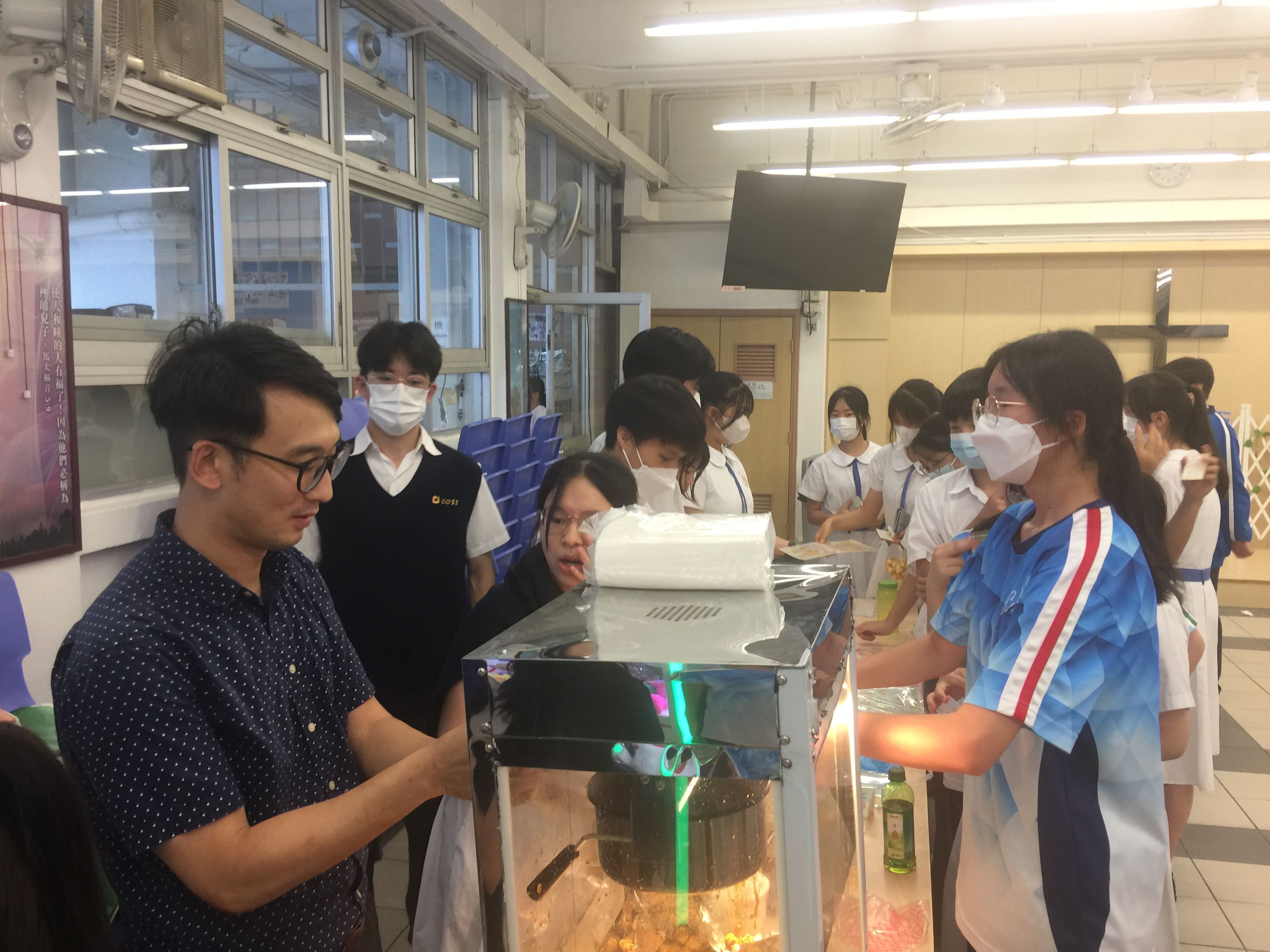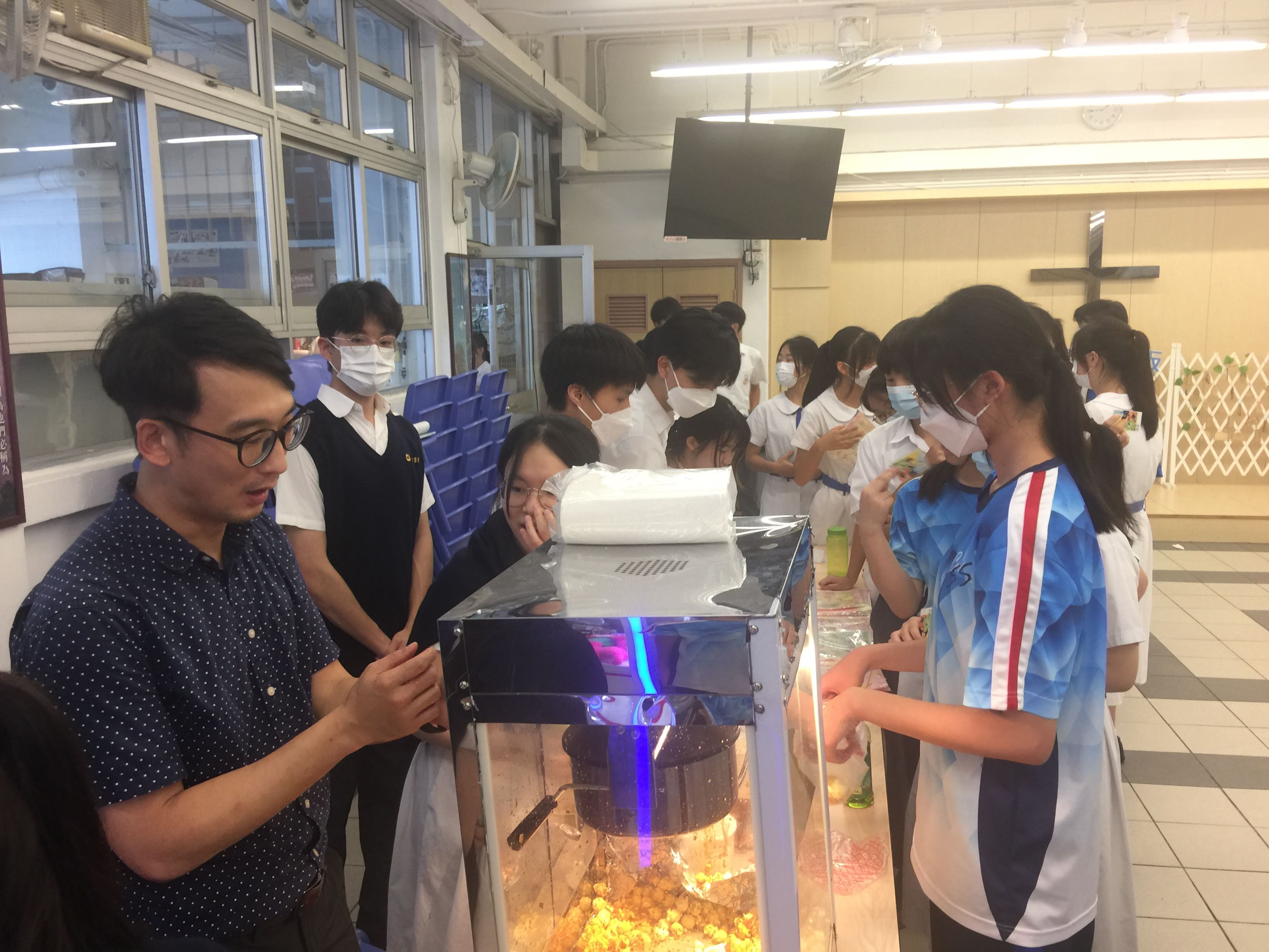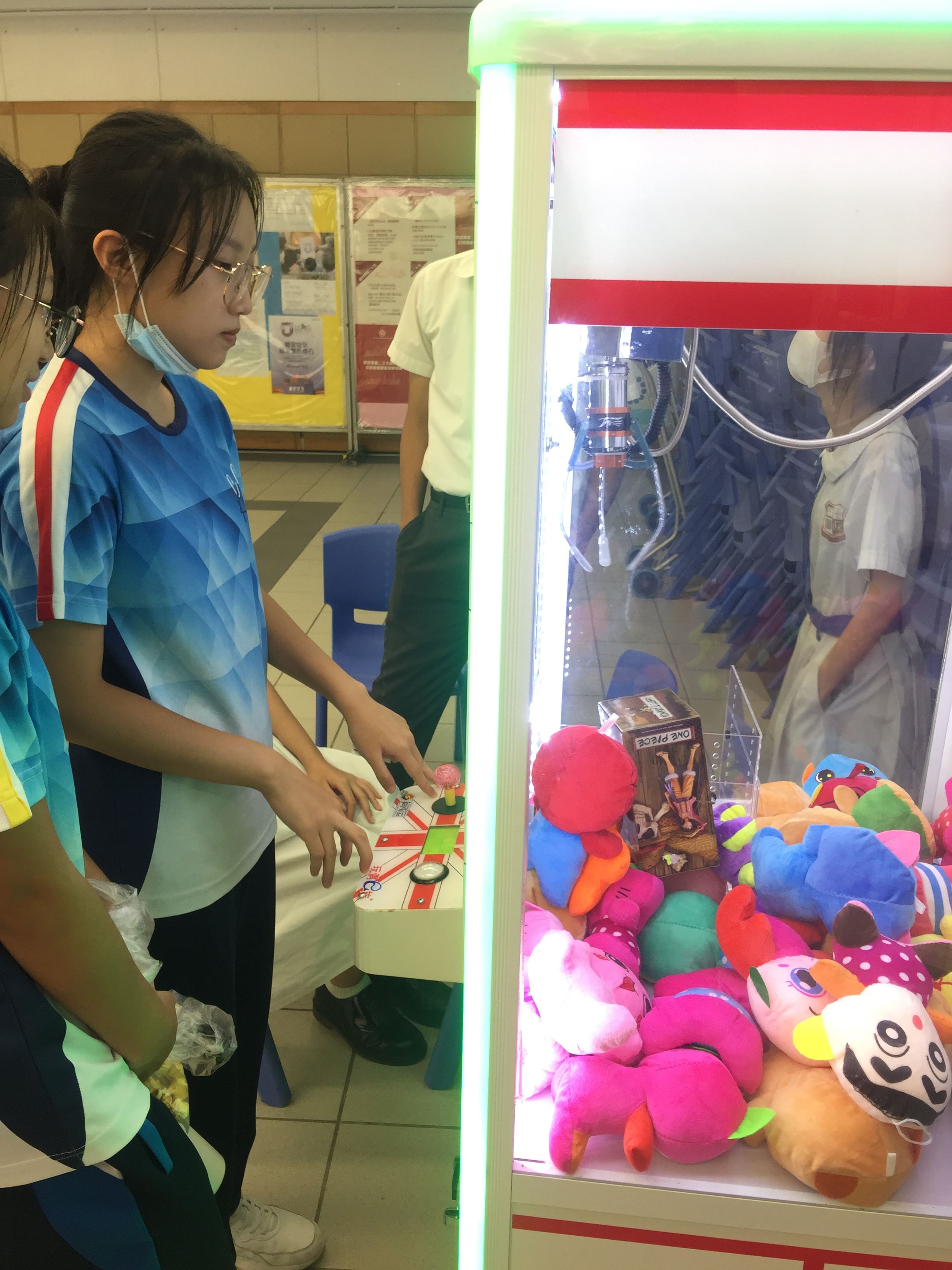 5月社際月活動順利完成。學生早前透過出席社際月活動打氣儲印仔,並於今日午膳時間換爆谷和禮品。他們更可以夾公仔。