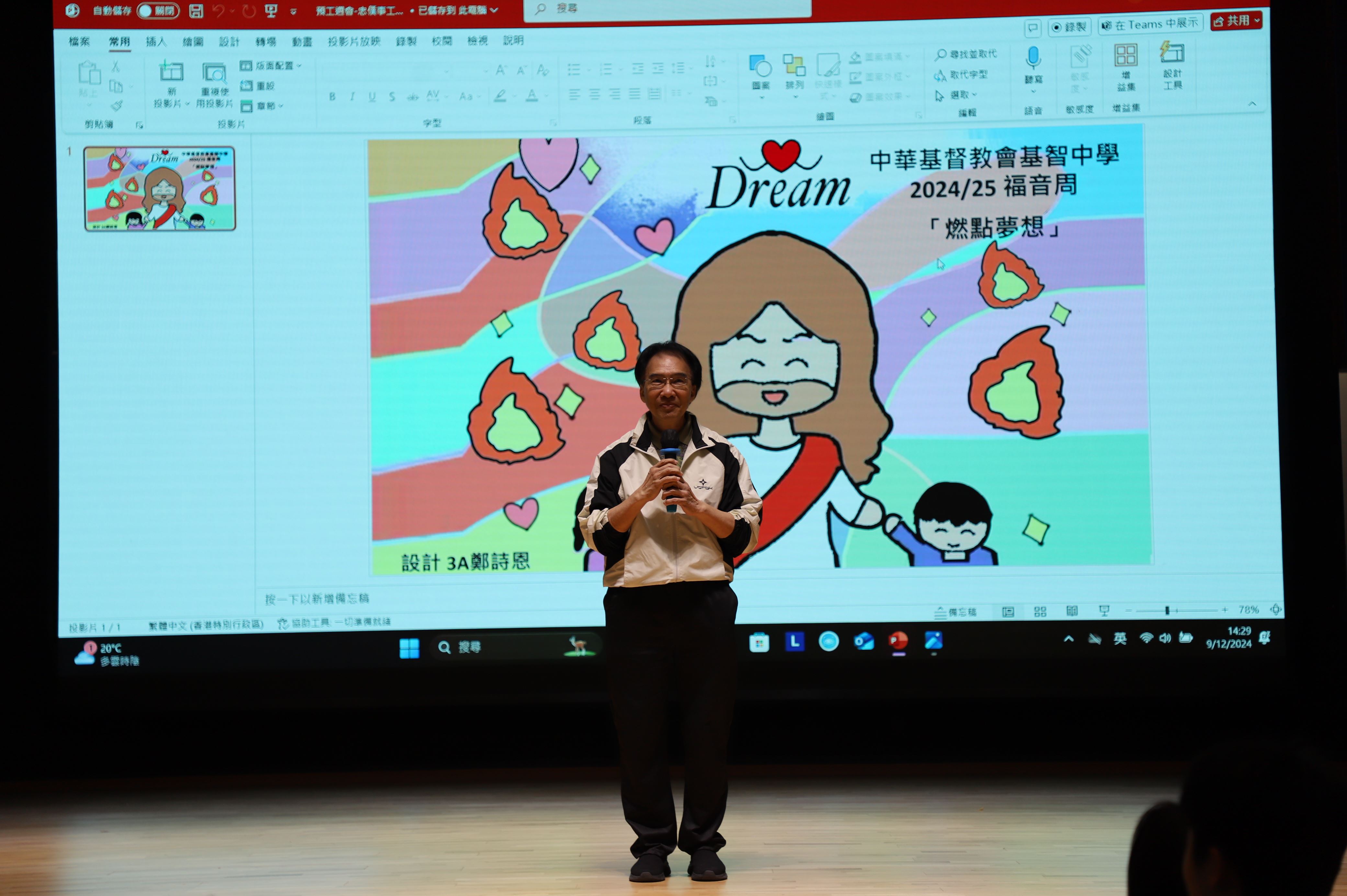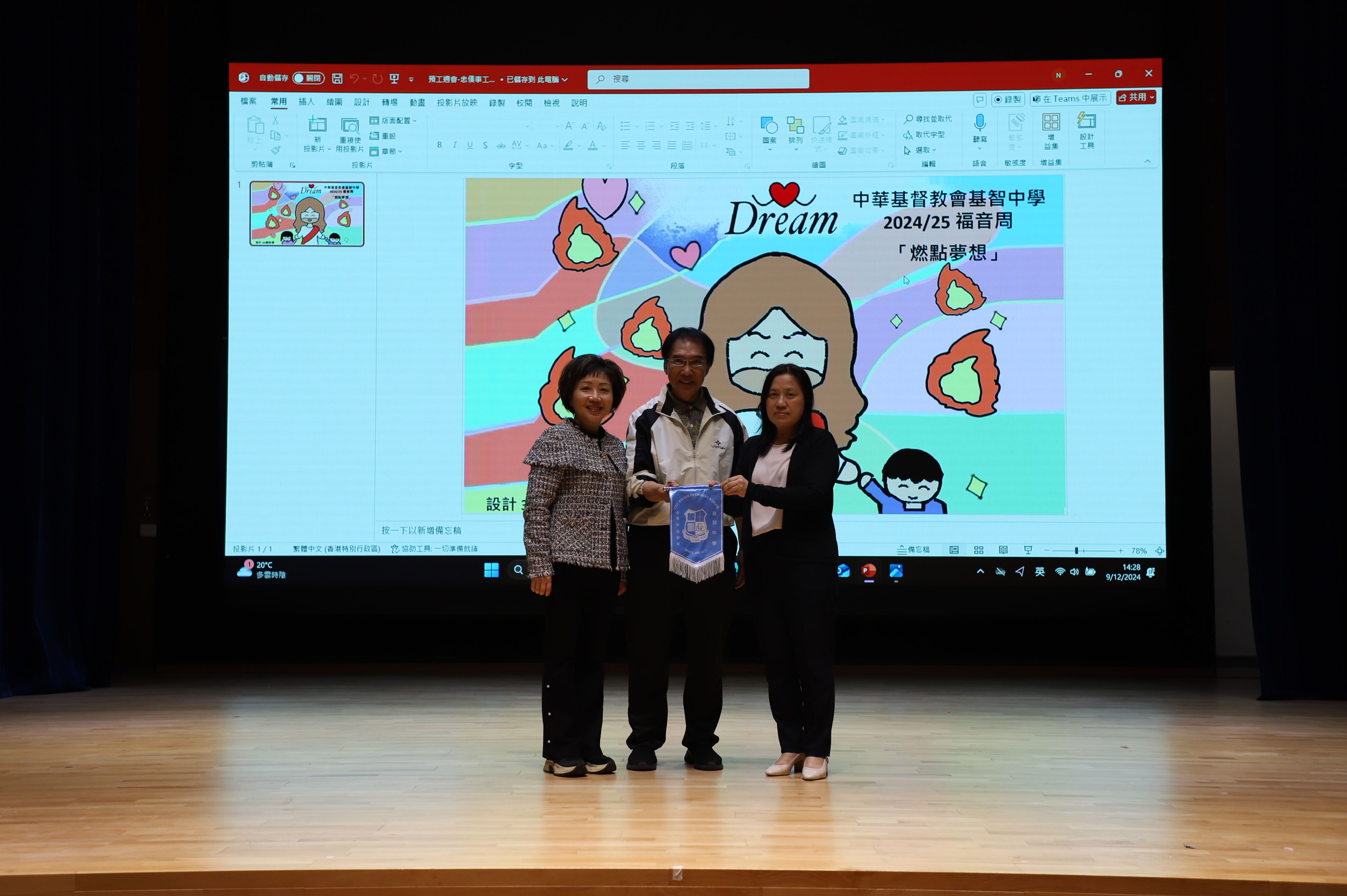 福音周「燃點夢想」於12月9日早上正式展開。這天一群基督精兵在學校門口派發驚喜小禮物,鼓勵同學們發掘夢想。今年我校有幸邀請到愛基金協助籌備福音周,下午的福音周預工周會有幸邀請到許朝英博士分享見證和表演武術,讓同學們在信仰上能夠有所得著。