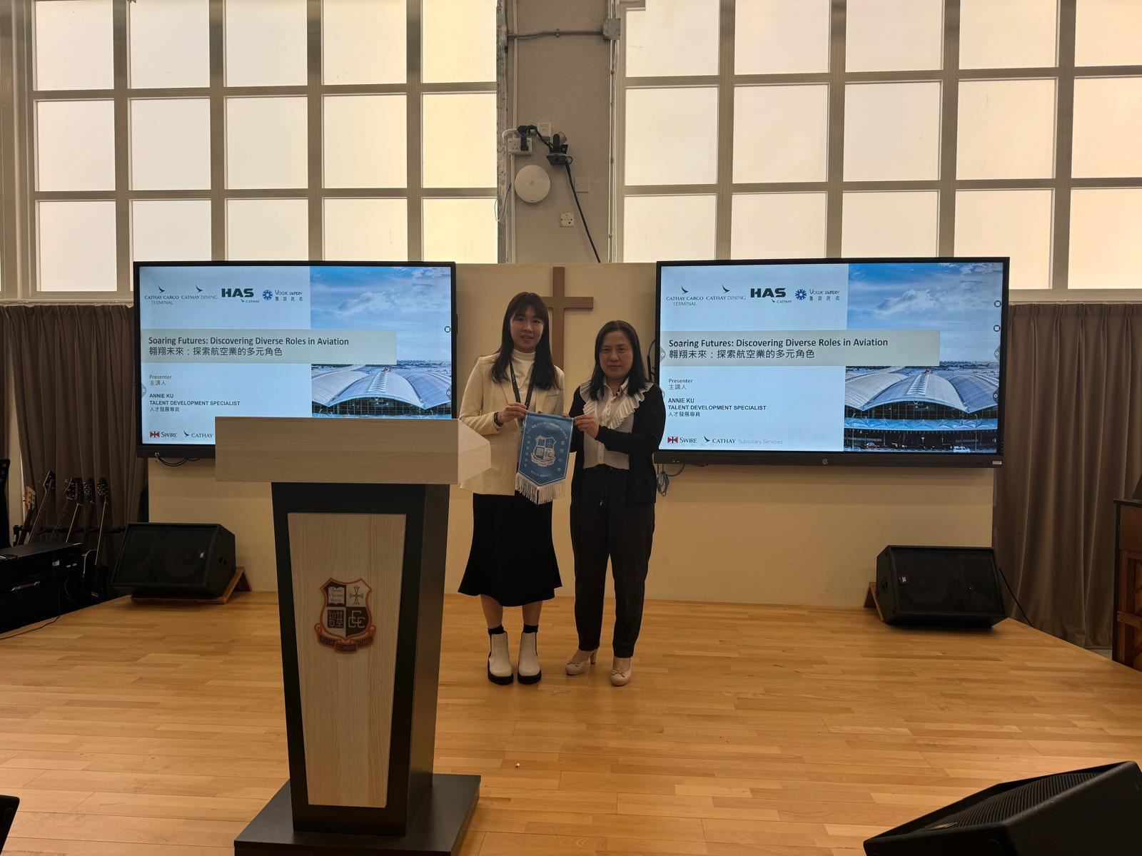 修讀中五其他學習經歷的學生於12月12日參加國泰附屬服務到校職業講座。學生透過是次活動認識香港機場的工作前景及未來的就業規劃。
