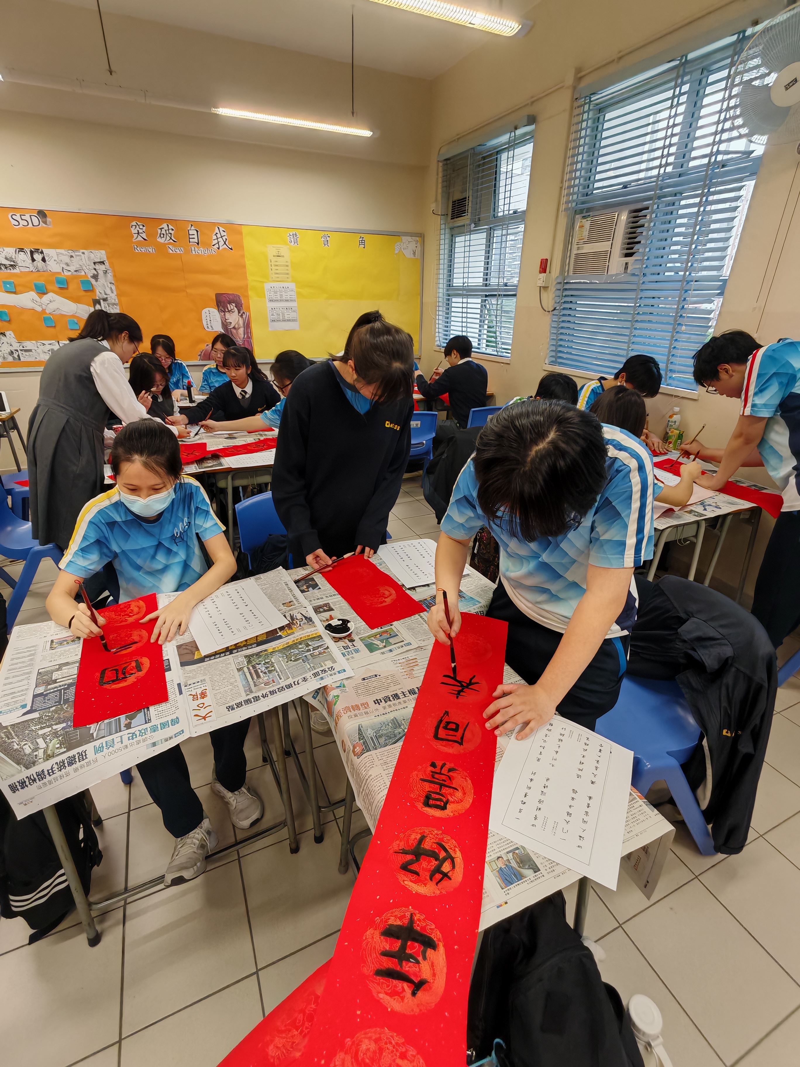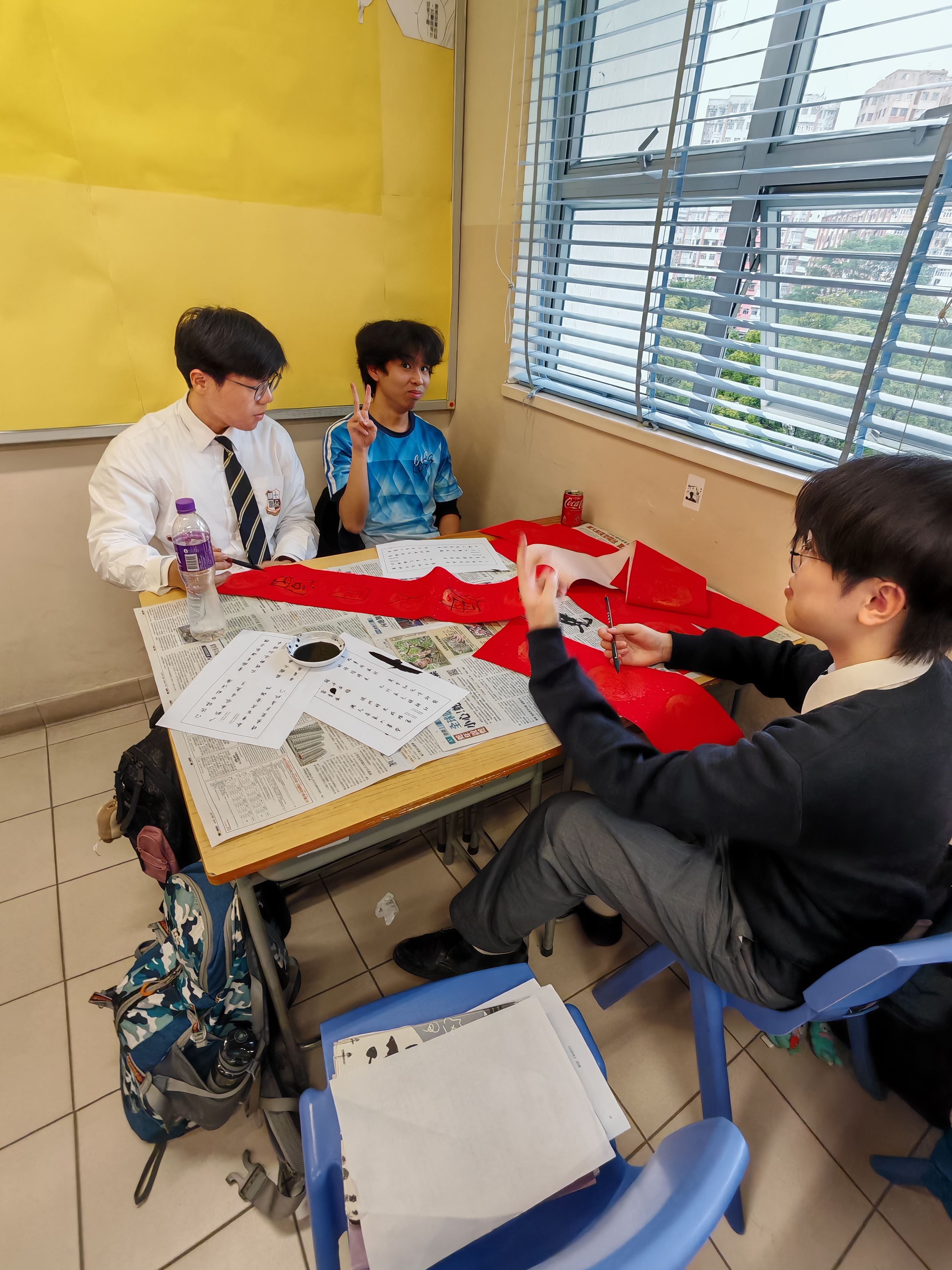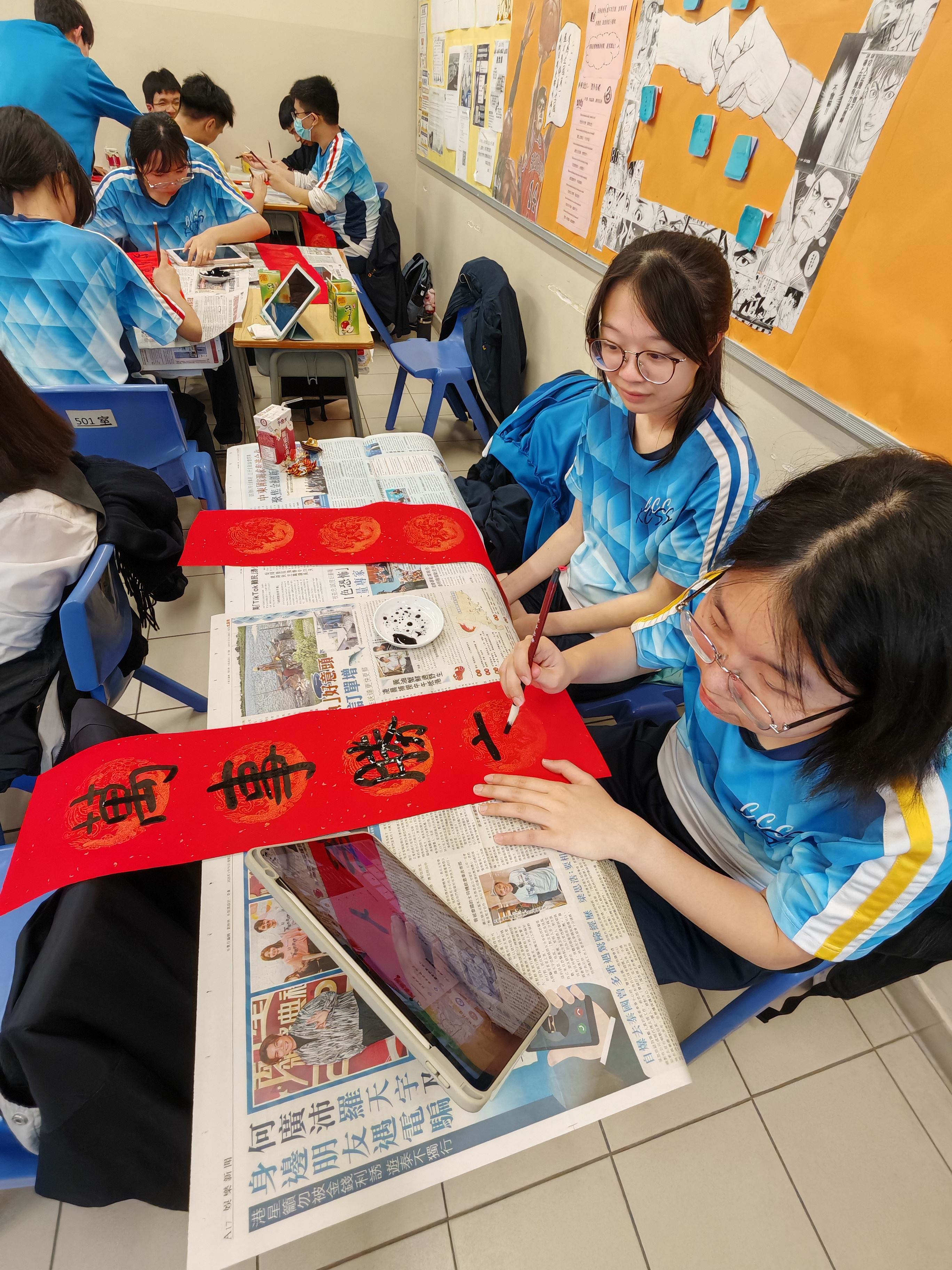 中五級同學於中文課學習中國對聯文化,同學嘗試創作對聯並書寫,樂在其中。