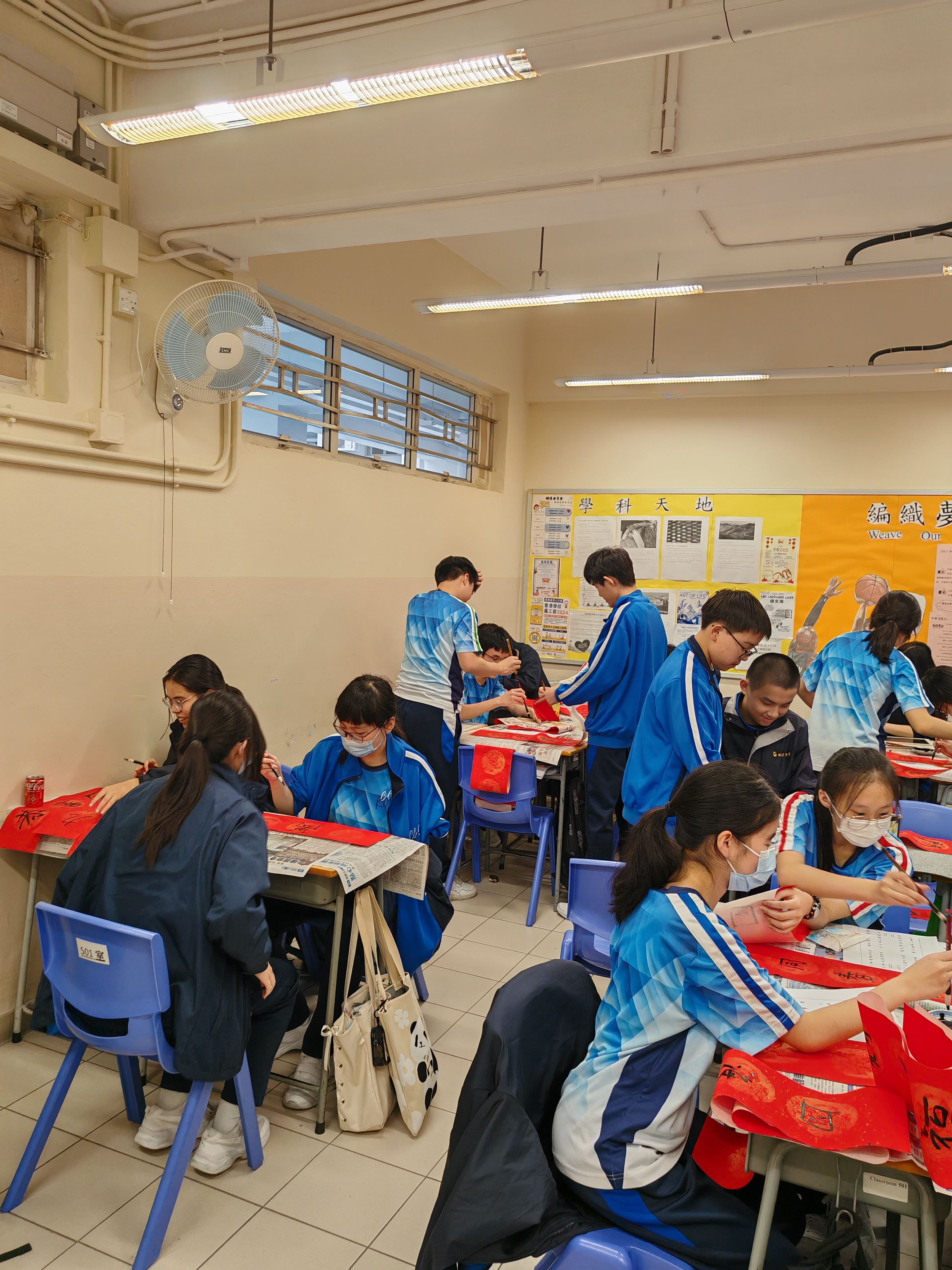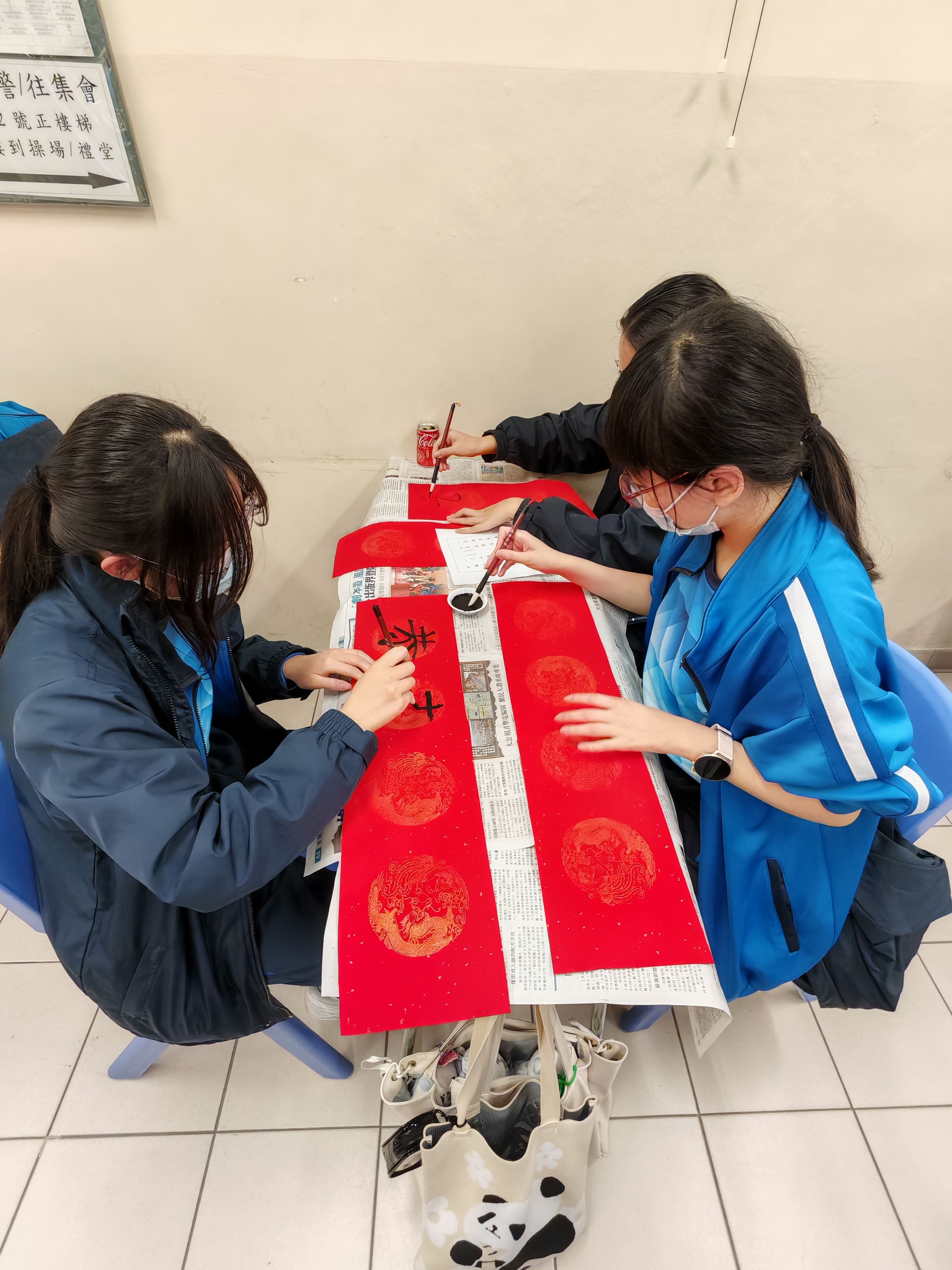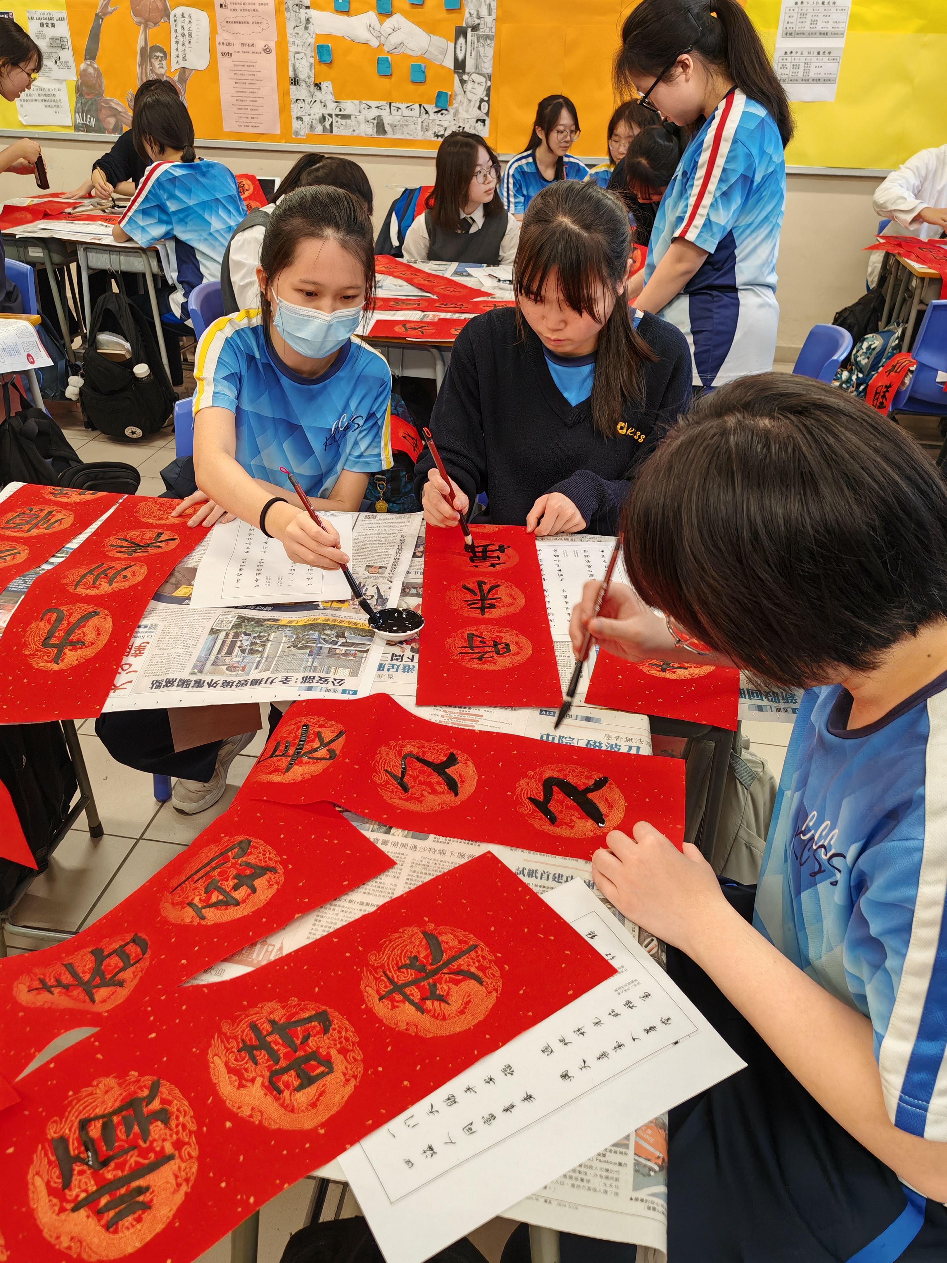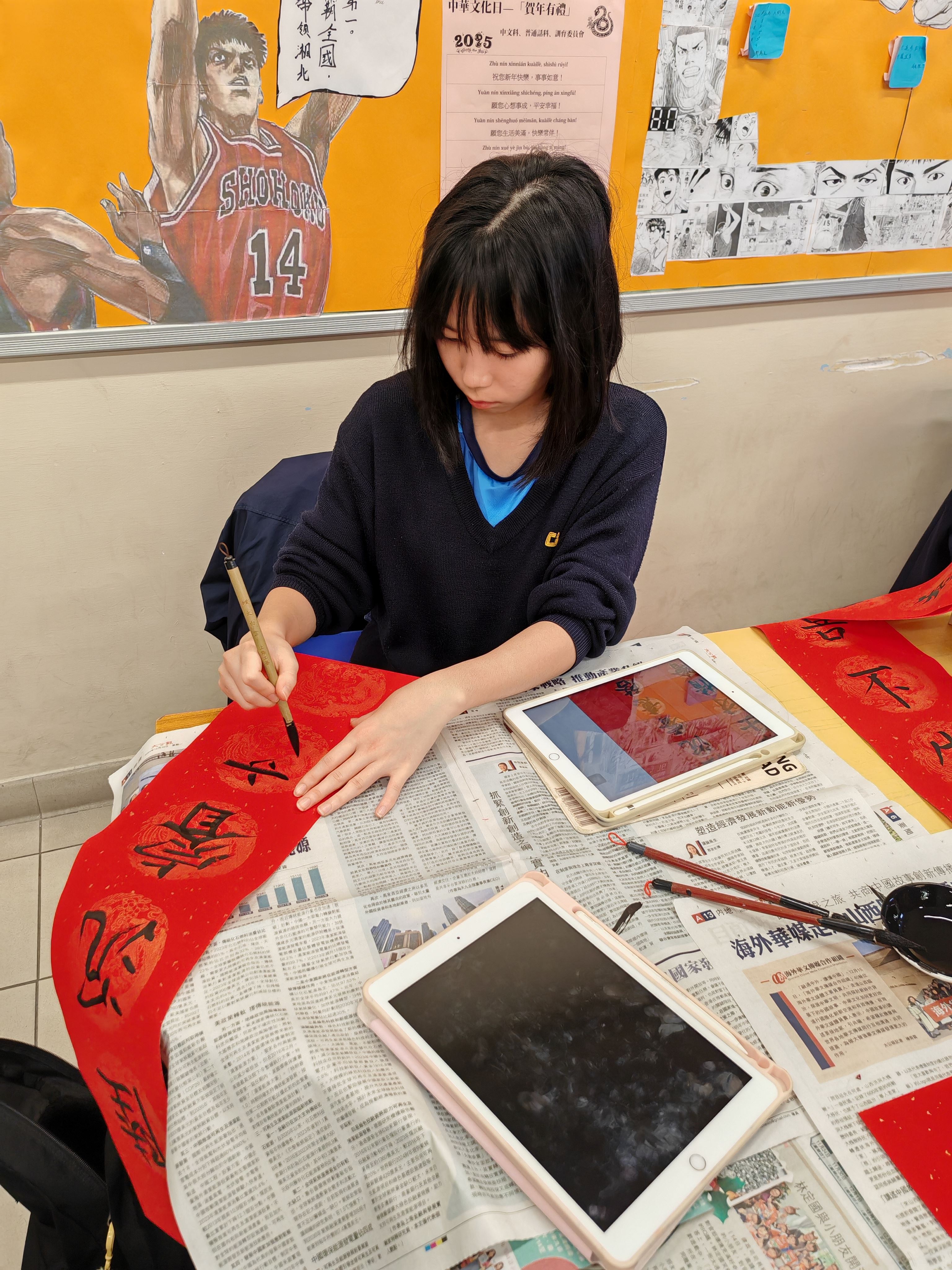 中五級同學於中文課學習中國對聯文化,同學嘗試創作對聯並書寫,樂在其中。