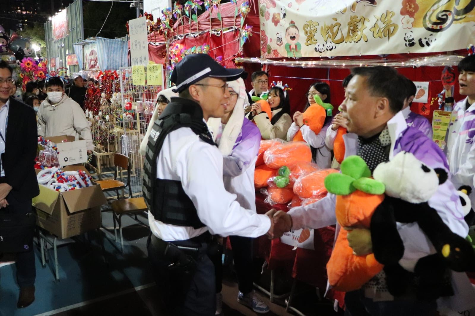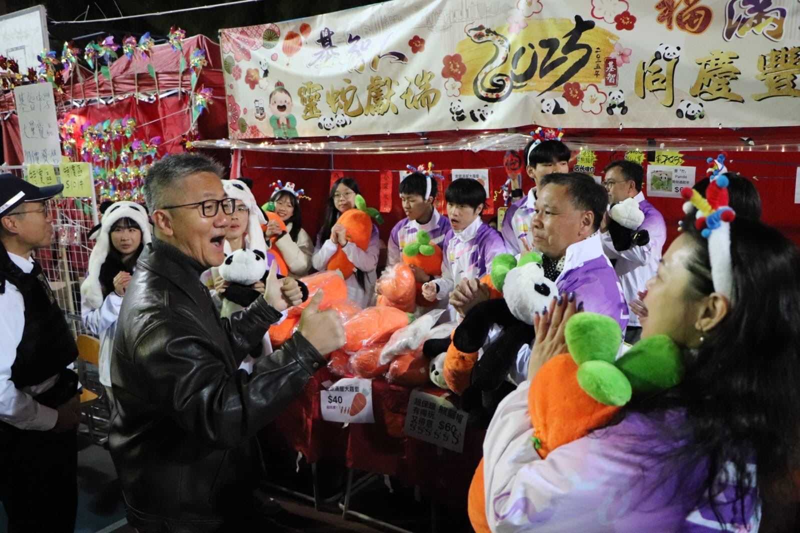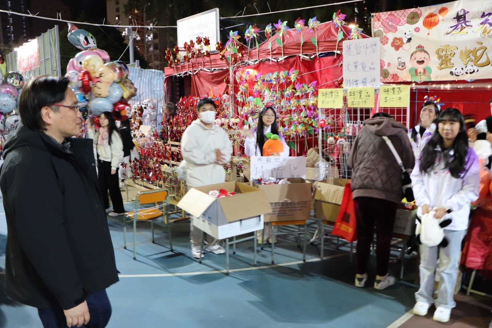 下午政制及內地事務局局長曾國衞、警務處東九龍總區指揮官羅越榮博士、觀塘區區議員柯創盛到訪支持基智中學龍騰市集的年宵攤位。 晚間警務處處長蕭澤頤到臨支持遊樂場公園攤位。在探訪期間,貴賓們與同學交流,同學亦講解年宵如何採購及運用的銷售策略。同日各方好友亦來購物支持同學。年宵活動在一片熱鬧溫馨氣氛下圓滿結束。