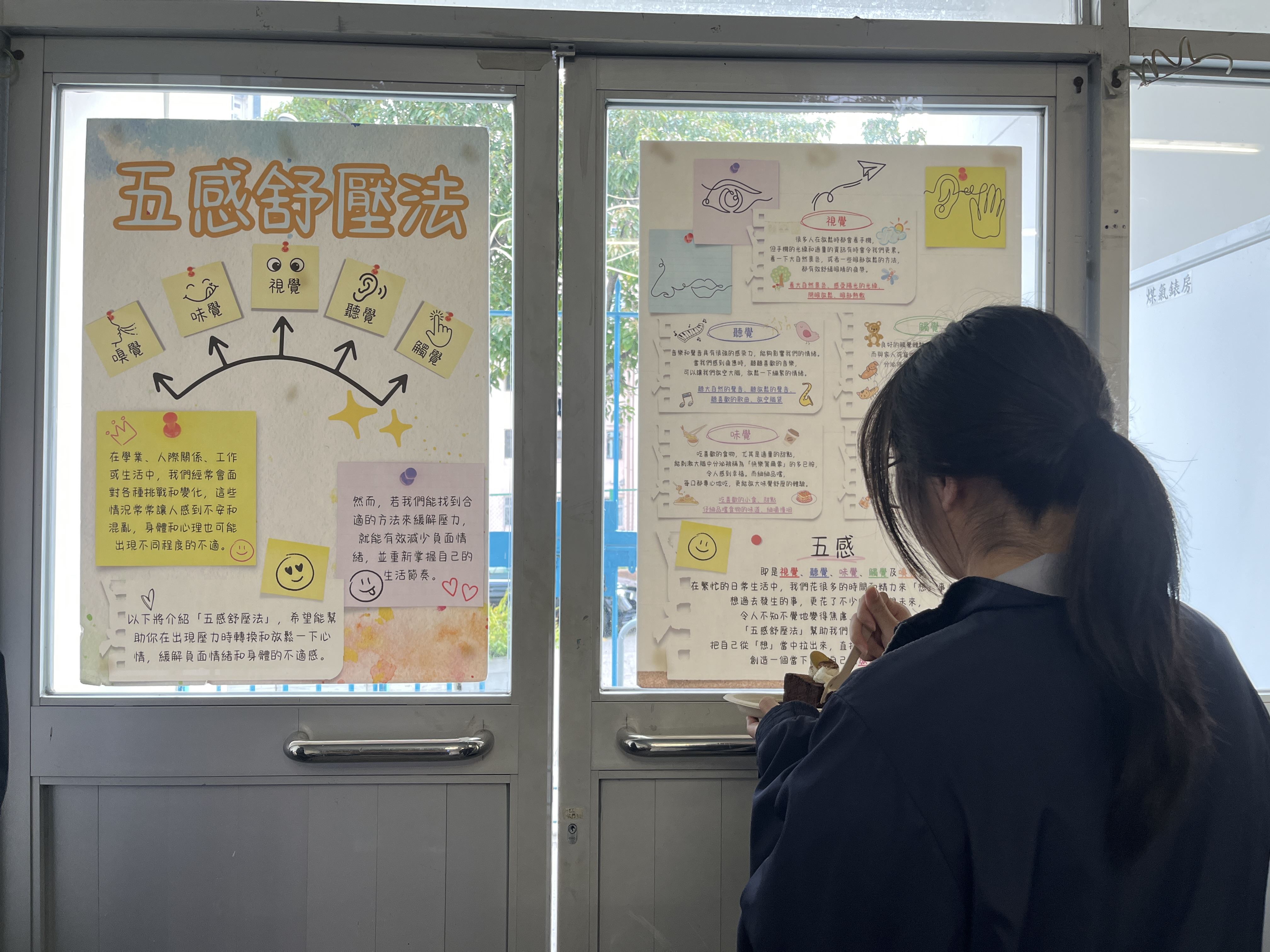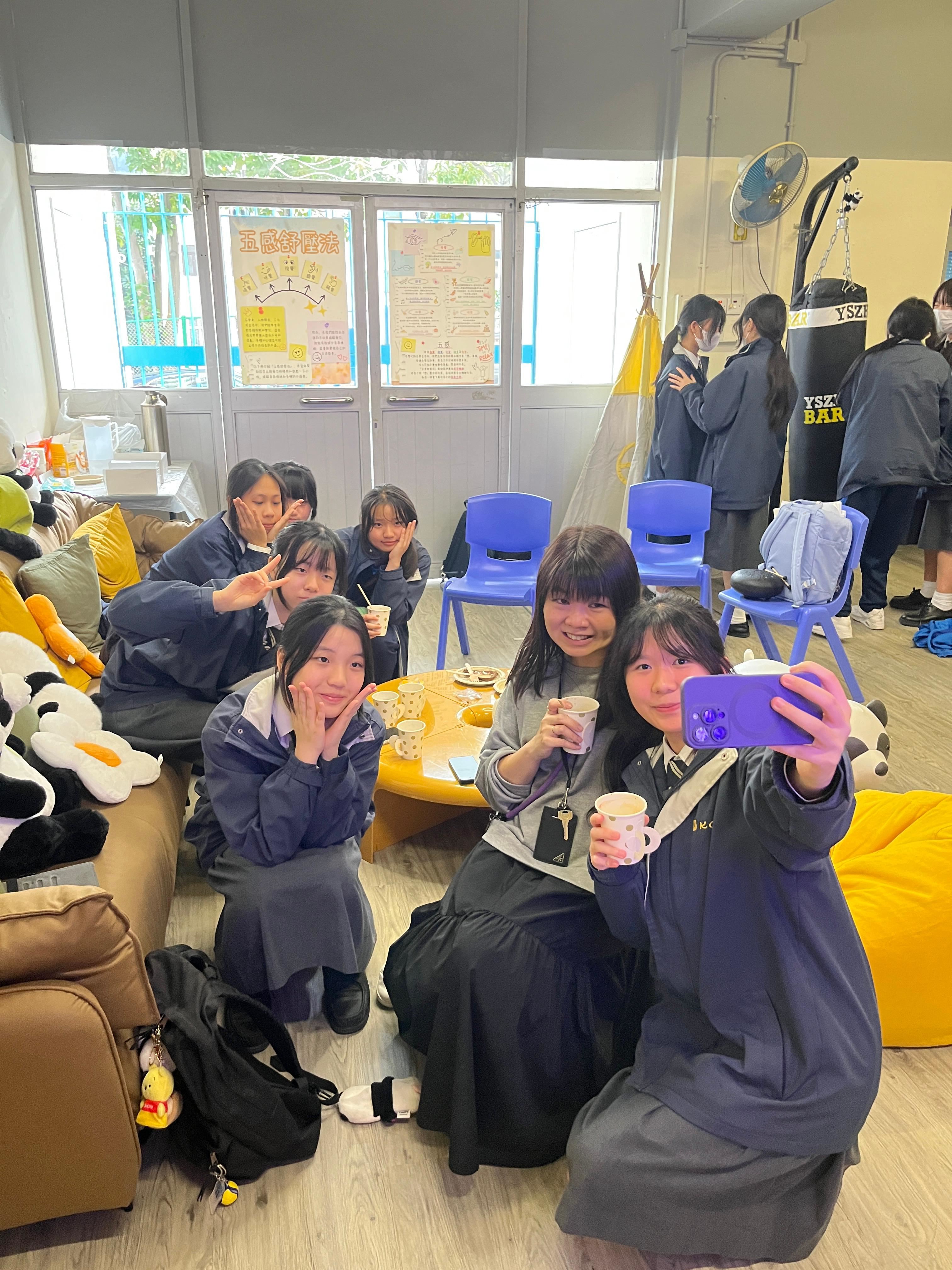考試在即,本校輔導委員會聯同駐校社工王姑娘和容姑娘在Chill Point舉辦了「Chill Relax」減壓工作坊,向學生介紹五感紓壓法,社工們準備了各式甜點、敷眼包、減壓公仔,又播放輕音樂,配合植物精油,幫助學生在出現壓力時學懂調節心情,主動創造舒壓環境,緩解緊張和不安的情緒,提升身心健康的素質。