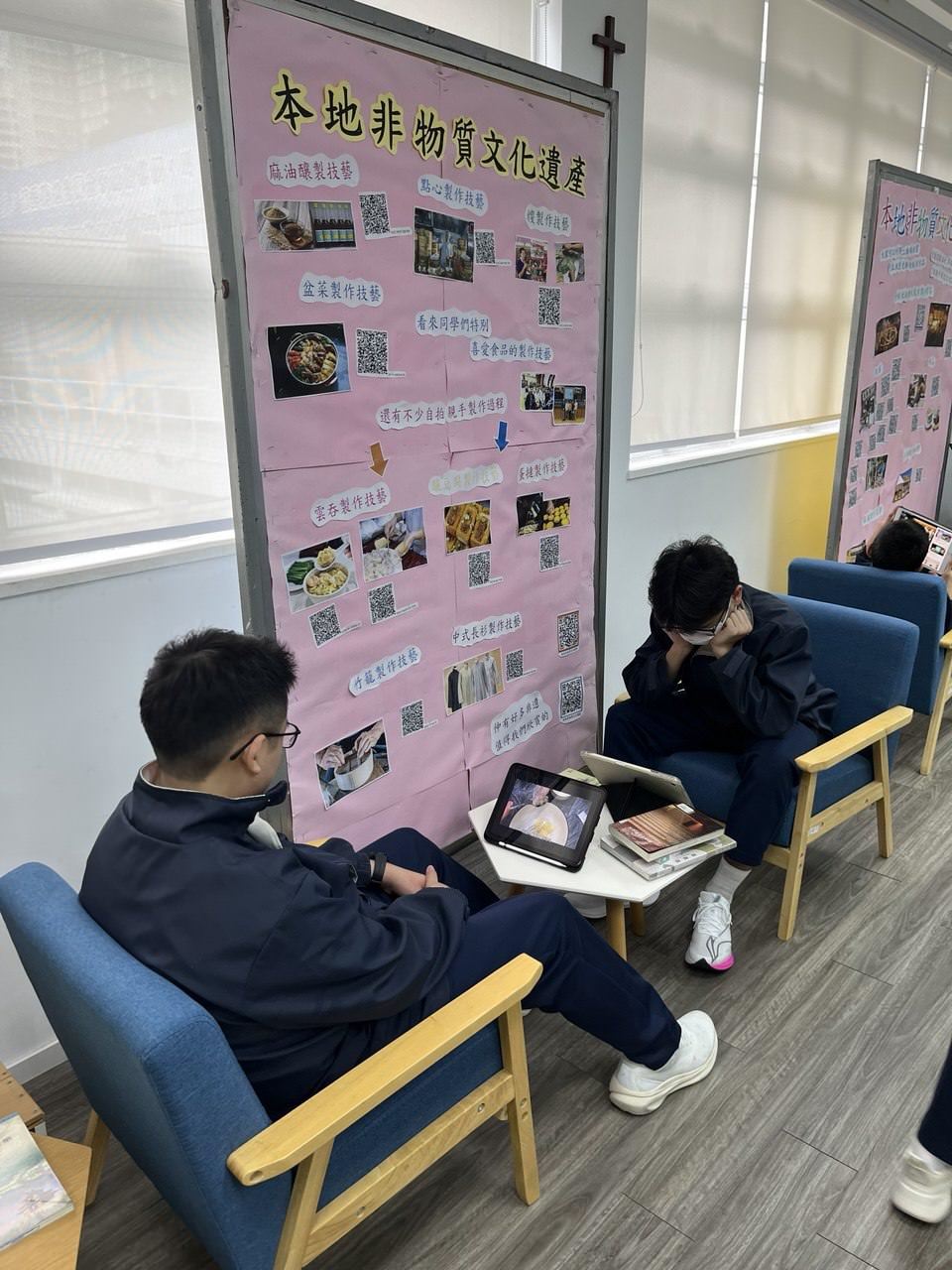 17/3-26/3/2025 為提升學生對本地非物質文化遺產的認識,加深他們對文化承傳重要性的了解,歷史科與金禧學習資源中心及中文科合作進行「非物質文化遺產展覽及書展」,展出中五級歷史組學生的個人短片作品分享及香港歷史的書籍,學生反應良好。