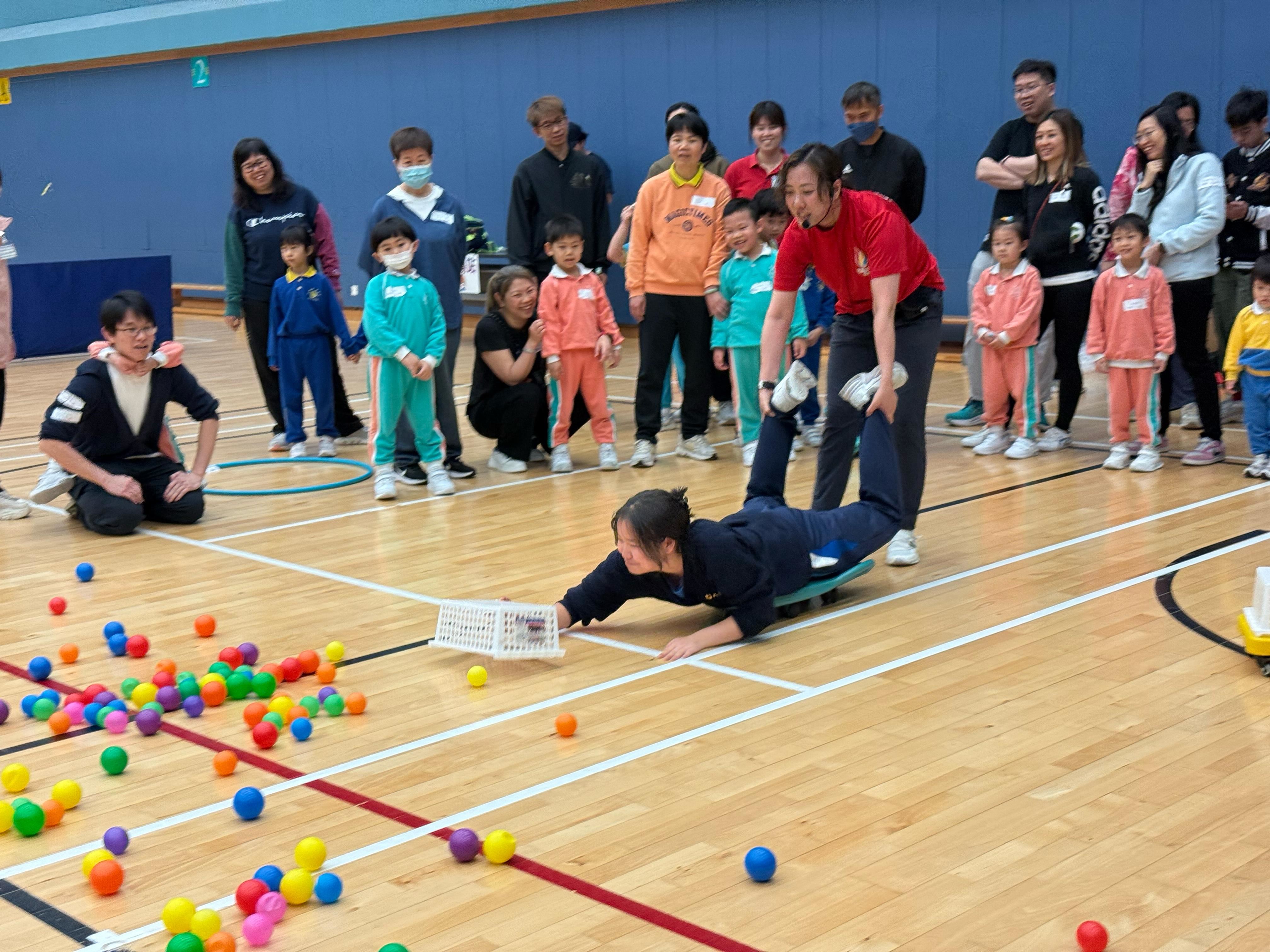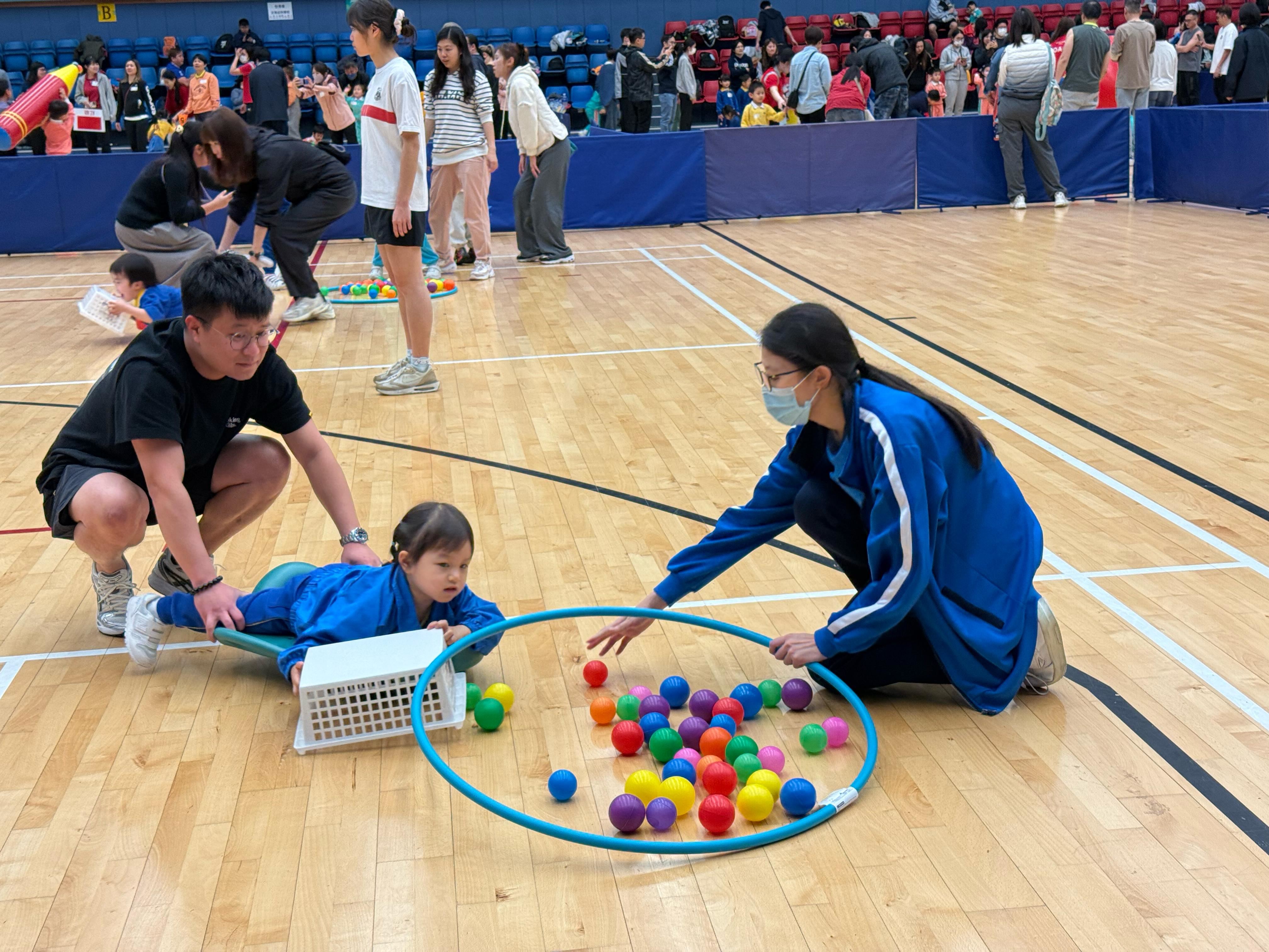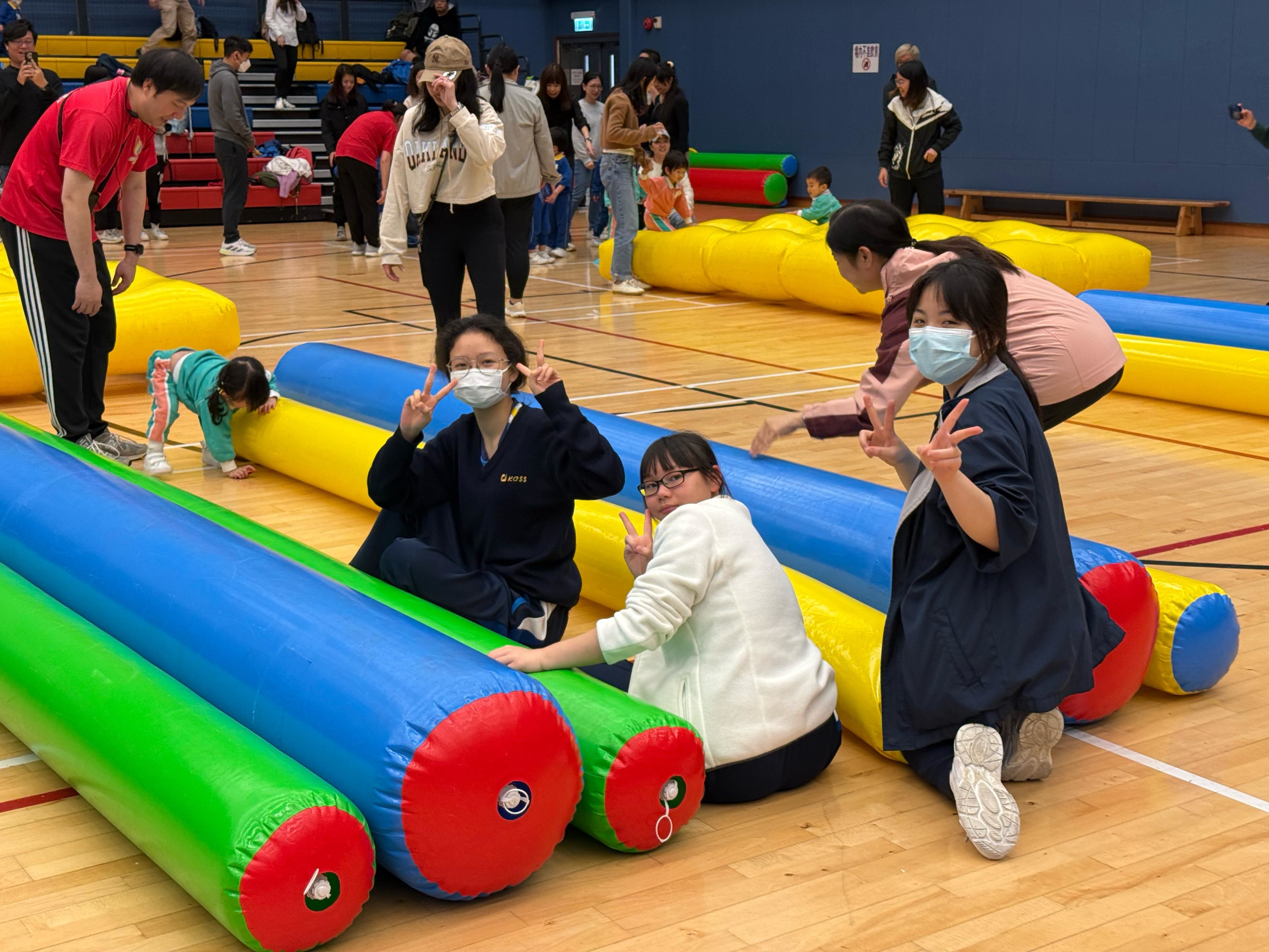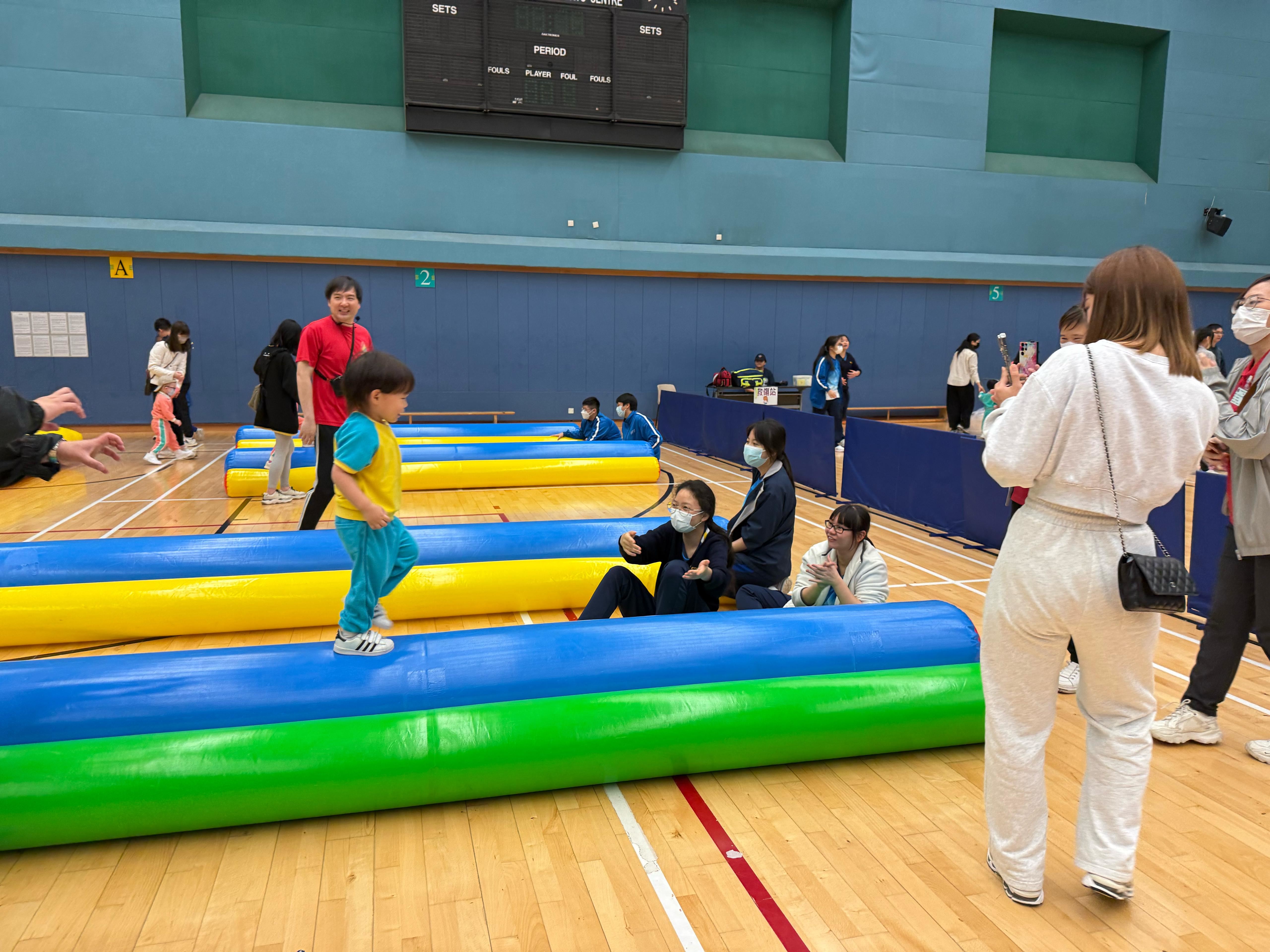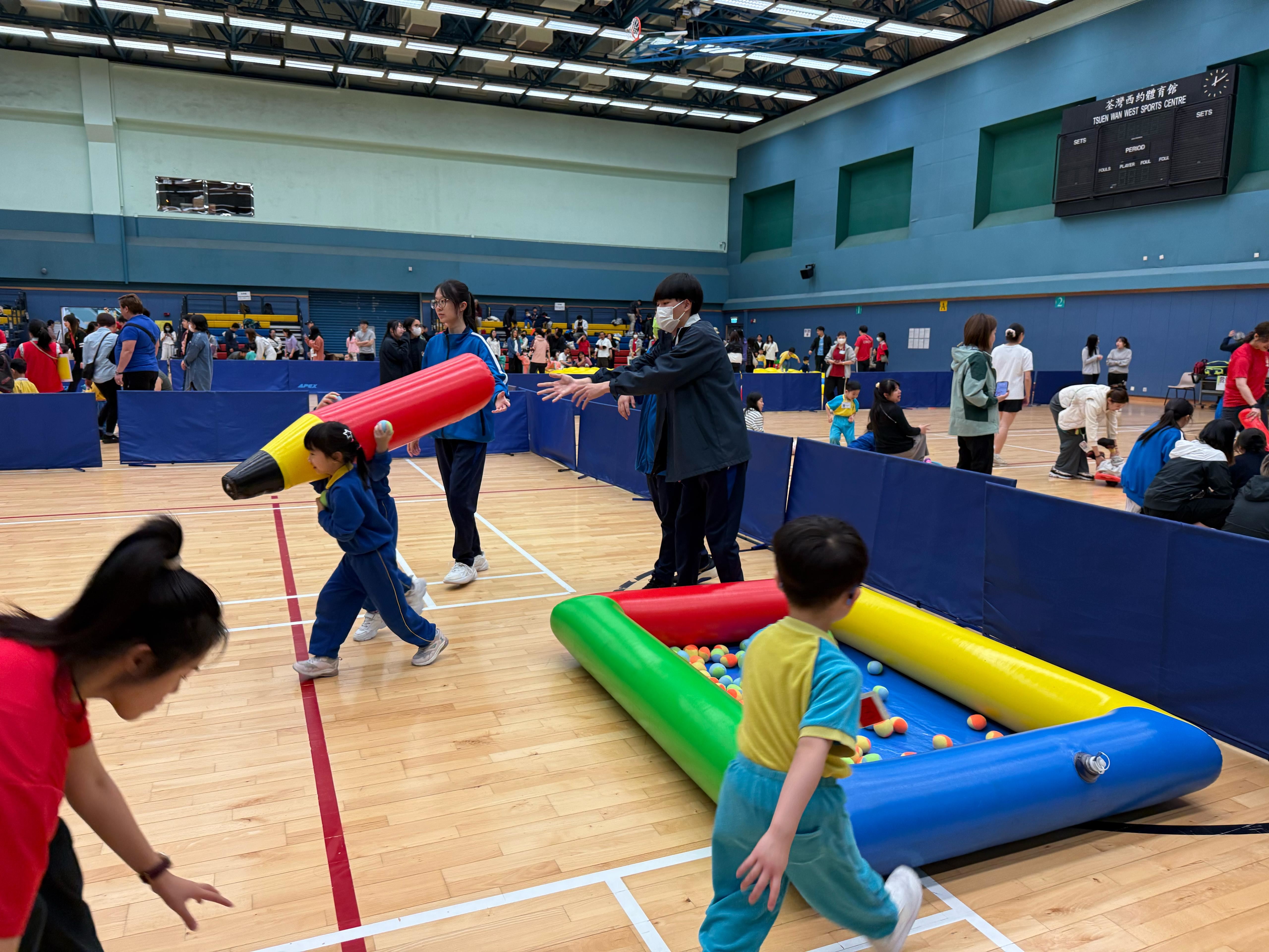 15位「4C青年義工領袖計劃」的團員到荃灣西約體育場協助多所幼稚園進行體適能親子遊戲日,通過實踐社會服務增加學生有關運動的重要性,提升他們注重健康生活的意識。
