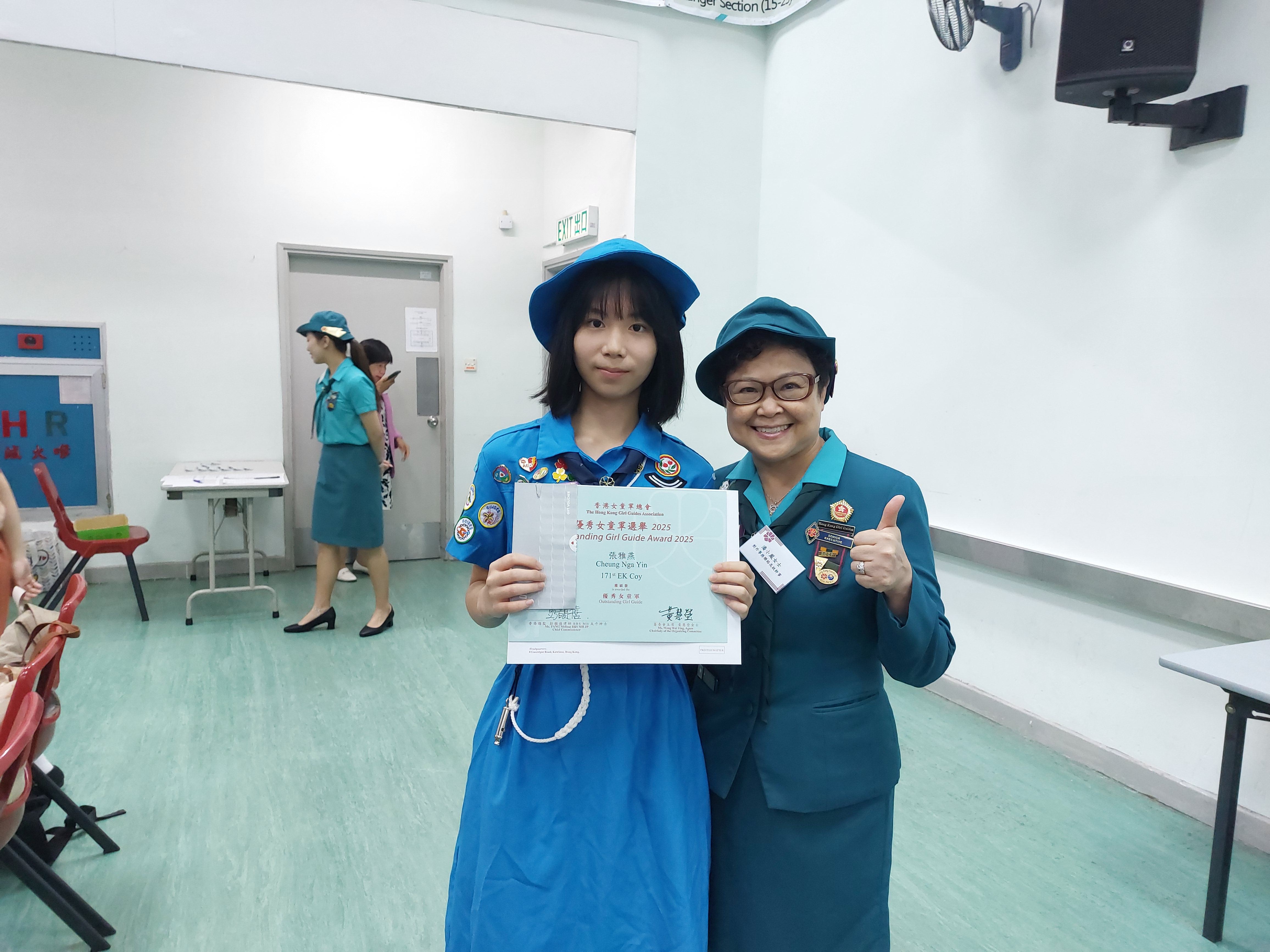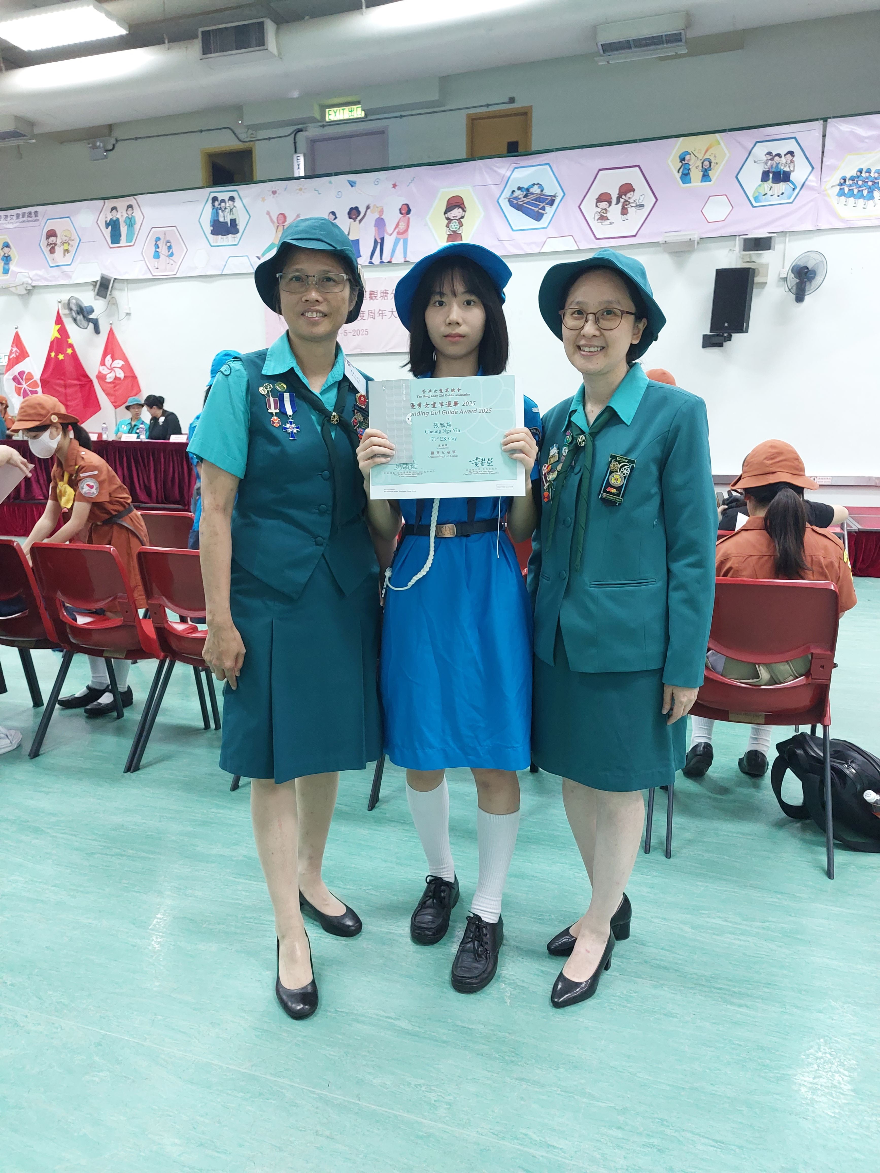 5D張雅燕積極參與女童軍活動,表現優異,獲本年度隊伍優秀女童軍獎,並於8/5 出席頒獎禮,獲得證書及書劵作獎勵。恭喜得獎同學。`