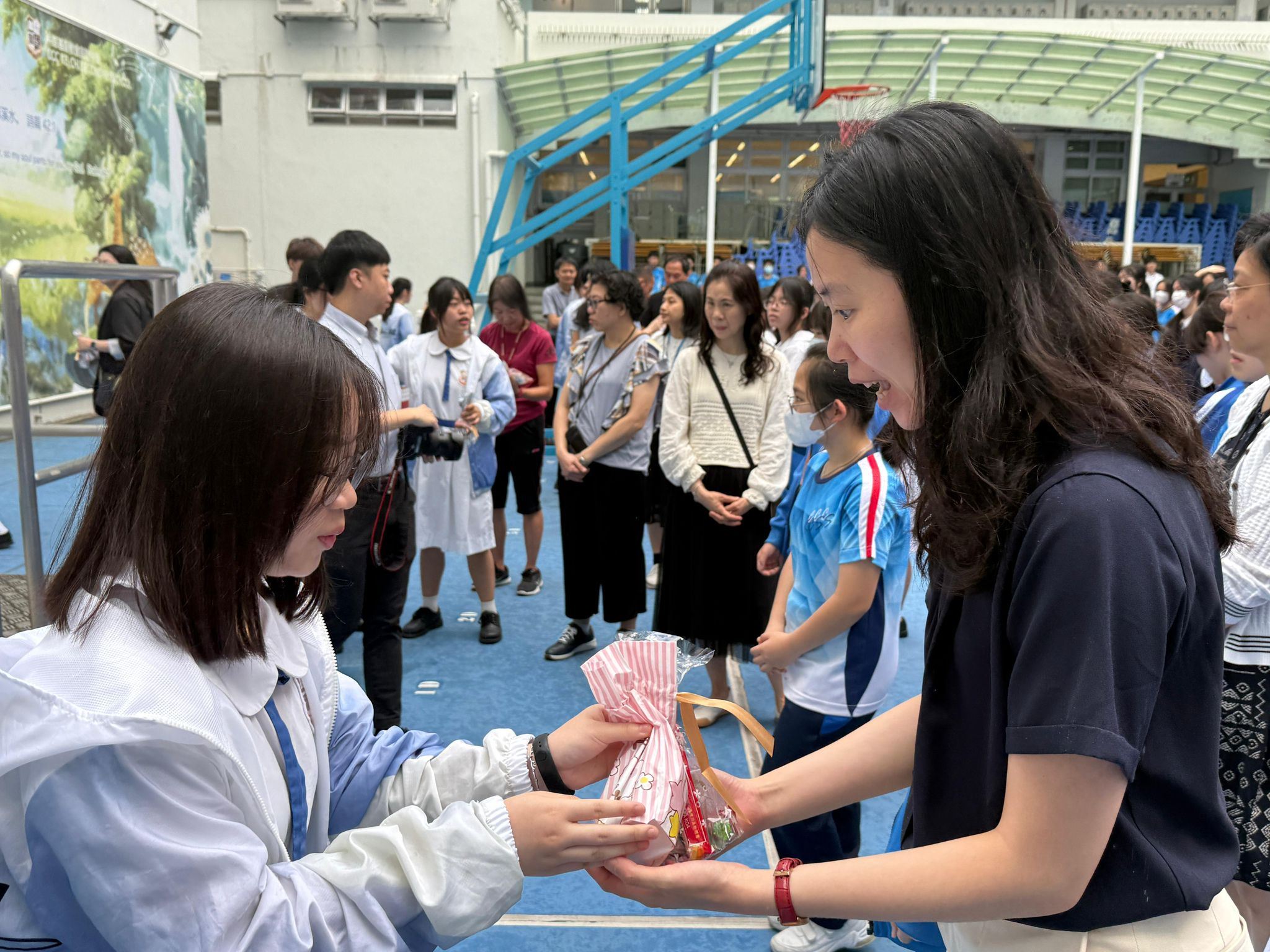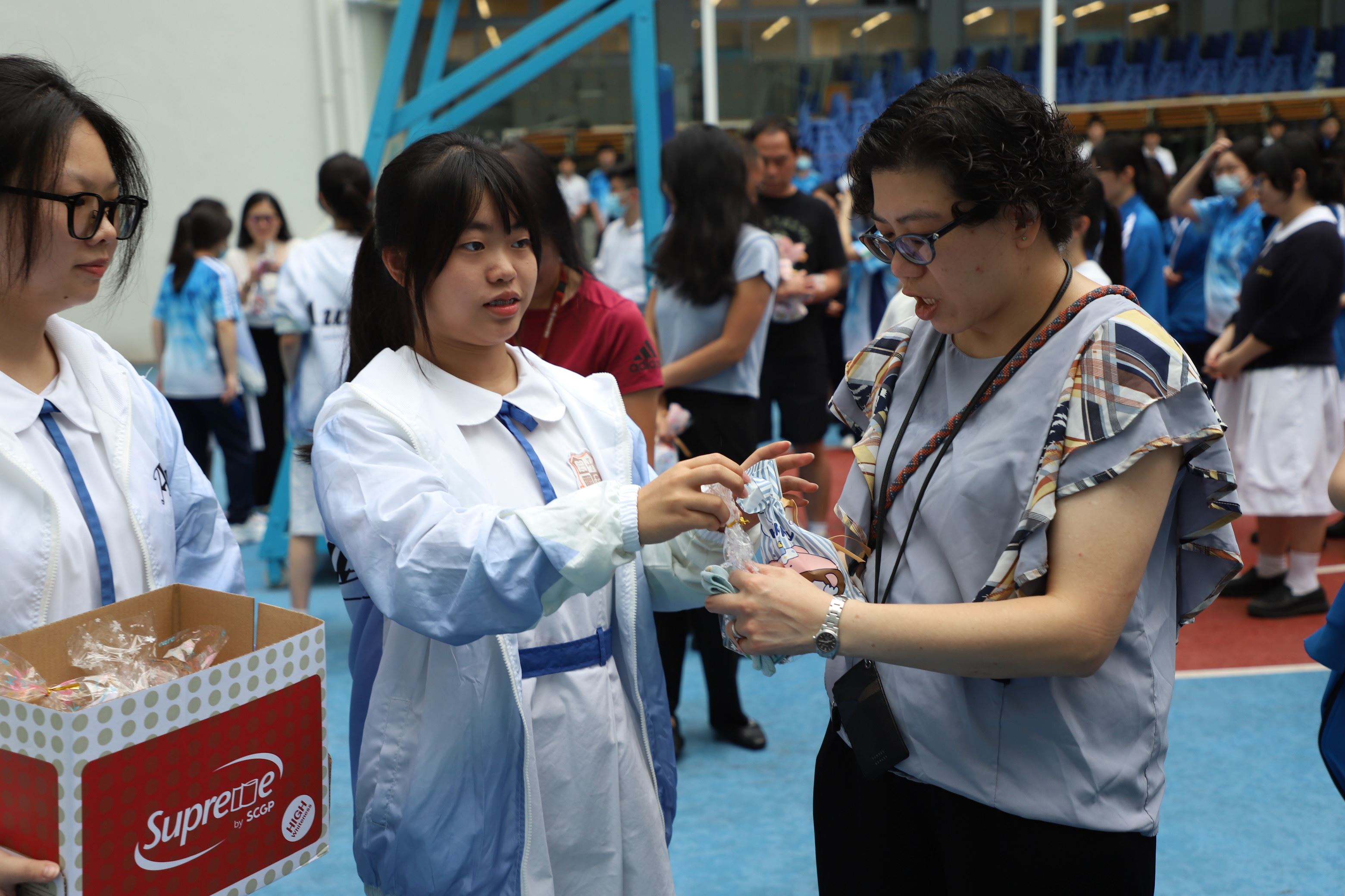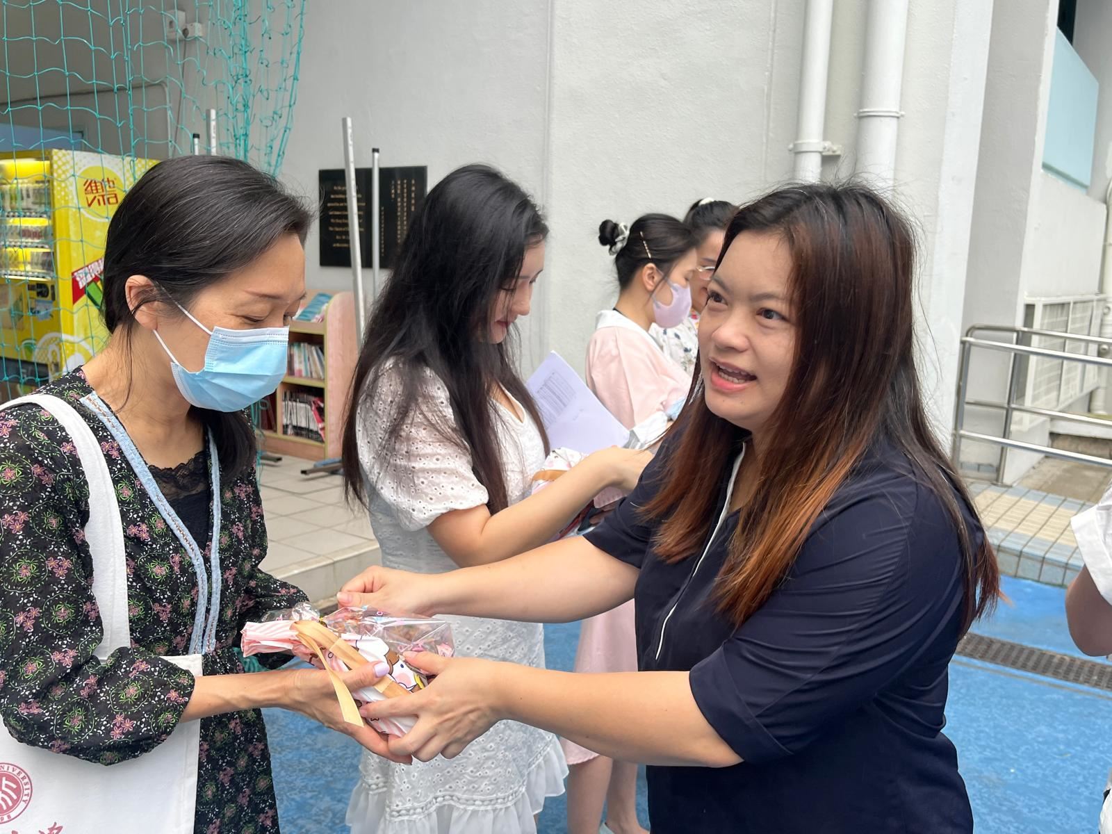 今年敬師日,學生會及家長教師會準備了小禮物送給老師,感謝老師的辛勞。敬師日早會上,學生送上歌曲給老師,家長教師會主席先在台上向李校長表達感謝,隨後家長代表及學生會成員把小禮物送予老師,表達敬意,氣氛溫馨。