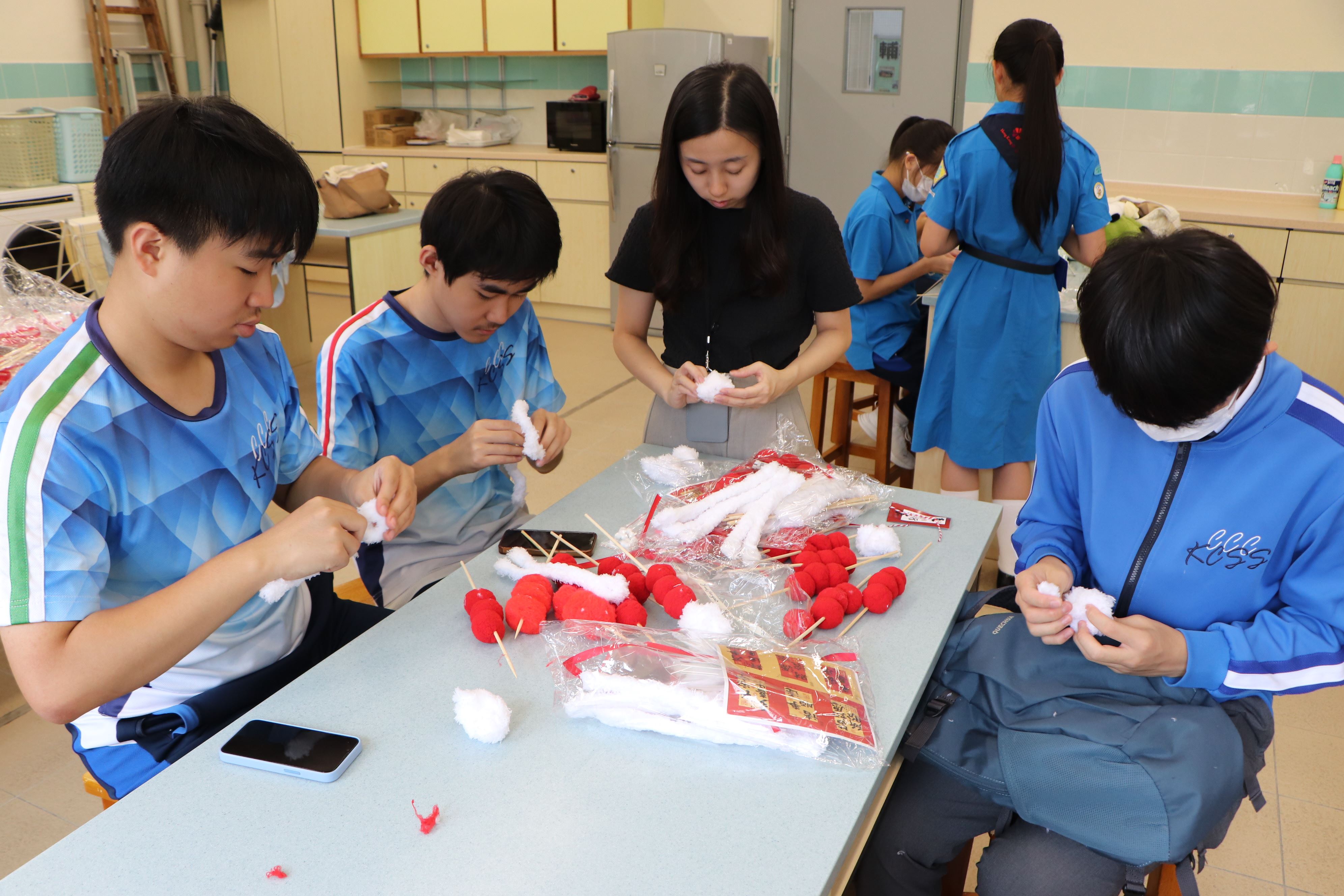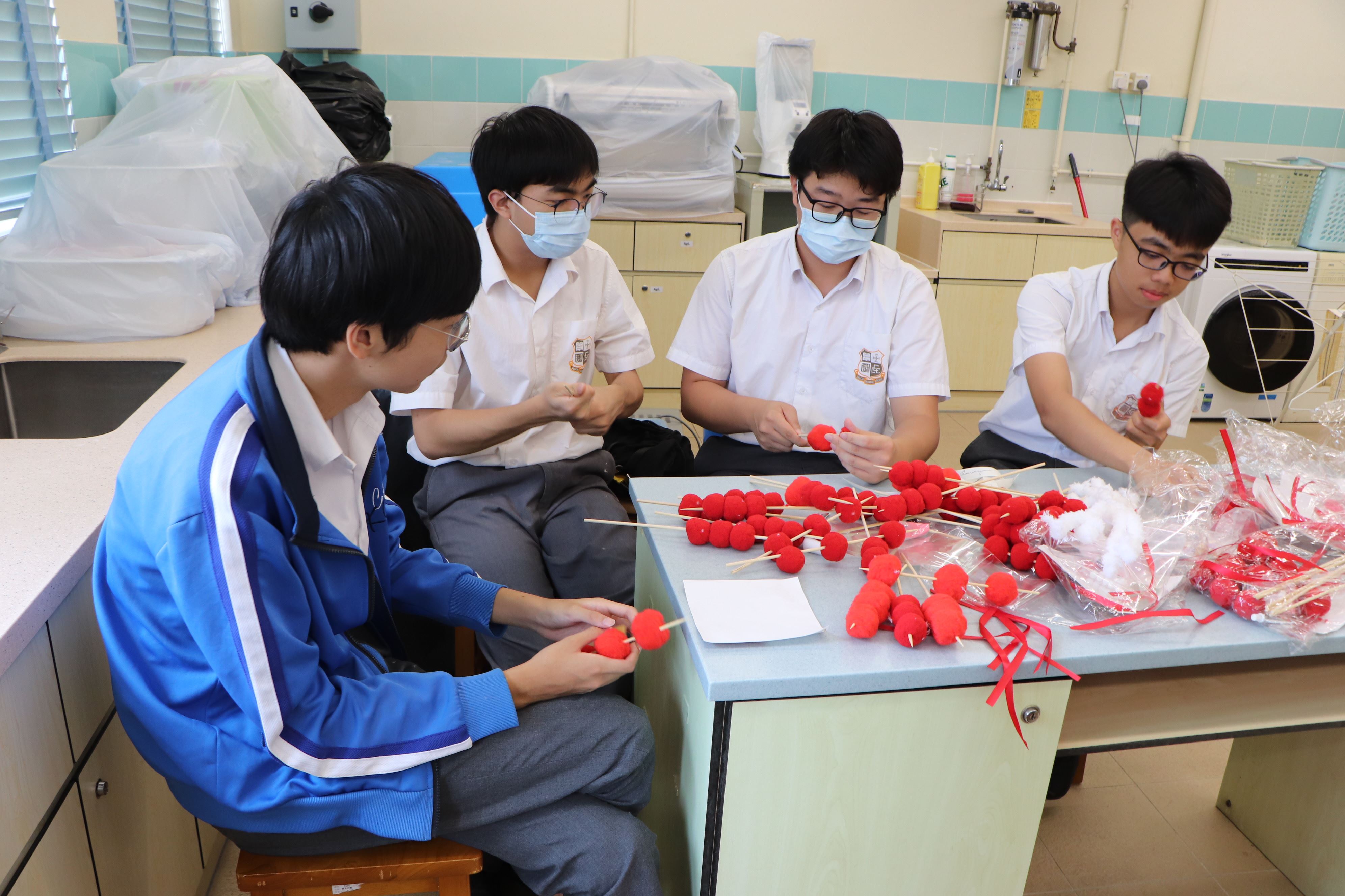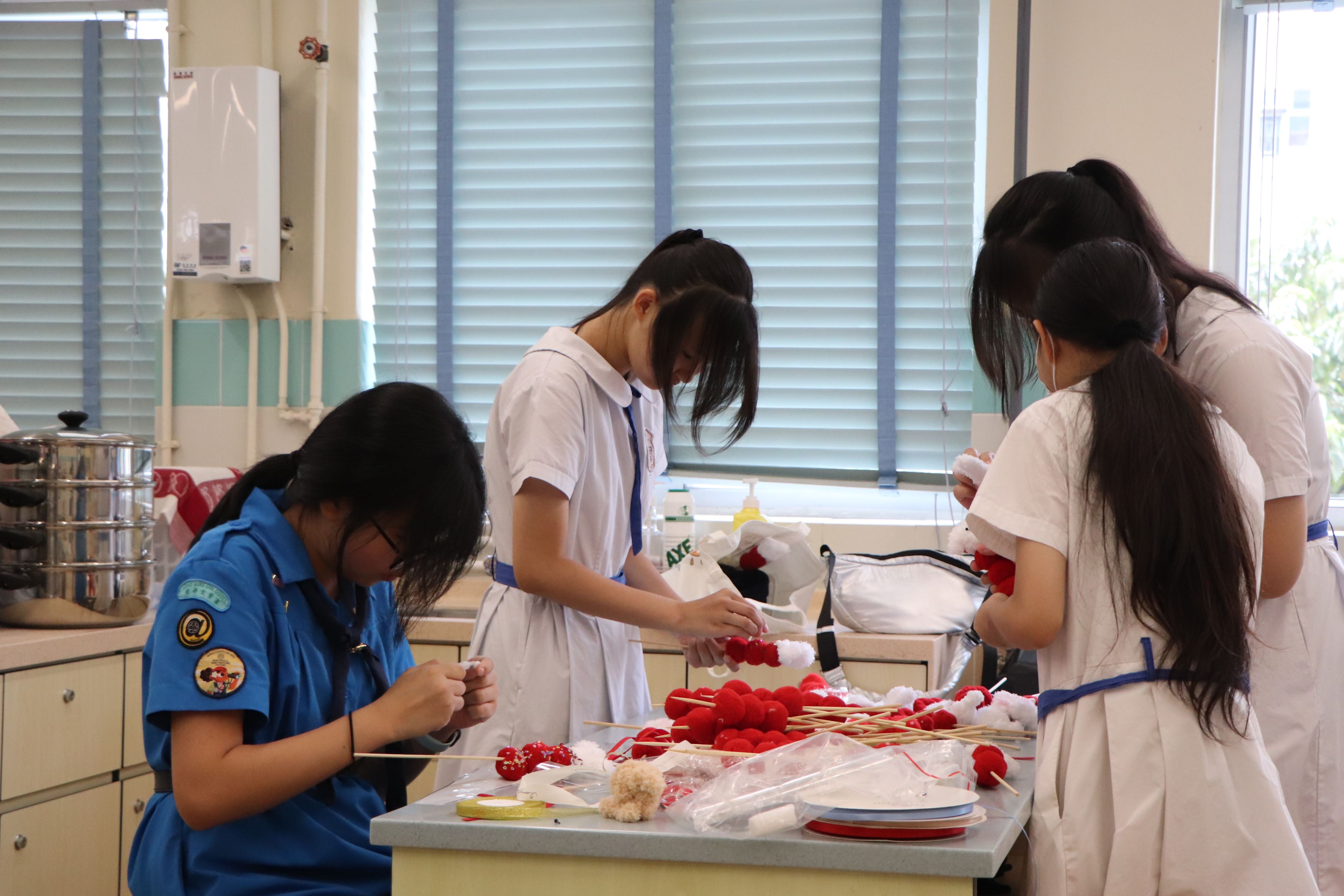 基督精兵聯同女童軍和家政科於26/6安排同學製作小手工, 當中同學學習制作冰糖葫蘆公仔,為老師送上祝福。同學亦學習了製作果撻,完成後帶回家與家人分享。