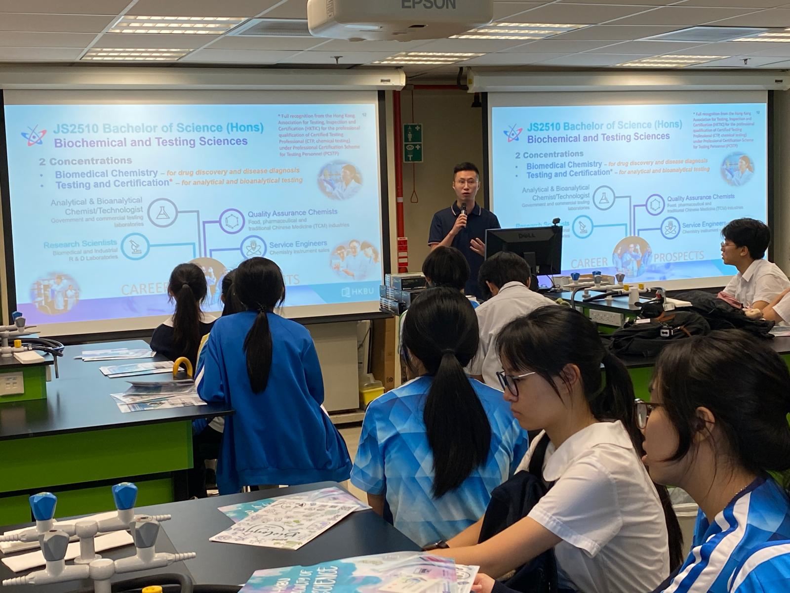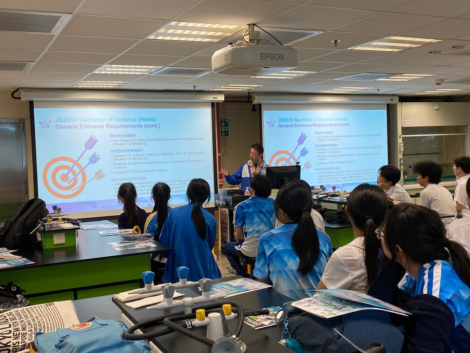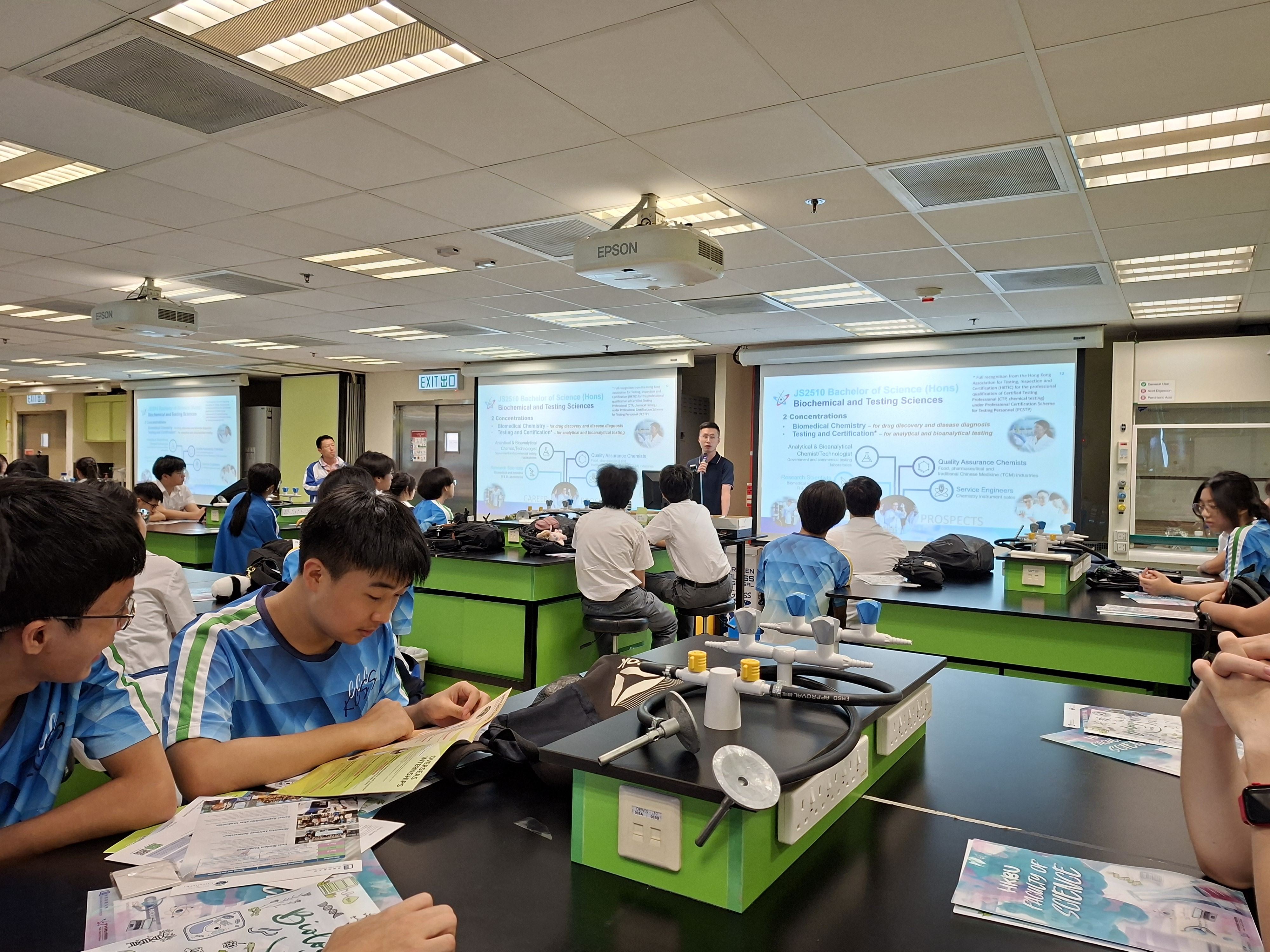 中四及中五級生物及化學科同學分別於2/7、14/7 參觀香港中文大學及香港浸會大學。同學於中大出席科普講座,了解香薰的制作的化學原理及功用,並參觀地球化學、分析化學相關的實驗室。在浸大,同學了解到浸會大學理學院的學習生活,亦認識到生物、化學實驗如何應用在商業或日常生活中。參與同學不但對升讀與生物化學相關科目有更深入了解,更加深科學知識和技能對日常生活的重要性有更深的體會,獲益良多。