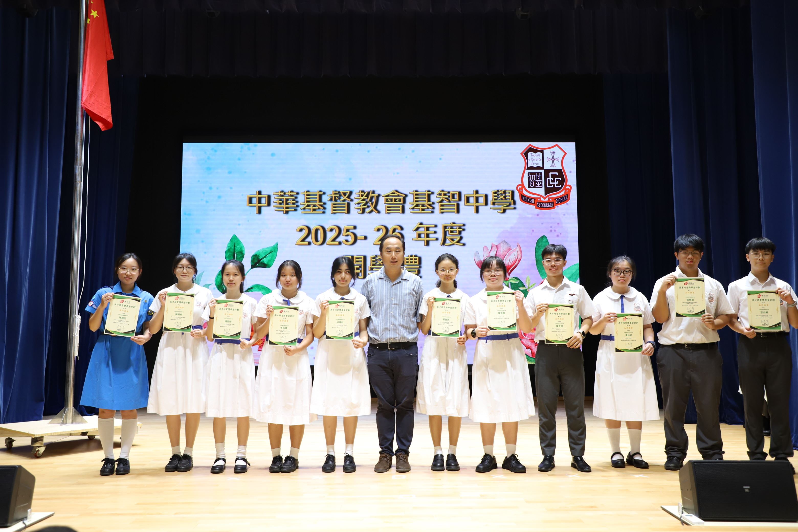 9月1日於學校禮堂舉行開學禮。當日頒發多個獎項,包括愛心飯團獎學金、黎詠詩老師體育獎學金、「林天意」傳統文化獎學金、「三地童聲盃」第三屆演講說故事比賽2025(中學普通話組) 亞軍、英才培育獎學金計劃、心繫家國:縱橫家國五千年STEAM/AI競技賽大金獎及黃志新中大入學獎學金。隨後,由校長分享主題「快樂」其實好簡單?,鼓勵學生凡事要抱有正面的想法,迎接新學年的挑戰。