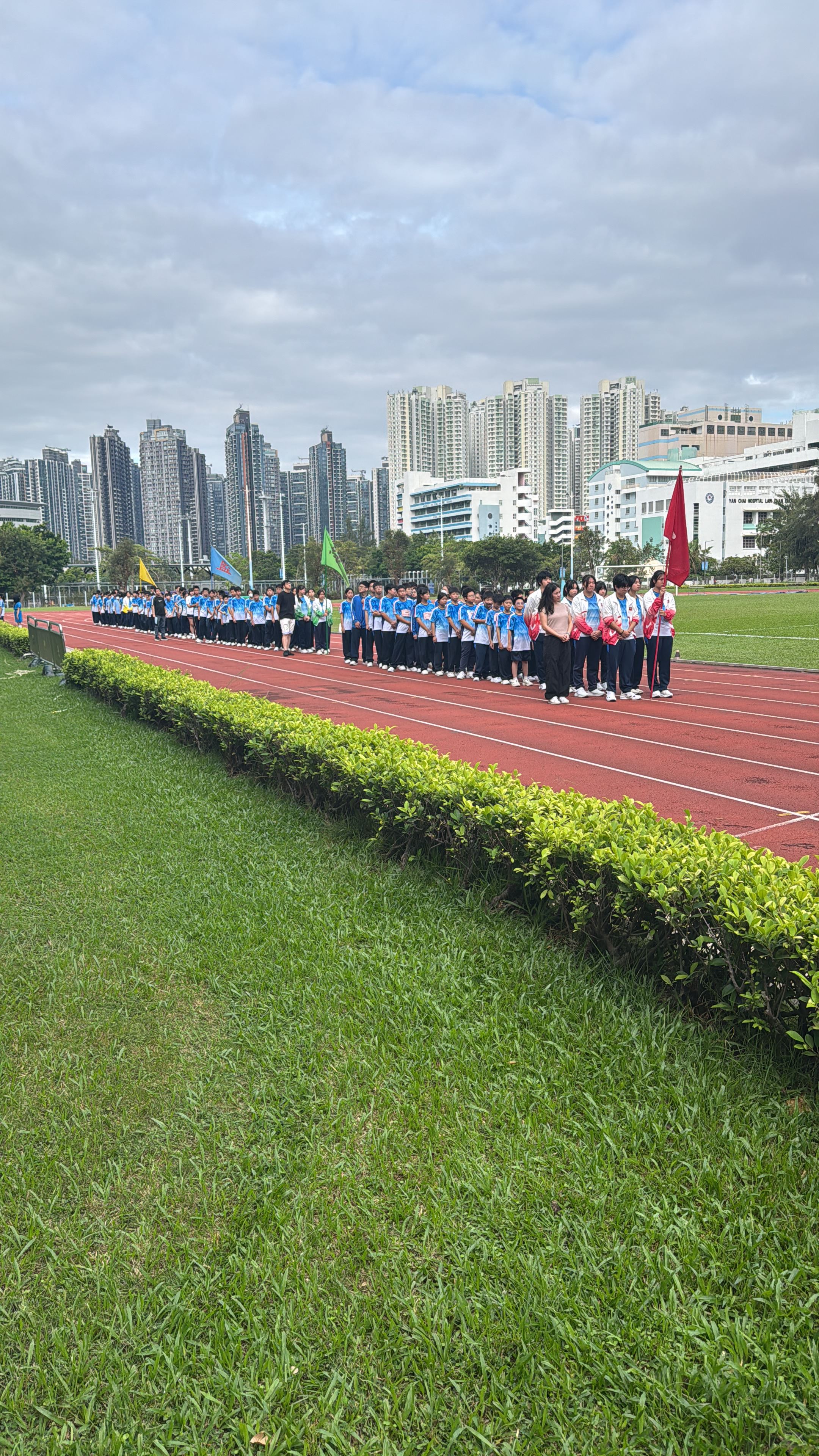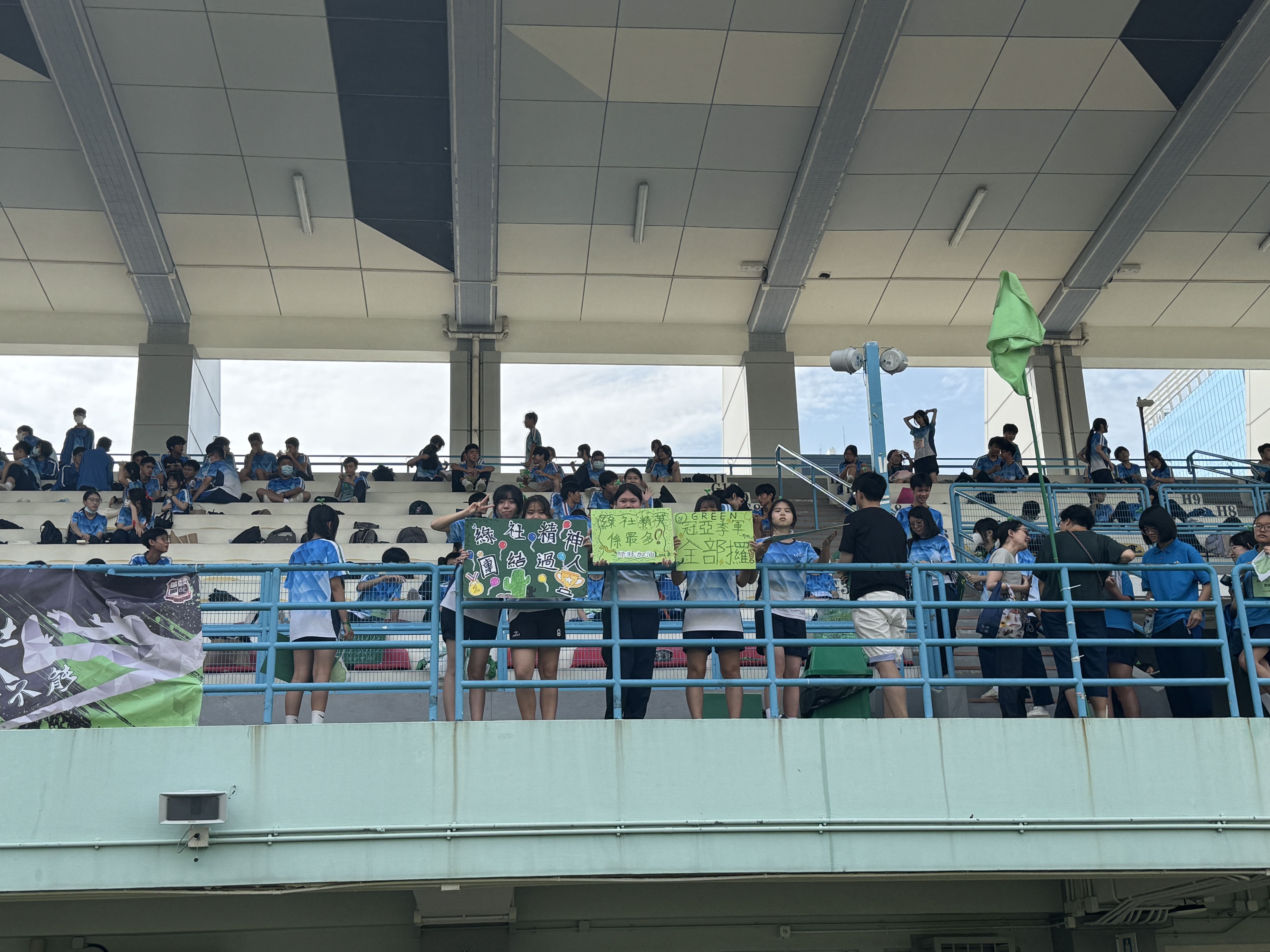 四社幹事帶隊中一啦啦隊成員於陸運會為各社運動健兒打氣。