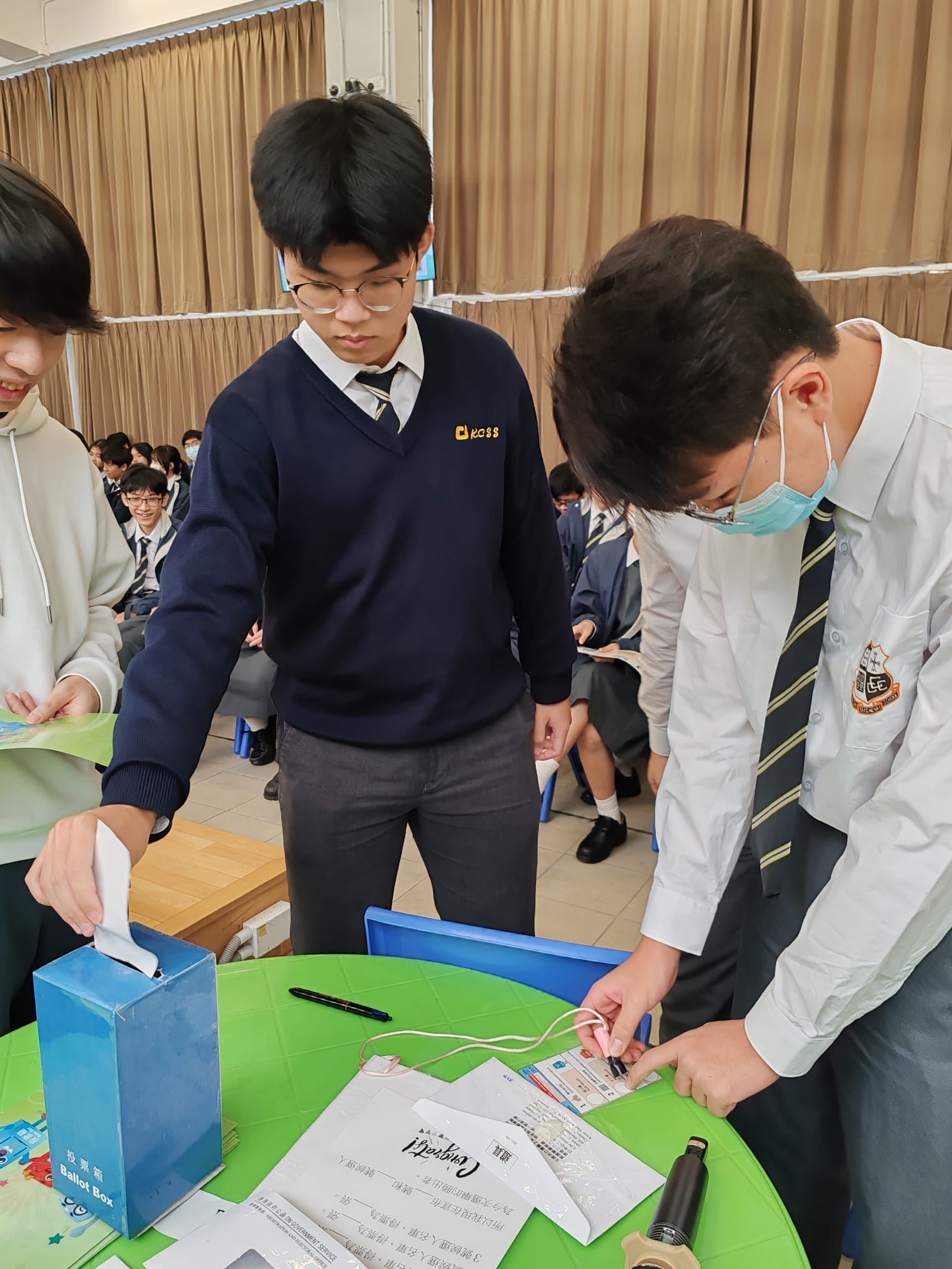 2025年12月5日,選舉事務處派員到校為本校中四學生進行講座,講座期間,三名學生代表即席參與一場模擬立法會選舉,體驗議題闡述與投票決策的過程。講座旨在透過專業講解及互動環節,讓學生了解選舉流程、投票機制及公民在社會中的角色與責任,從中培養理性思考與社會參與的能力。