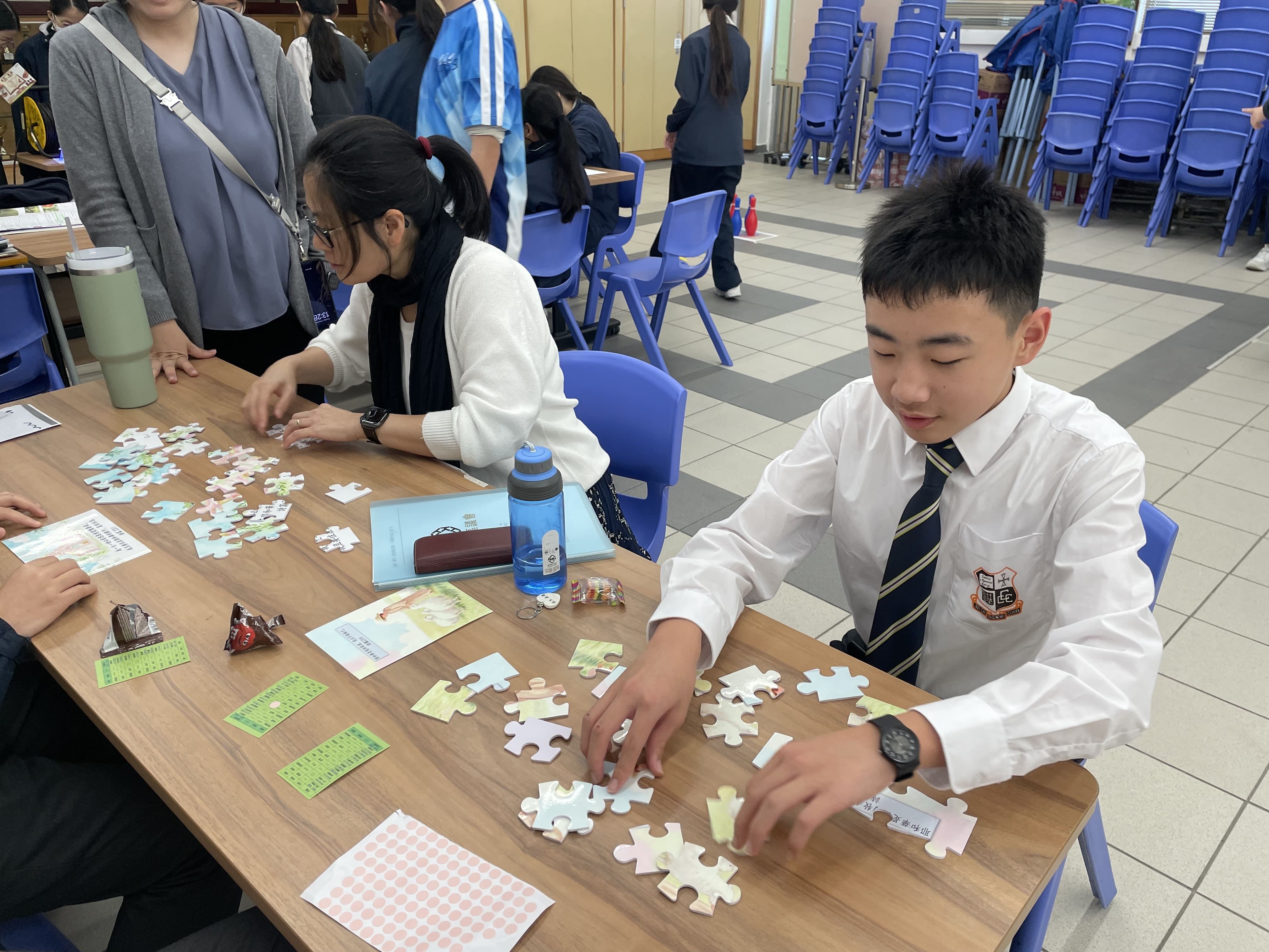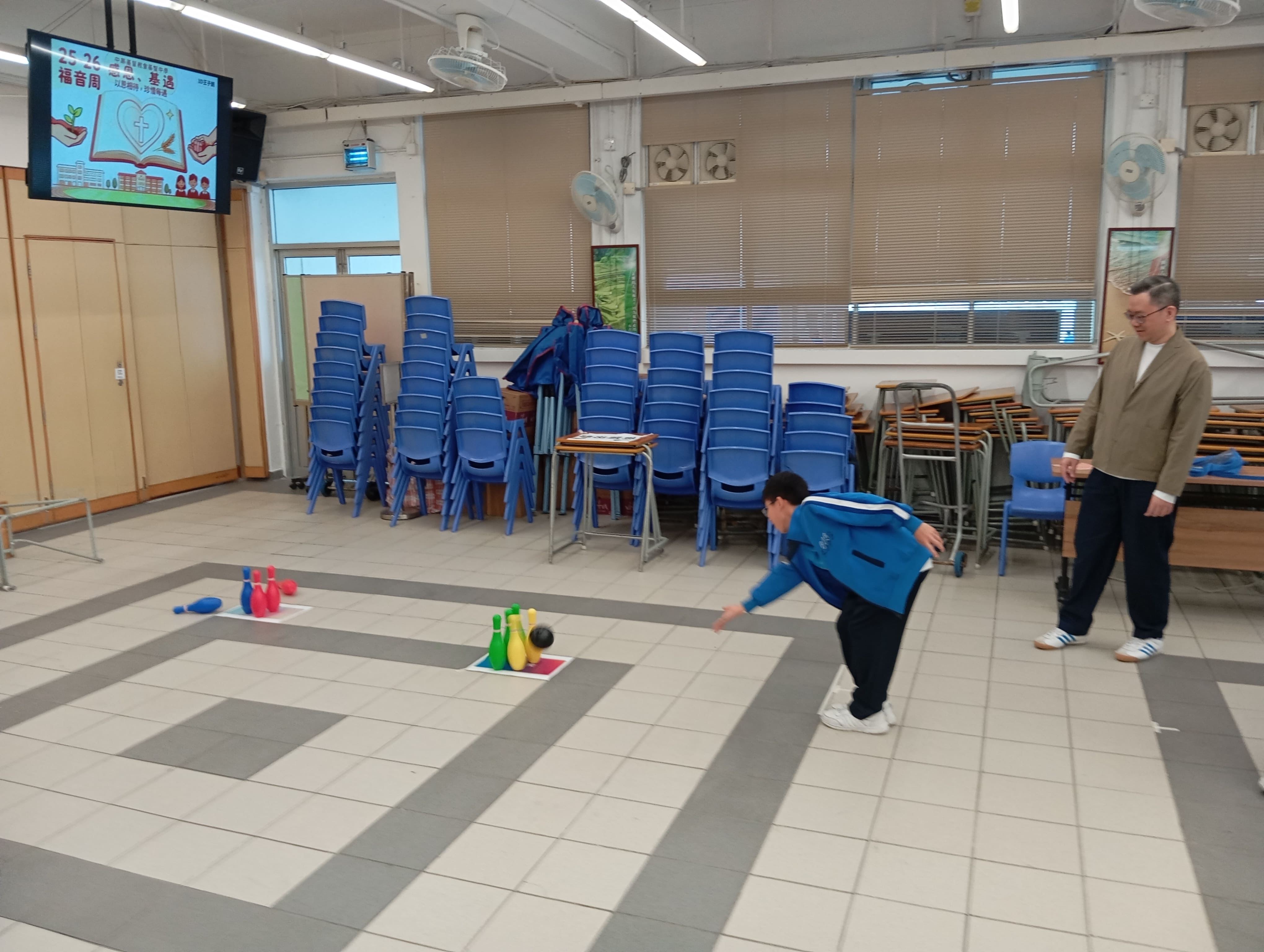 福音周的第二三天,在12月10日和12月11日,宗教委員會和英才計劃同學在學校副堂舉行了一系列「感你玩左未」的攤位遊戲。這些活動包括碌保齡球(碌出感恩),拼圖(拼出感恩)、做手工吊飾(畫出感恩)、掟彩虹(掟出感恩)、夾禮物(夾出感恩)、寫下感恩的事(感恩樹)等。同學們非常積極參與,通過不同的攤位遊戲學習感恩。