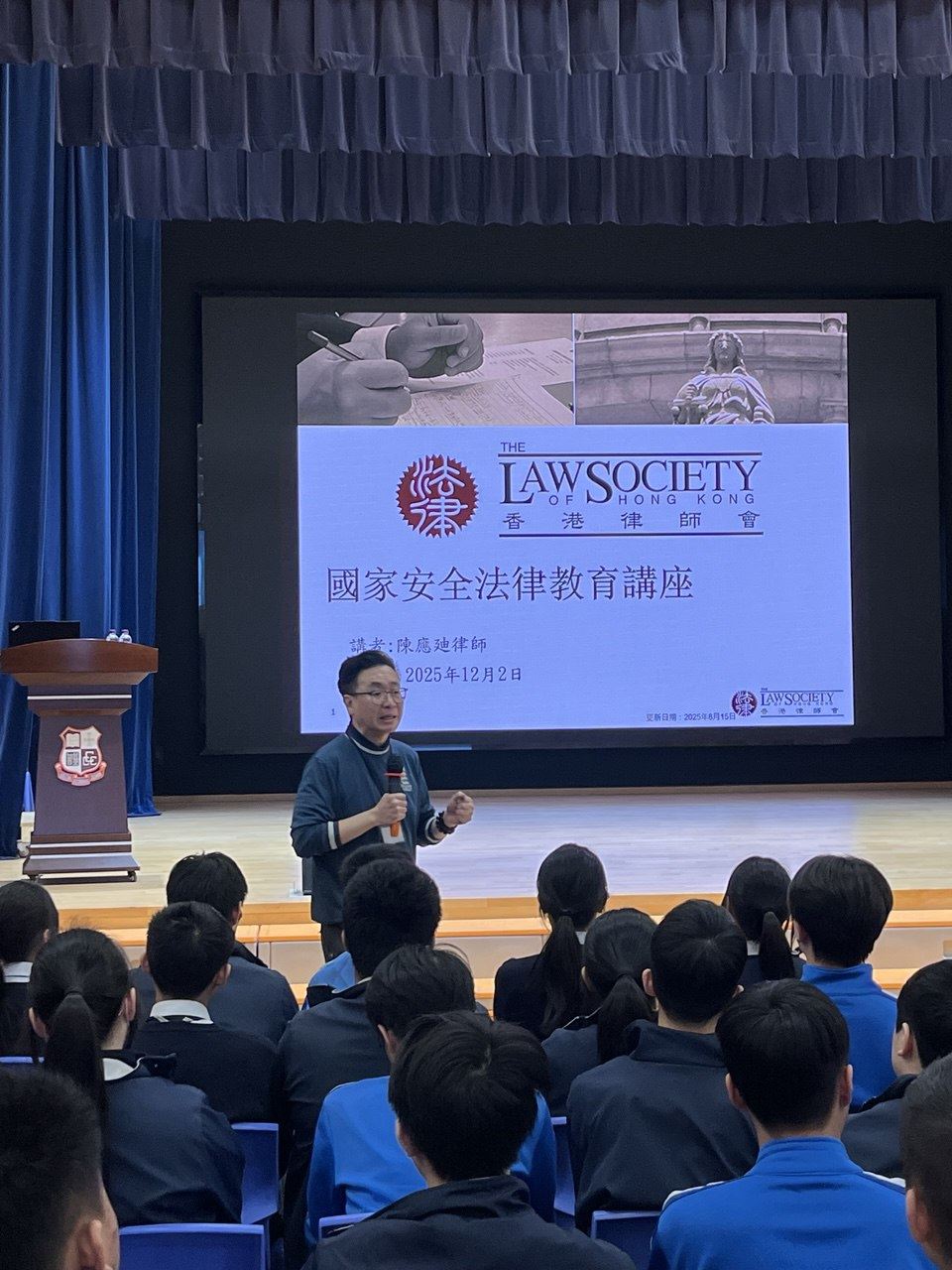 2/12/2025 為提升學生對法治精神及守法意識的了解,訓育委員會安排中三級學生參加由香港律師會舉辦的「法治新一代」學校講座計劃。是次講座讓學生了解憲法與基本法,並提升學生對國家安全教育的了解。