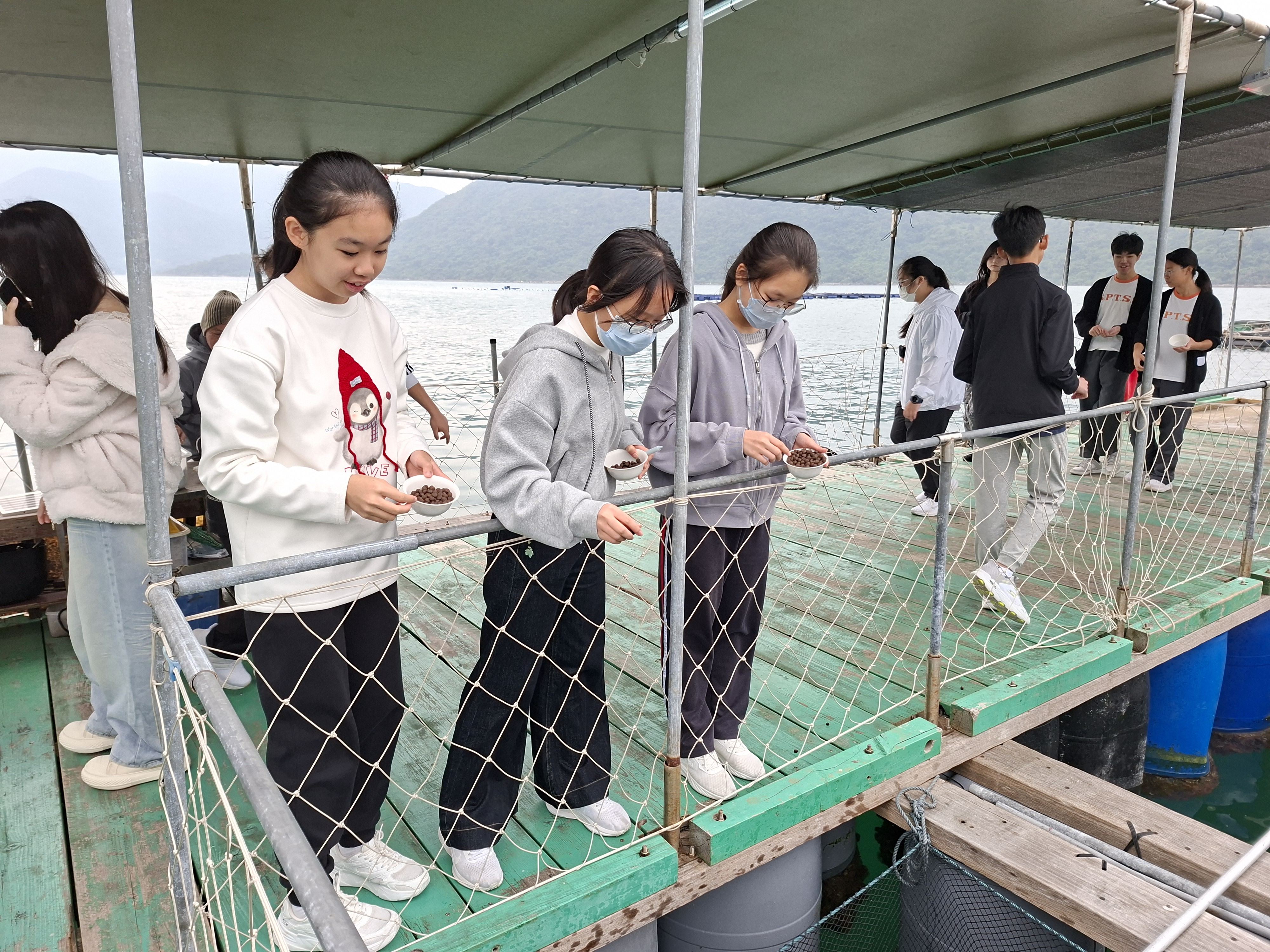 在12月13日,24位環保大使參加海洋生態工作坊,深入學習雙殼類動物對海洋生態系統的重要貢獻及微塑膠對環境的影響。活動中,他們不僅聽取專家講解,還實地參觀了漁排,了解不同海產及珍珠的養殖流程。同學們反應熱烈,表示活動增廣見聞,對保護海洋環境的意識有了更深刻的理解,獲益良多。這次活動不僅提升了他們對環保的認識,也獲得寶貴的實踐機會。