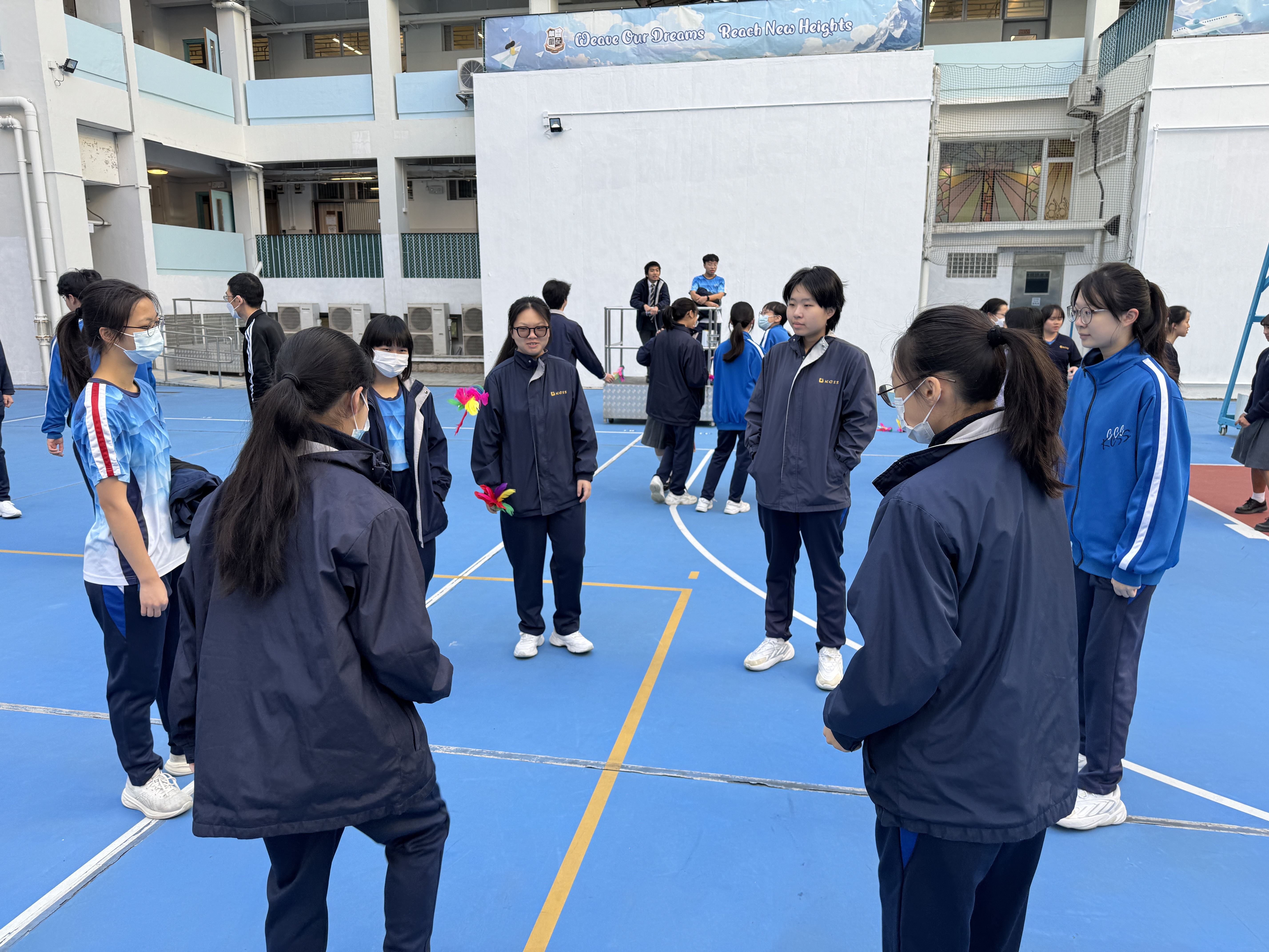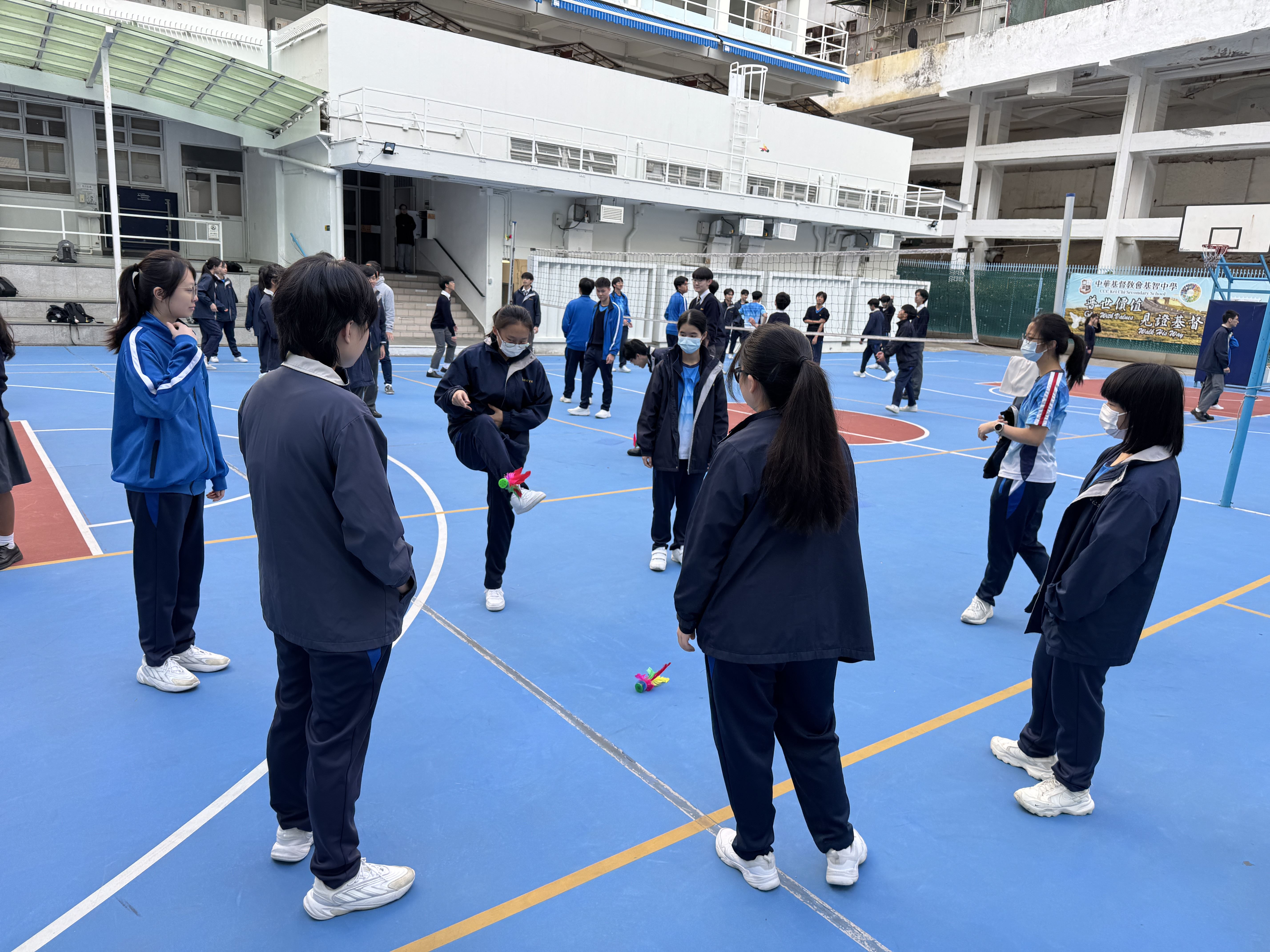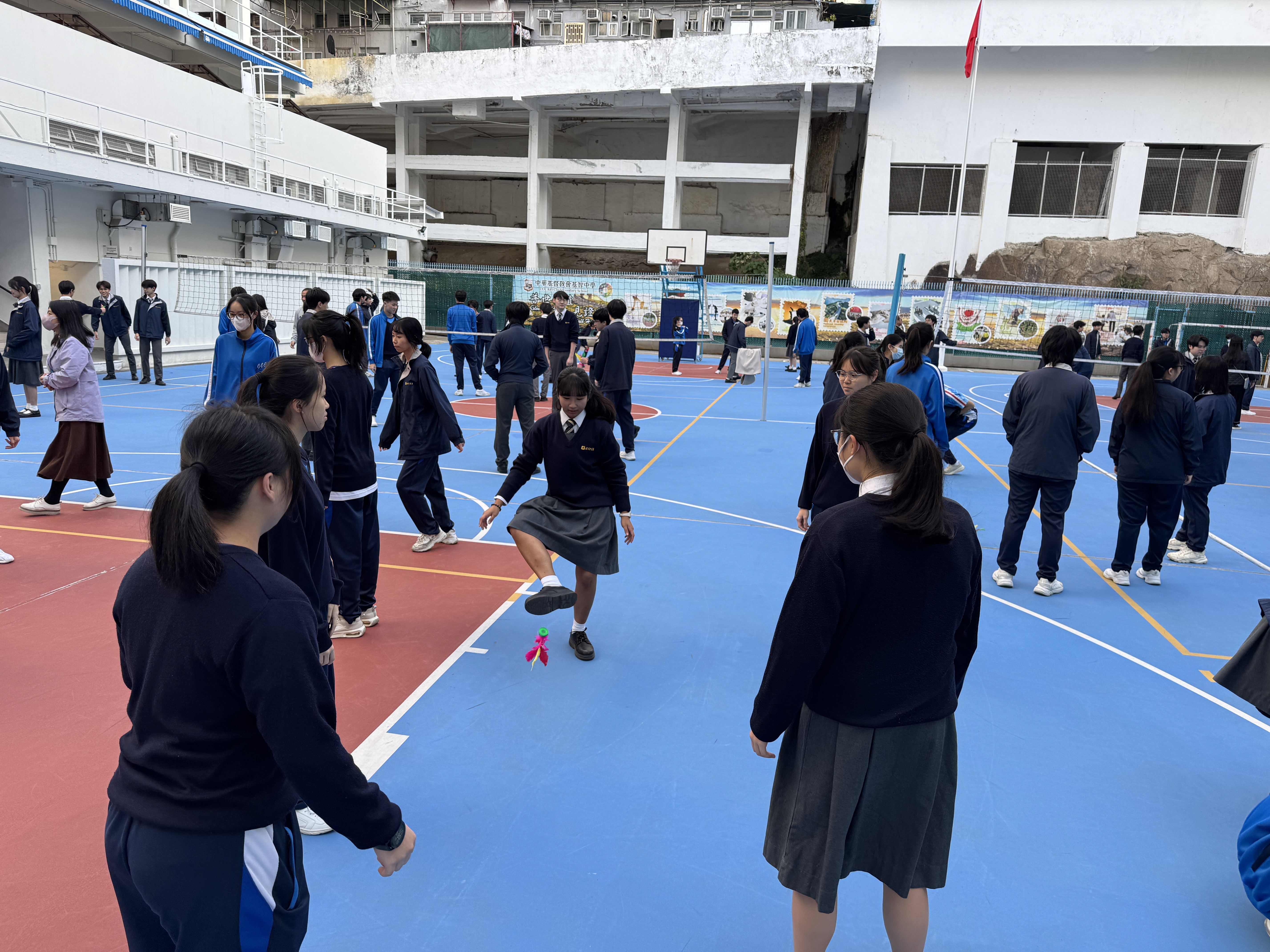 由中六級學生自主帶領,於當日早會舉辦了早會運動活動,學生利用早會時間於操場進行跨班分別踢毽。