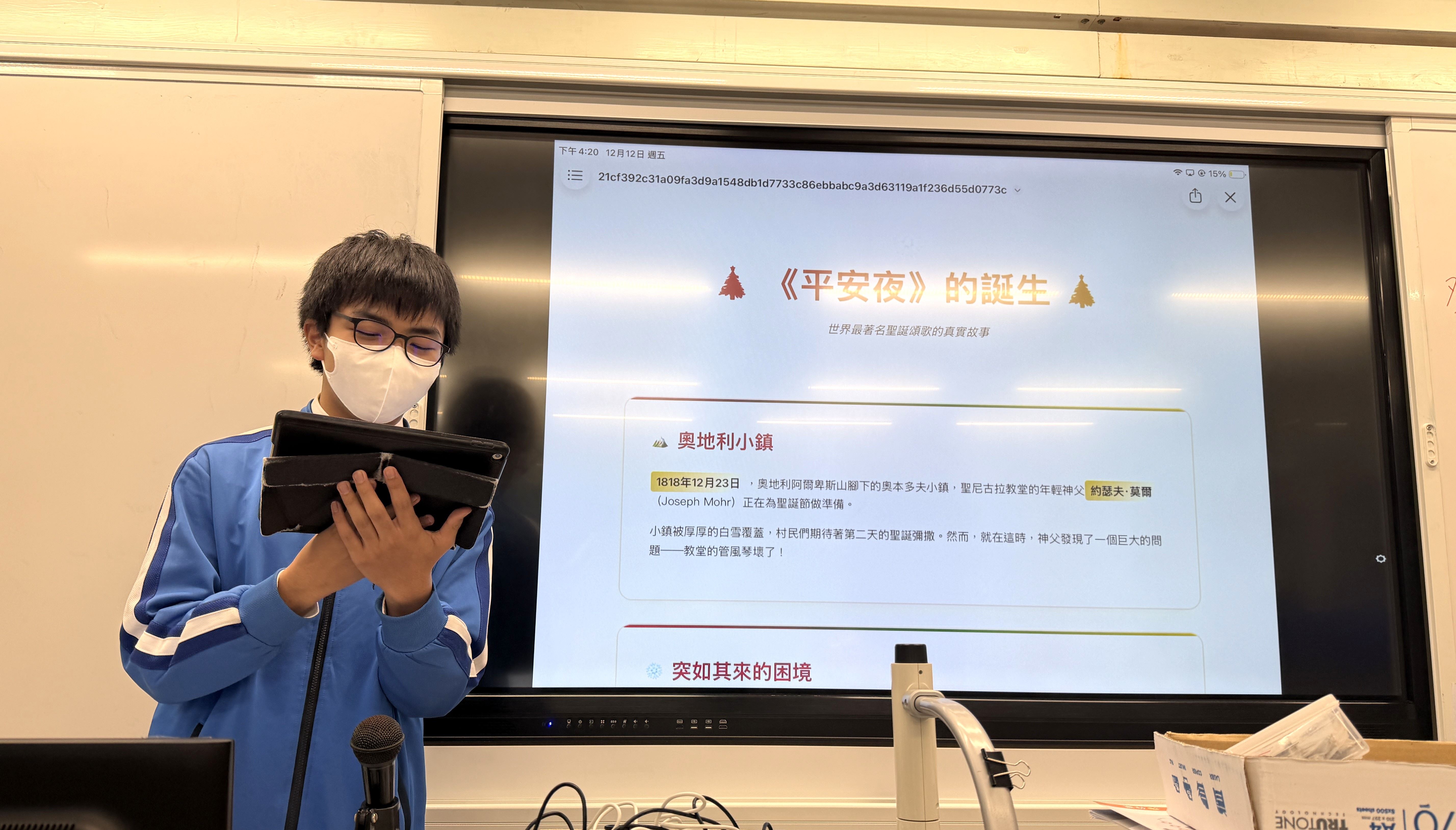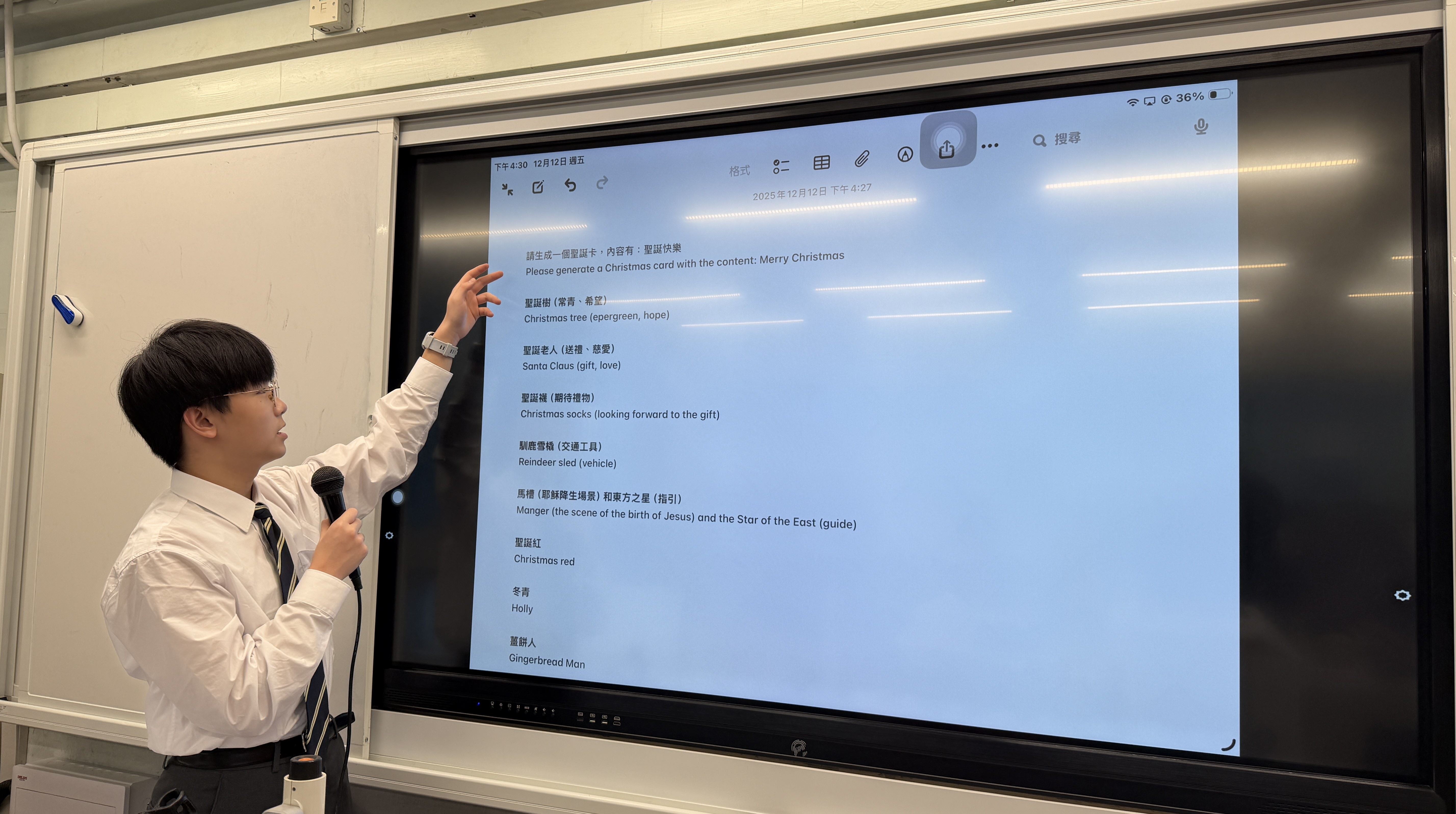 2025年12月12日及18日,本校普通話科舉辦了「AI聖誕卡製作工作坊」。活動中,普通話大使不僅以普通話分享聖誕節的故事,更帶領同學運用AI工具創作獨一無二的聖誕賀卡。同學們將親手製作的賀卡贈予全校老師,藉科技創意傳遞真摯心意,以表達對師長的感恩與節日祝福。