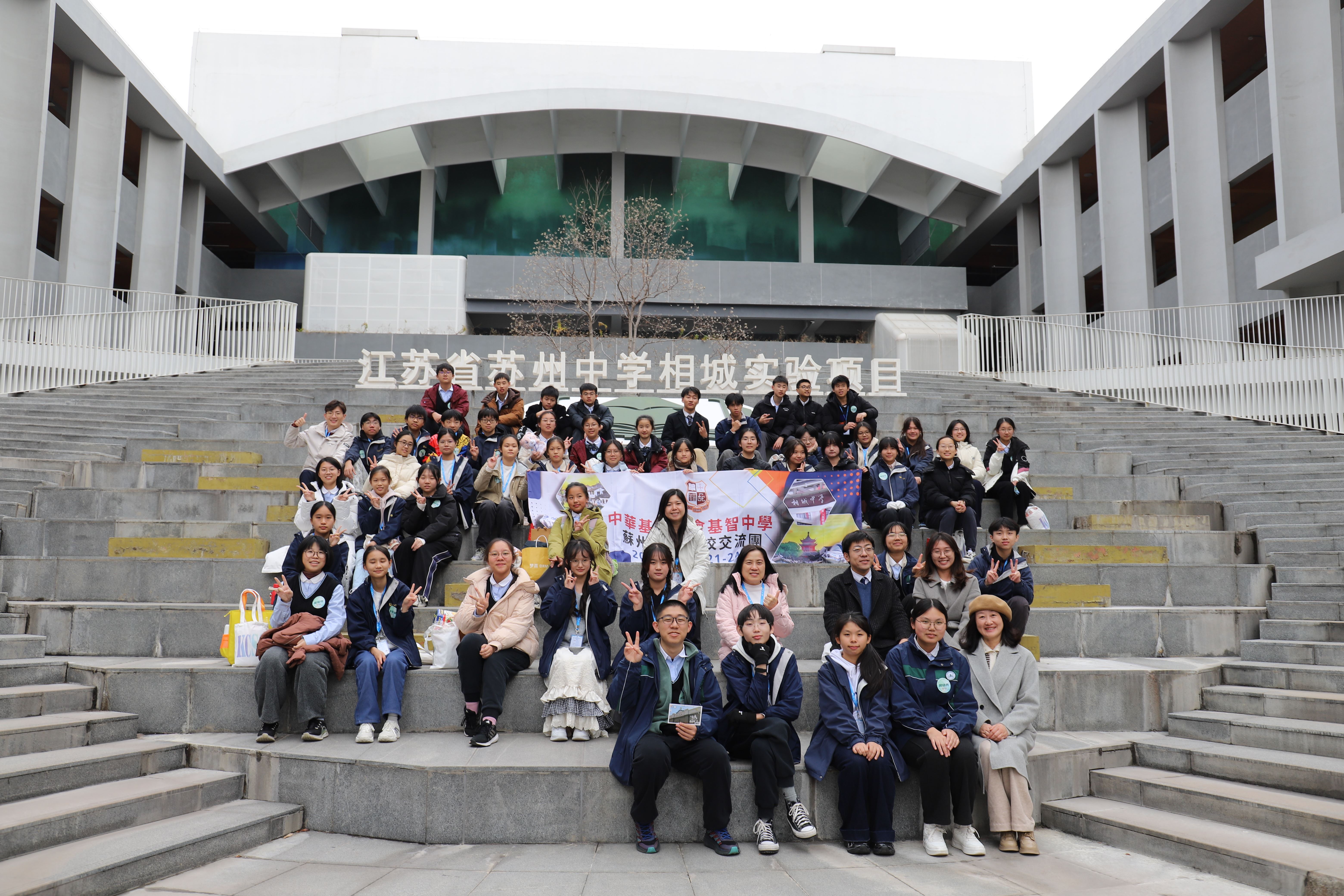 我校師生於二零二五年十二月廿一至廿四日,攜誠赴約蘇州相城中學,展開了為期四日的姊妹學校文化交流。此行以「文化互鑑、教育共融」為旨,旨在深化兩地情誼,共拓視野新境。 我校師生應邀參加相城中學莊嚴的升旗典禮。儀式上,師生代表發表國旗下的講話,傳遞香江學子的真摯情誼。隨後,雙方學生交換了具香港與蘇州特色的紀念品,並就兩地文化進行了愉快的交流。在藝術與音樂課堂上,兩校學子共同創作,將維港風華與江南韻致融匯筆端;又協同演奏,體現了藝術的融合之美。 行程期間,兩校師生們攜手走訪了蘇州多處人文勝跡,漫步於亭臺廊榭之間,感受江南深厚的人文底蘊,並參觀了當地科技企業,體驗傳統與現代交融的發展活力。 此行不僅深化姊妹學校情誼,更令學子親歷中華文化之博大與璀璨。兩地青年在互動中啟智,在分享中成長。願兩校友誼長存,未來繼續攜手共築交流橋樑。
