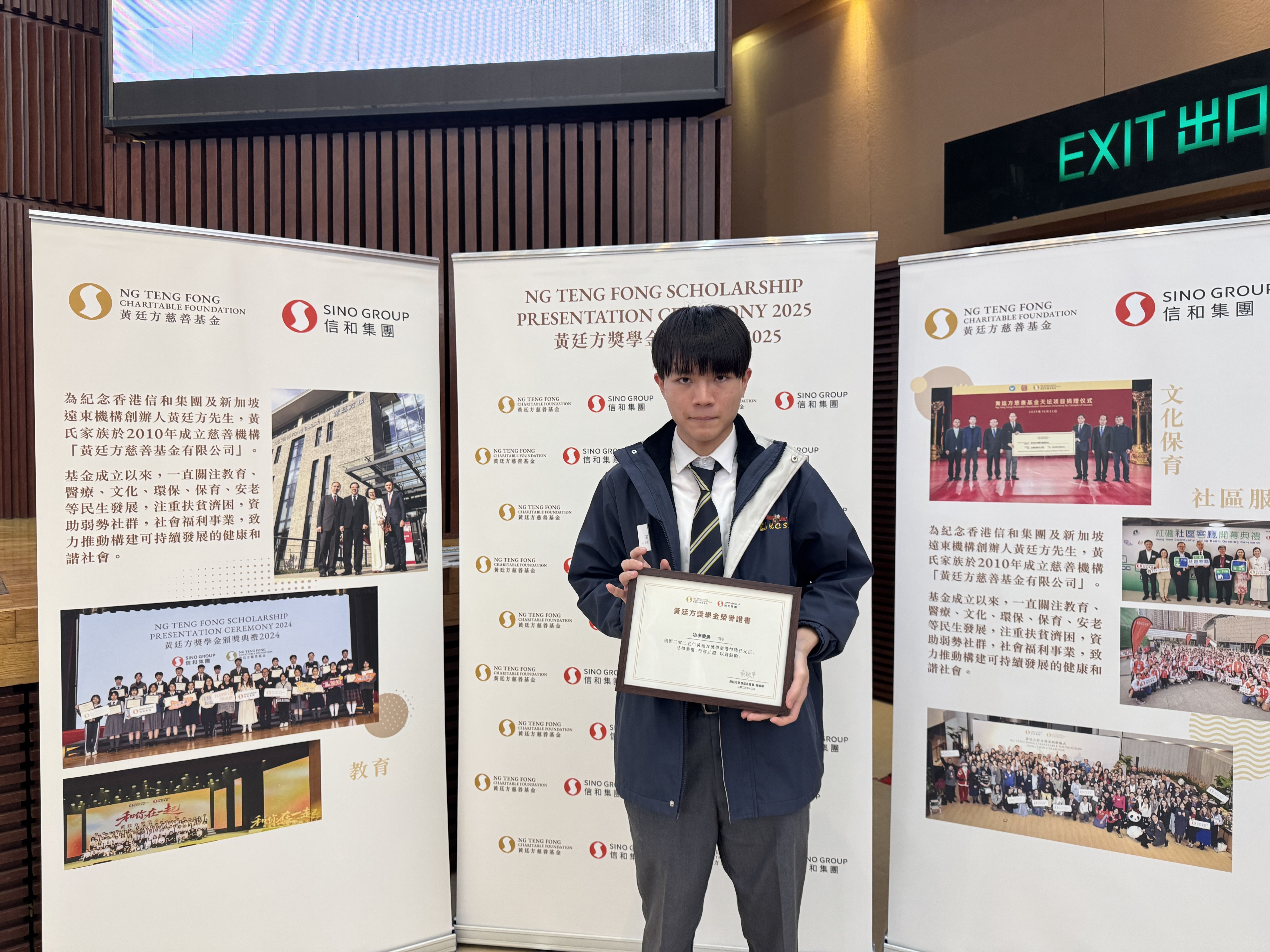 5D 班姚李慶燾同學剛於去年12月獲頒由「黃廷方慈善基金」設立,香港社會服務聯會協辦的「黃廷方獎學金」,「黃廷方獎學金」設立以嘉許品學兼優的中四和中五級學生。