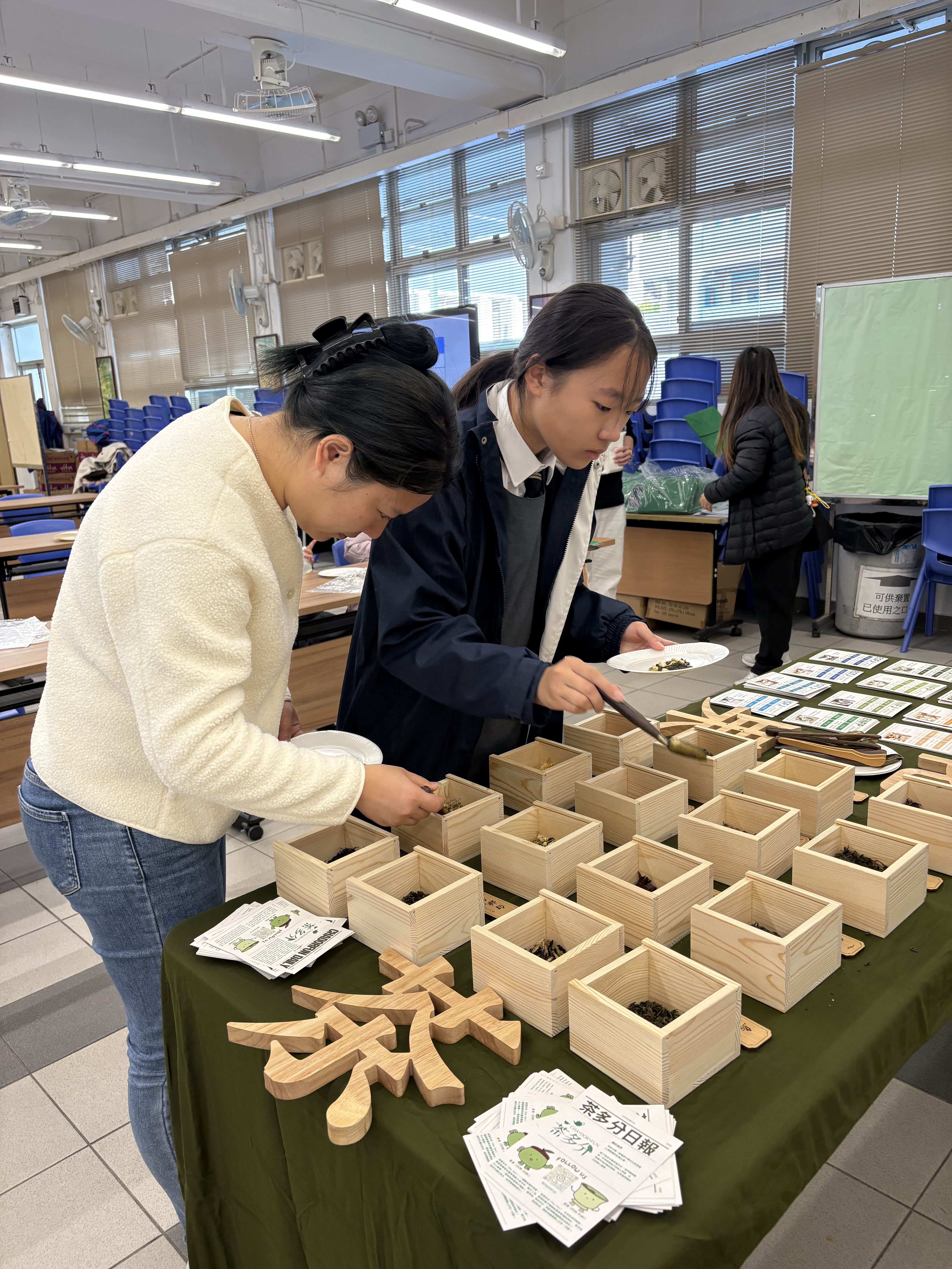 家長教師會於1月9日的家長日,特別舉辦「茶藝工作坊」,設有兩大特色體驗,吸引不少家長及師生參與。其中「MBTI茶包製作」別出心裁,引導參加者按性格特質調配專屬花茶;「茶道及靜觀體驗」則由茶藝師帶領,透過專注品茗結合靜觀練習,讓大家在動靜之間放鬆心靈。活動現場茶香裊裊,參加者藉此舒緩壓力,享受了一段難得的寧靜時光。