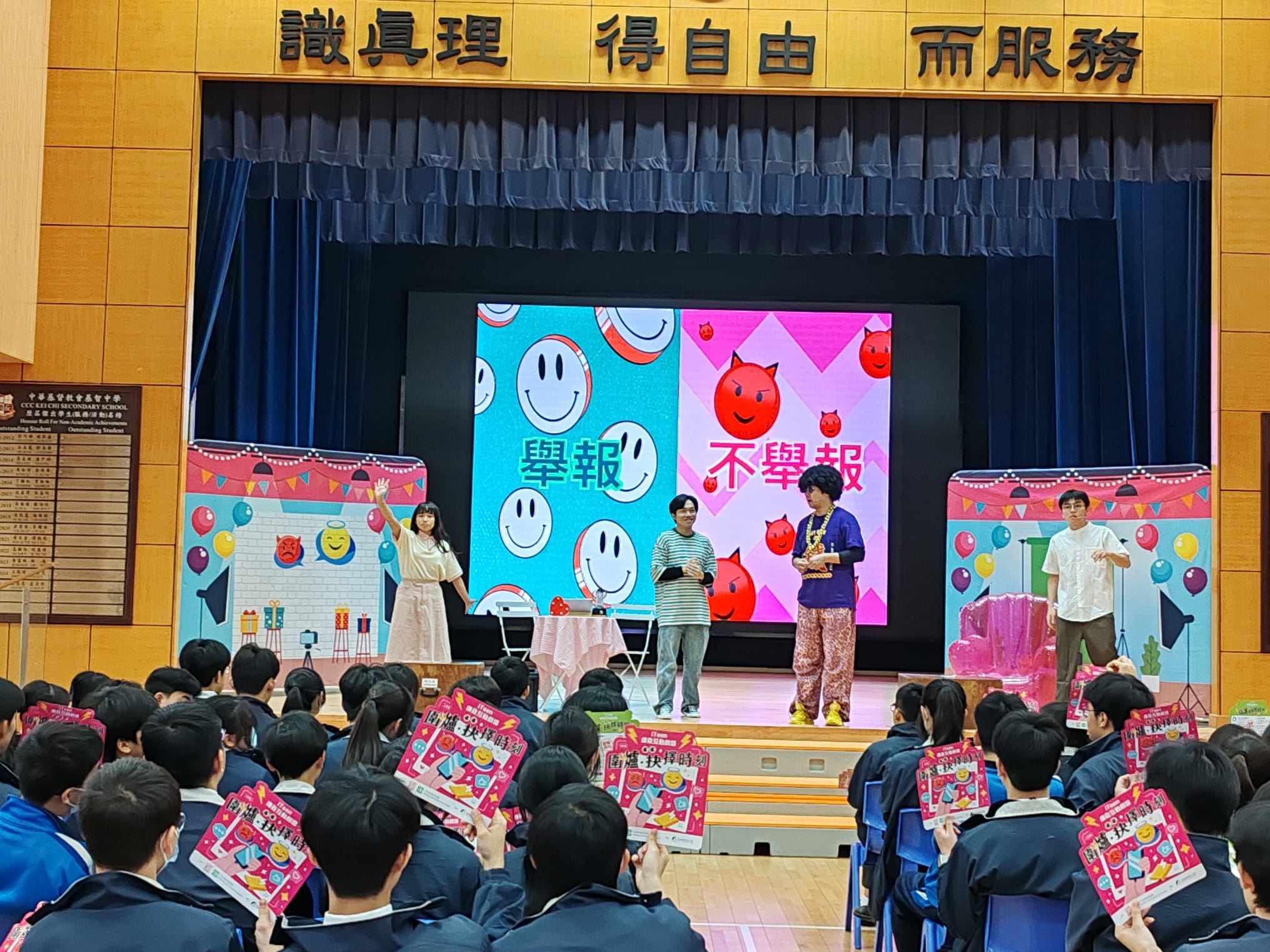 中四全級學生於16/1/2026參與由「廉政公署」舉辦的「廉政互動劇場」,透過觀看《圍爐‧抉擇時刻》互動倡廉話劇,讓學生明白貪污對個人、不同持分者及整體社會的負面影響,從而帶出守法的重要性。