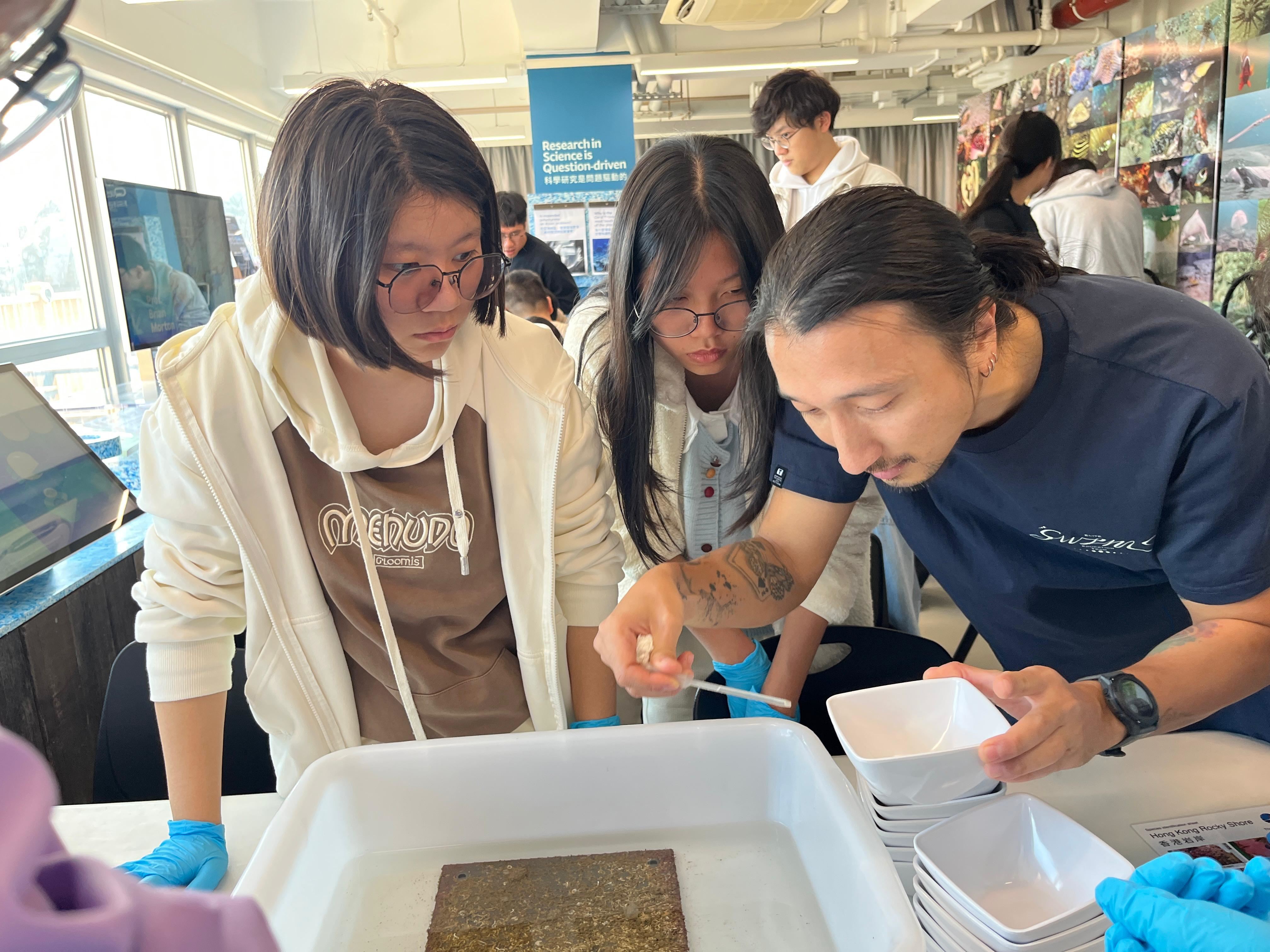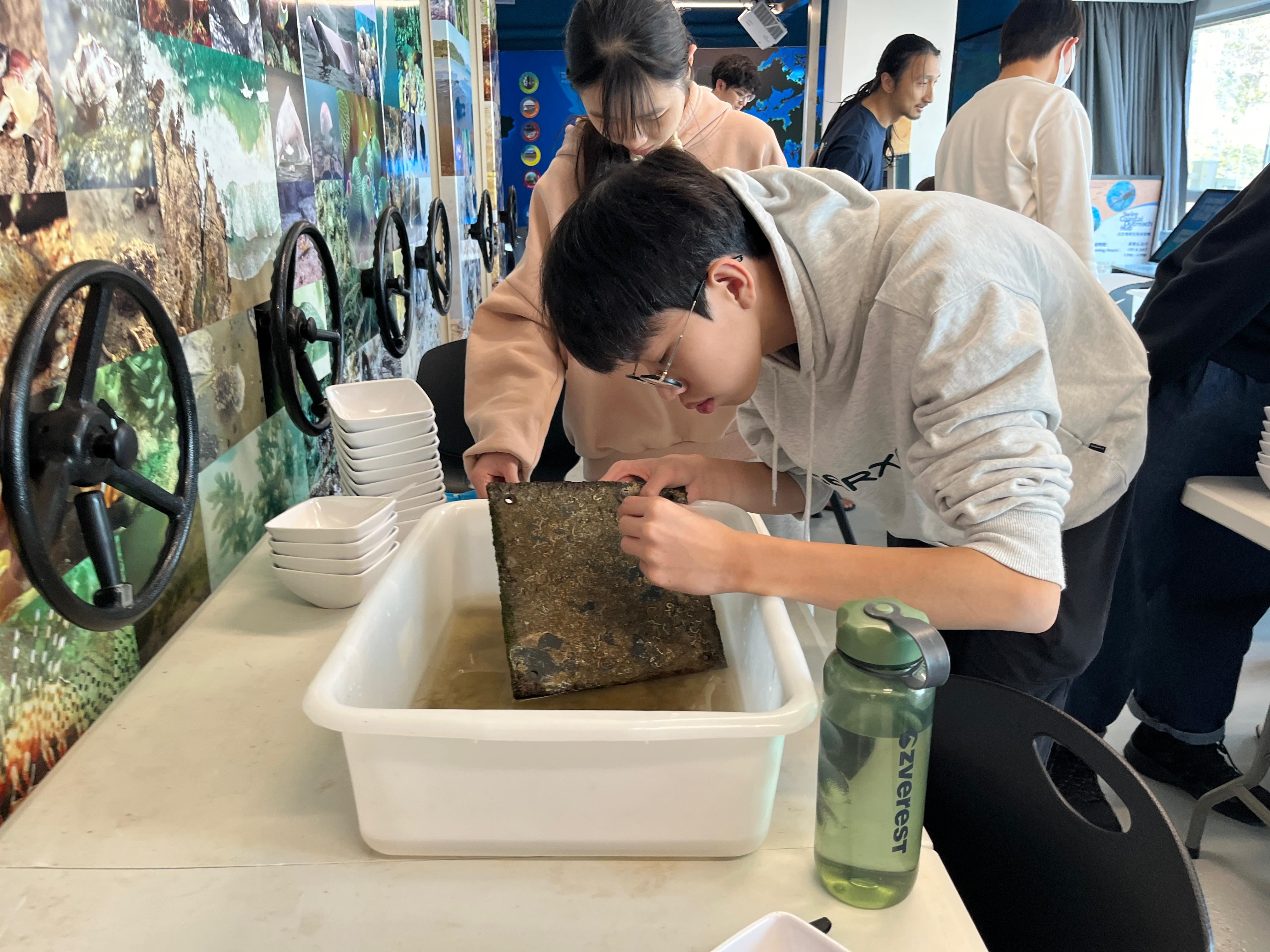 1月17日,TUF和生物科共同安排同學們前往香港大學太古海洋科學研究所參加工作坊。同學在活動過程中親身接觸海洋科學家,了解和體驗他們平日的工作内容,包括在海洋生物採樣器上找出海洋生物,例如:海螺、寄居蟹、海膽等,並把牠們放在顯微鏡下觀察,繼而用生物分類學方法分組和歸類物種。同學們全神貫注,踴躍參與,從中深入了解香港的生物多樣性和加深對海洋科學家的認識。