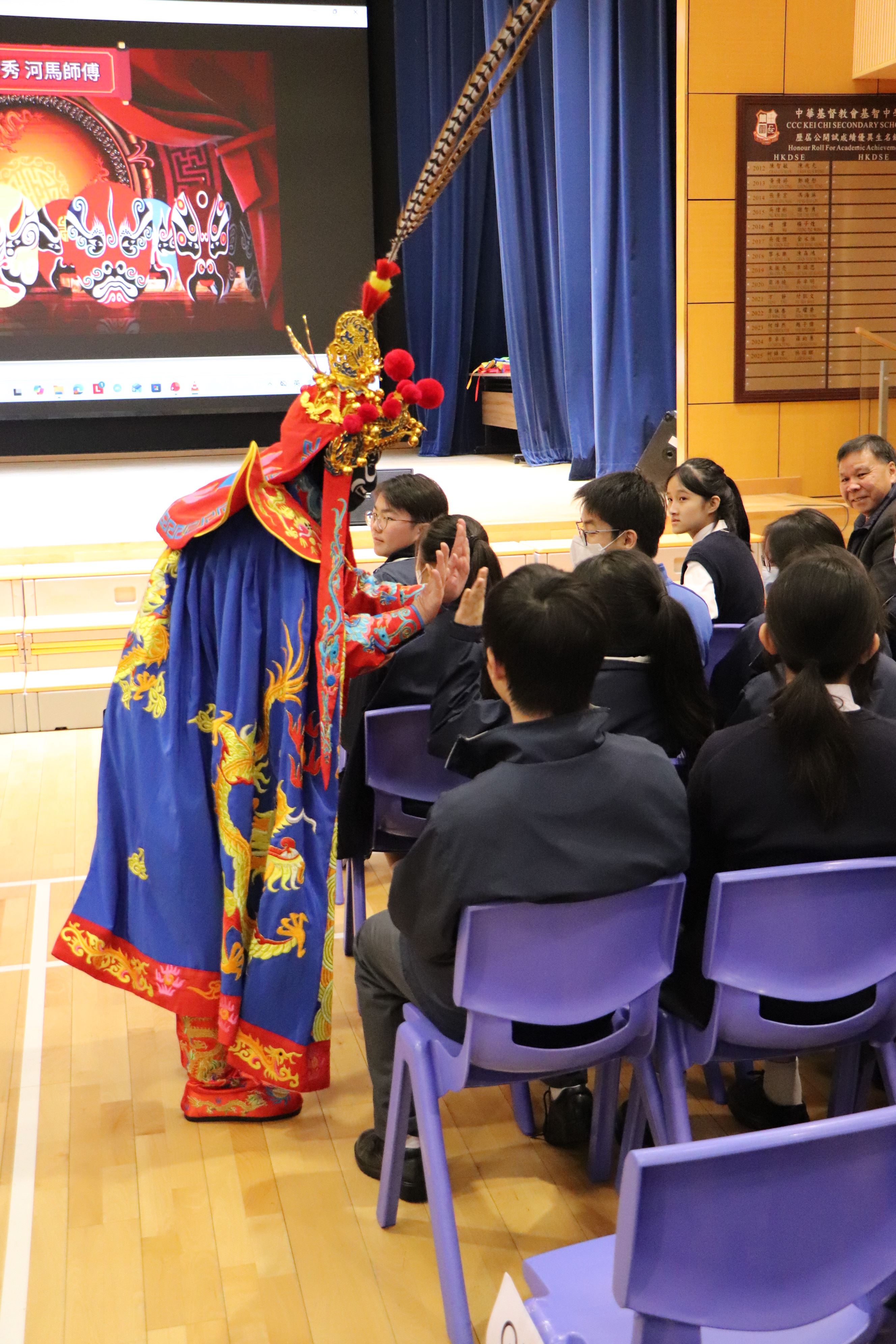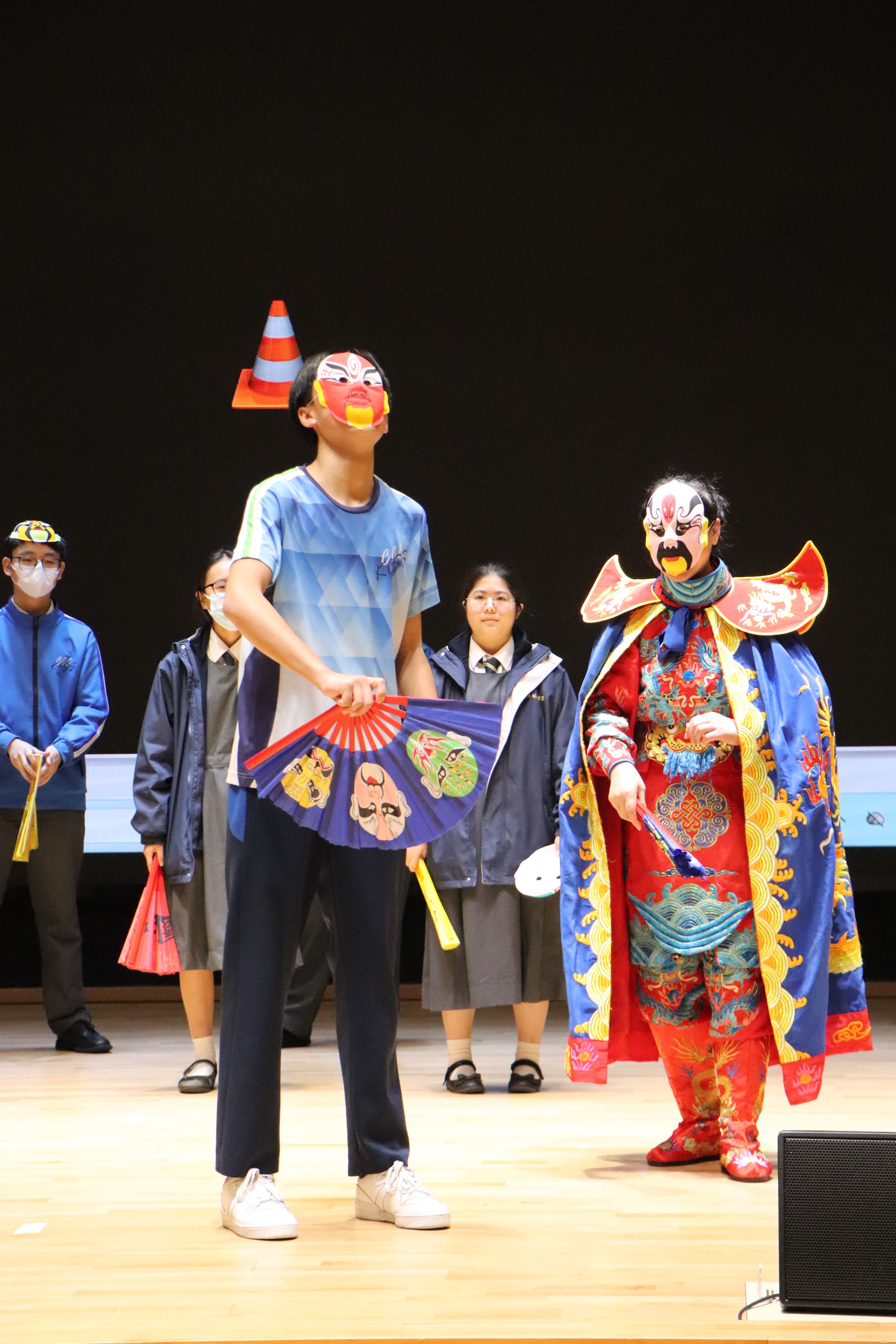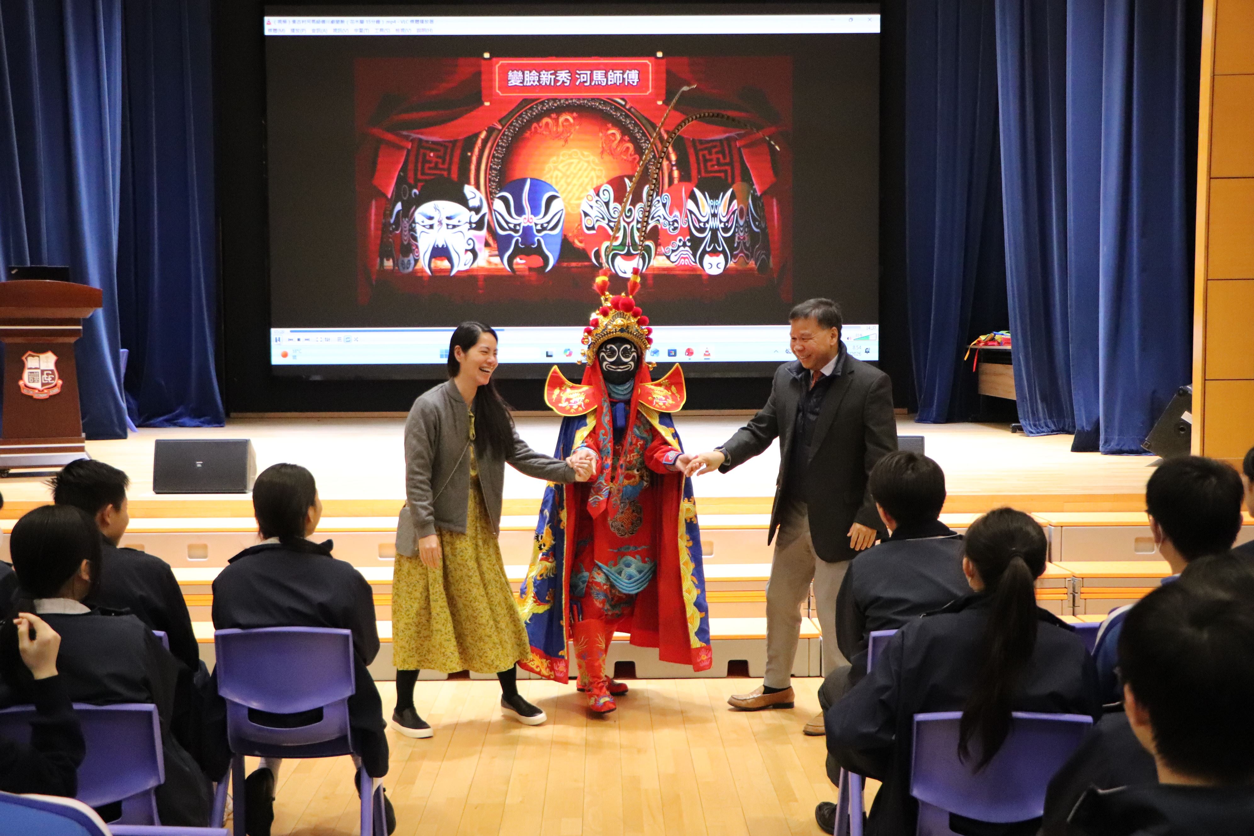 中二級同學到禮堂欣賞川劇變臉絕技。師傅技藝精湛,瞬間變換多張臉譜,贏得全場掌聲。活動讓同學近距離認識傳統藝術,亦讓同學在互動環節中一嘗變臉的滋味,領略中華文化的深厚底蘊。