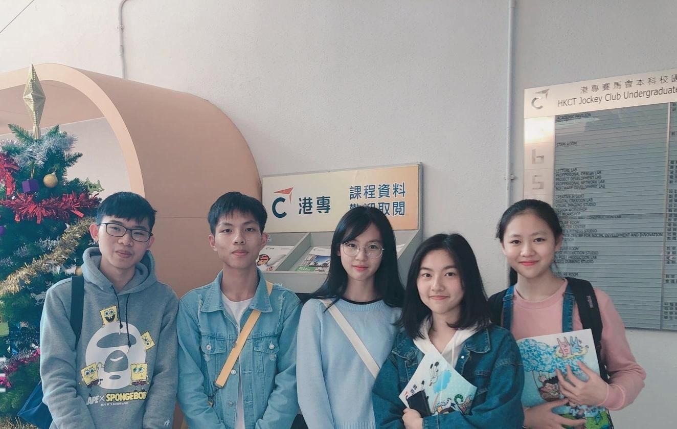 本校4C 班五名學生:何紫欣、 許佳茵、黎啟源、李珈穎及楊綿彬,於2018年12月22日(星期六)到訪位於馬鞍山鞍誠街2號的港專賽馬會本科校園,是次參觀目的是瞭解港專特色,認識校園設施。