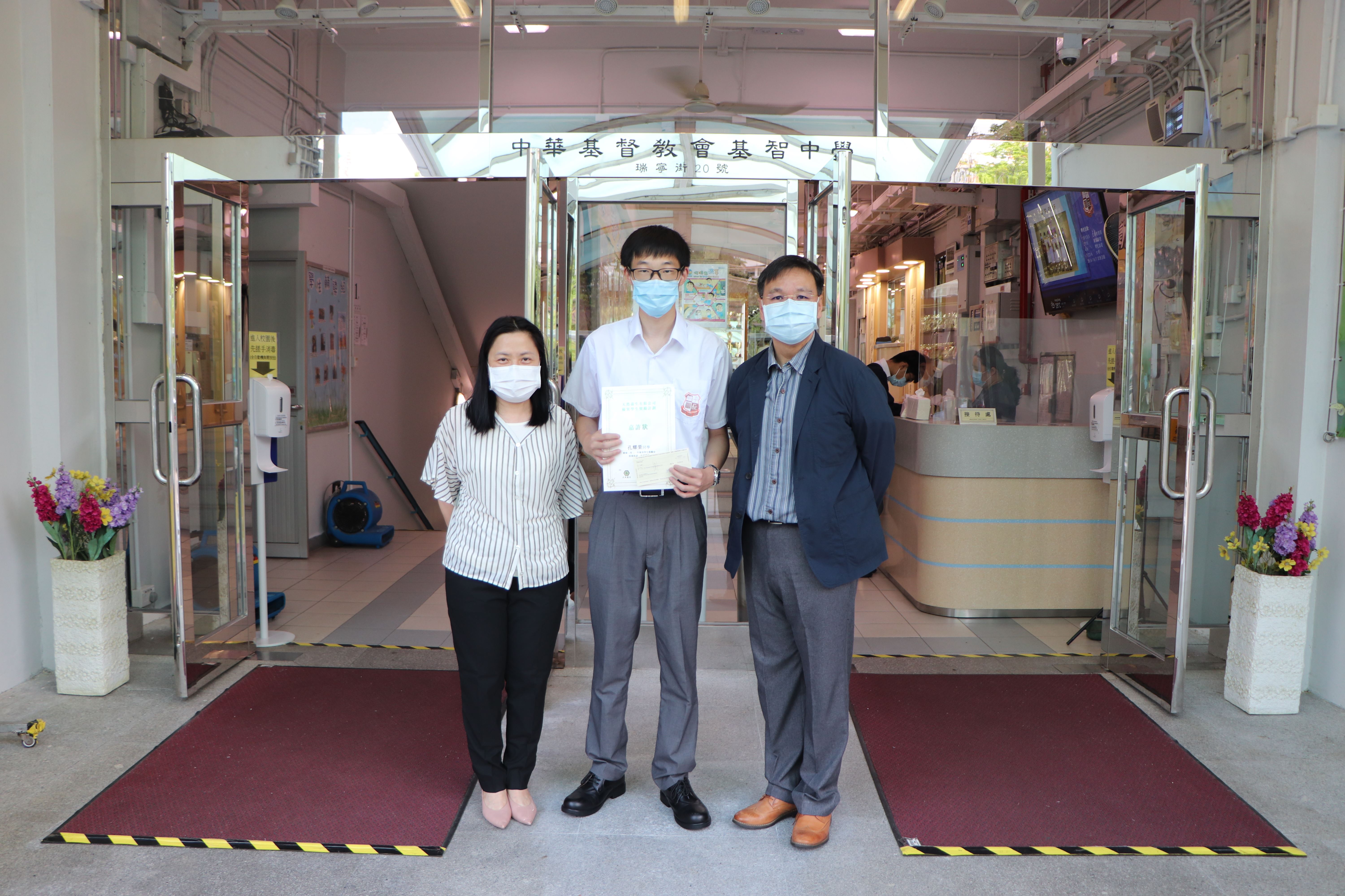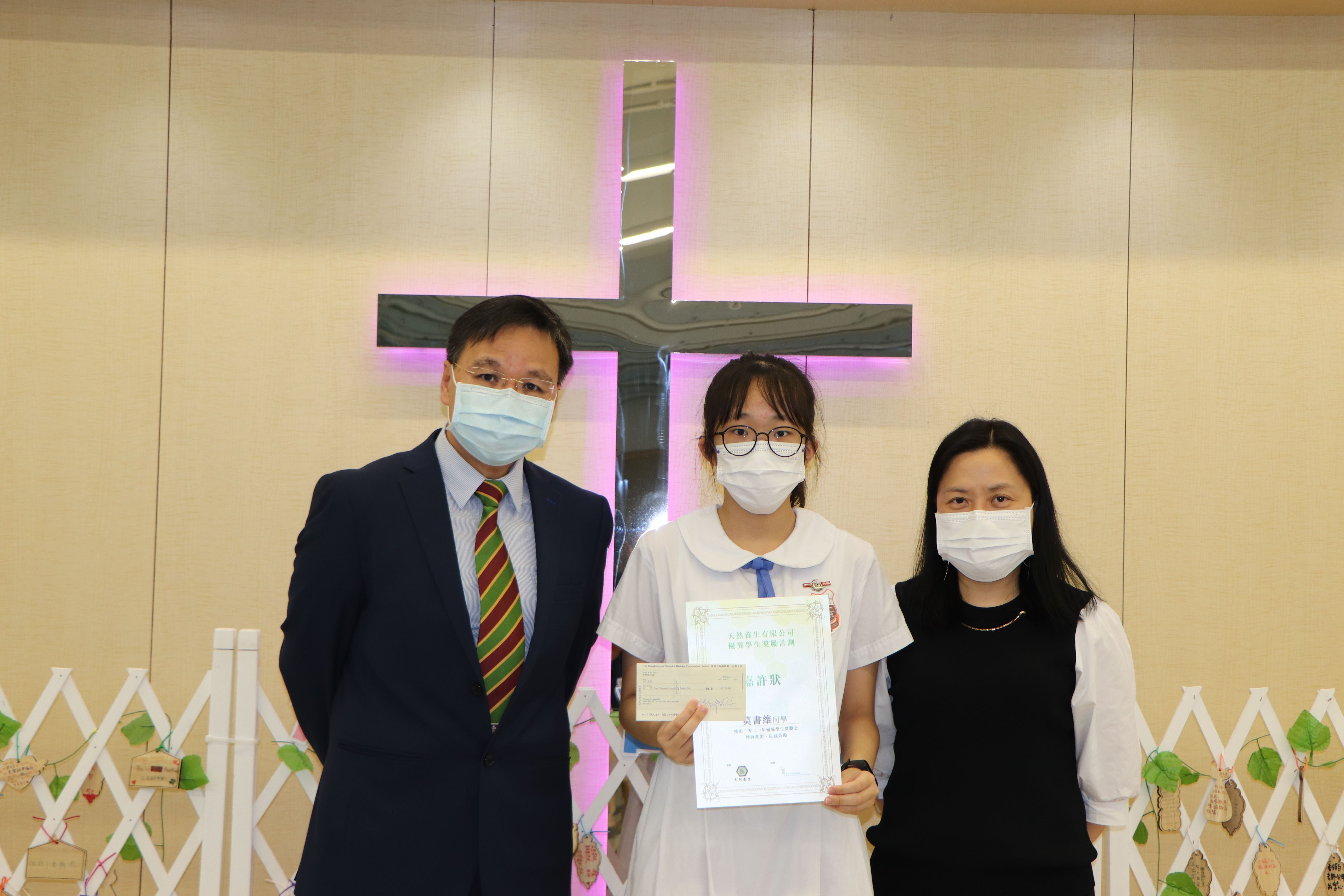 本校4D莫書維同學及5D孔耀榮同學早前參加由香港社會服務聯會主辦的「天然養生有限公司優異學生獎勵計劃」,獲得獎學金$2000,恭喜獲獎學生。