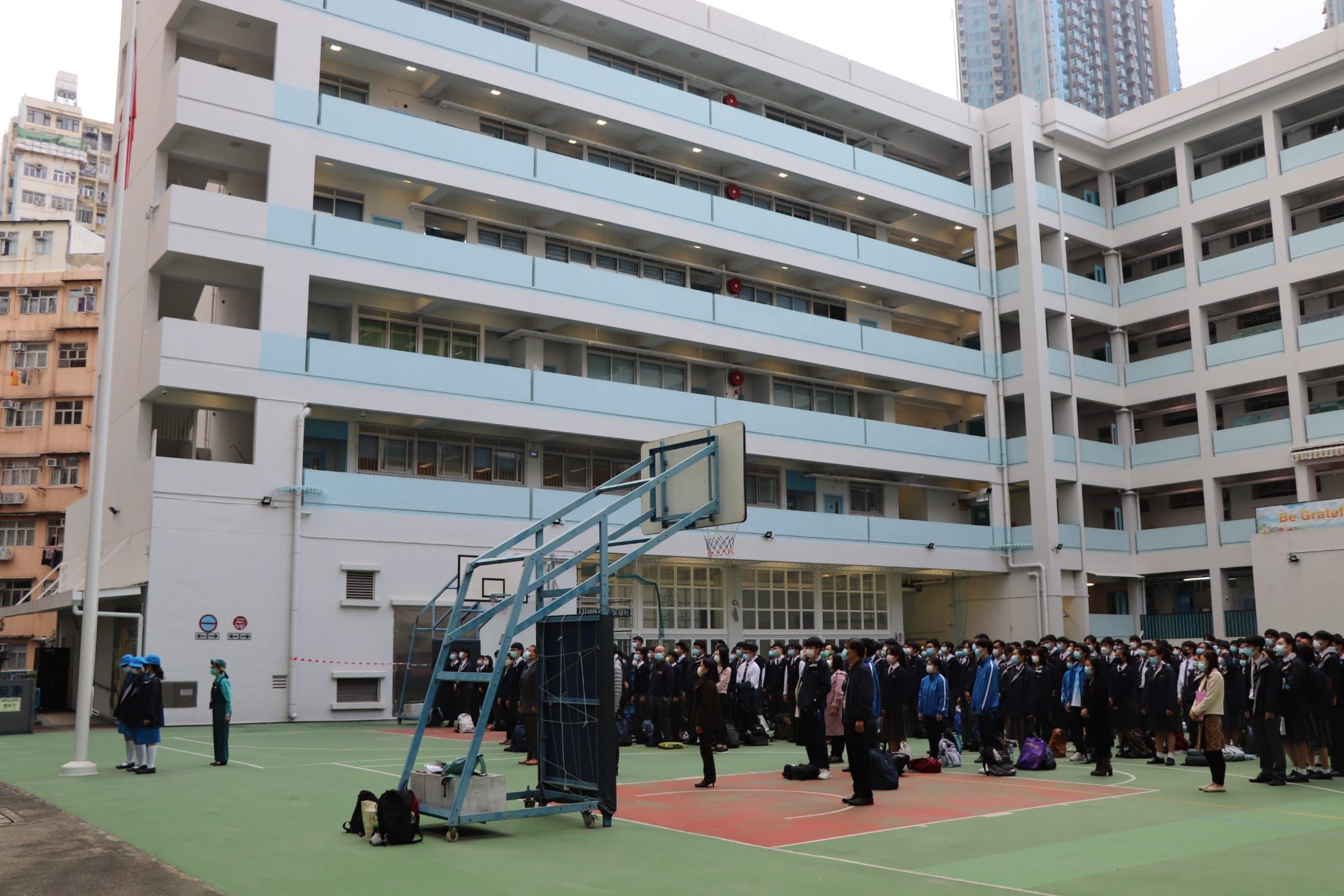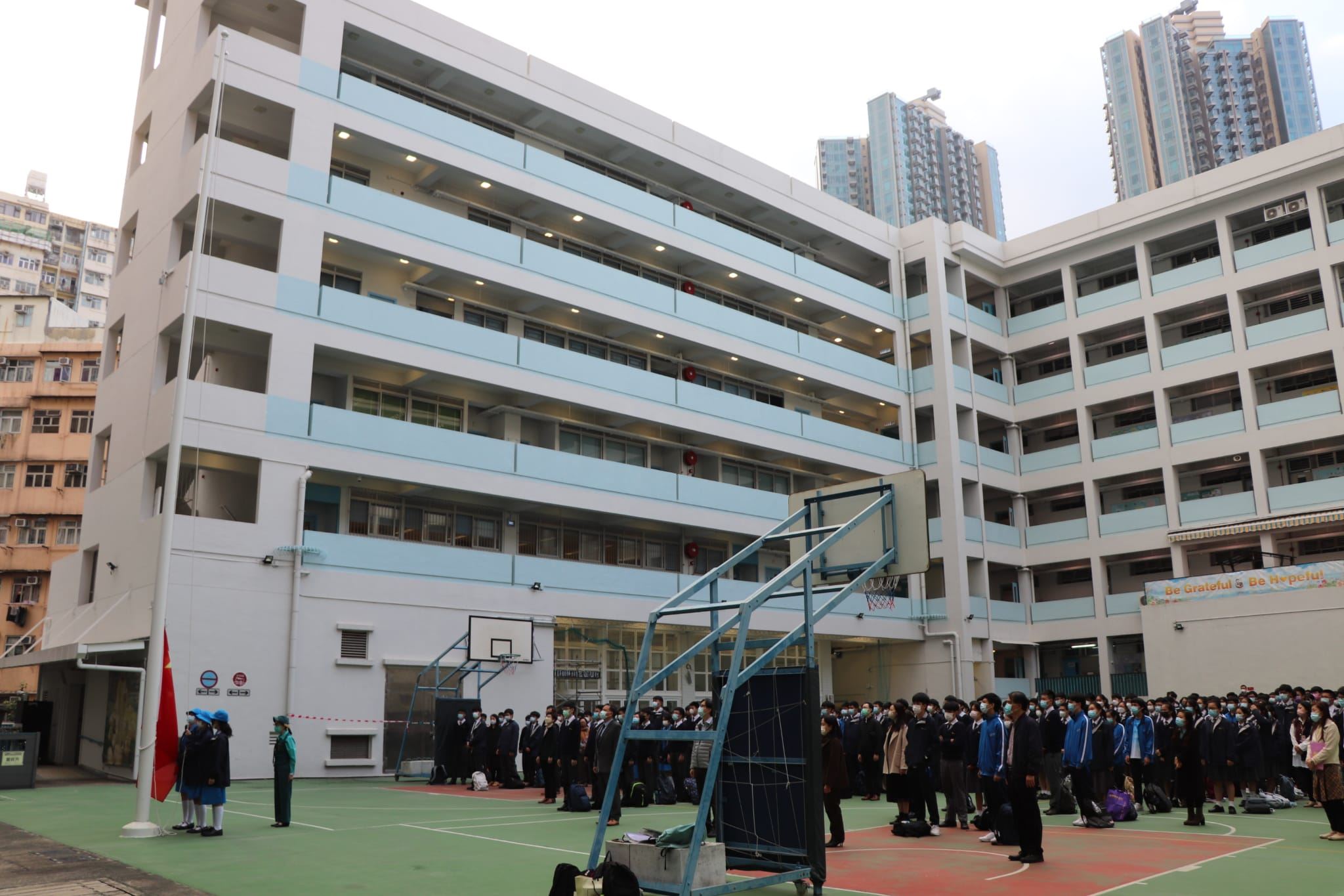 本校於2022年1月3日上午八時舉行元旦升旗禮,期間全體師生肅立,聆聽「國旗下講話」,女童軍負責升掛國旗,儀式順利完成。