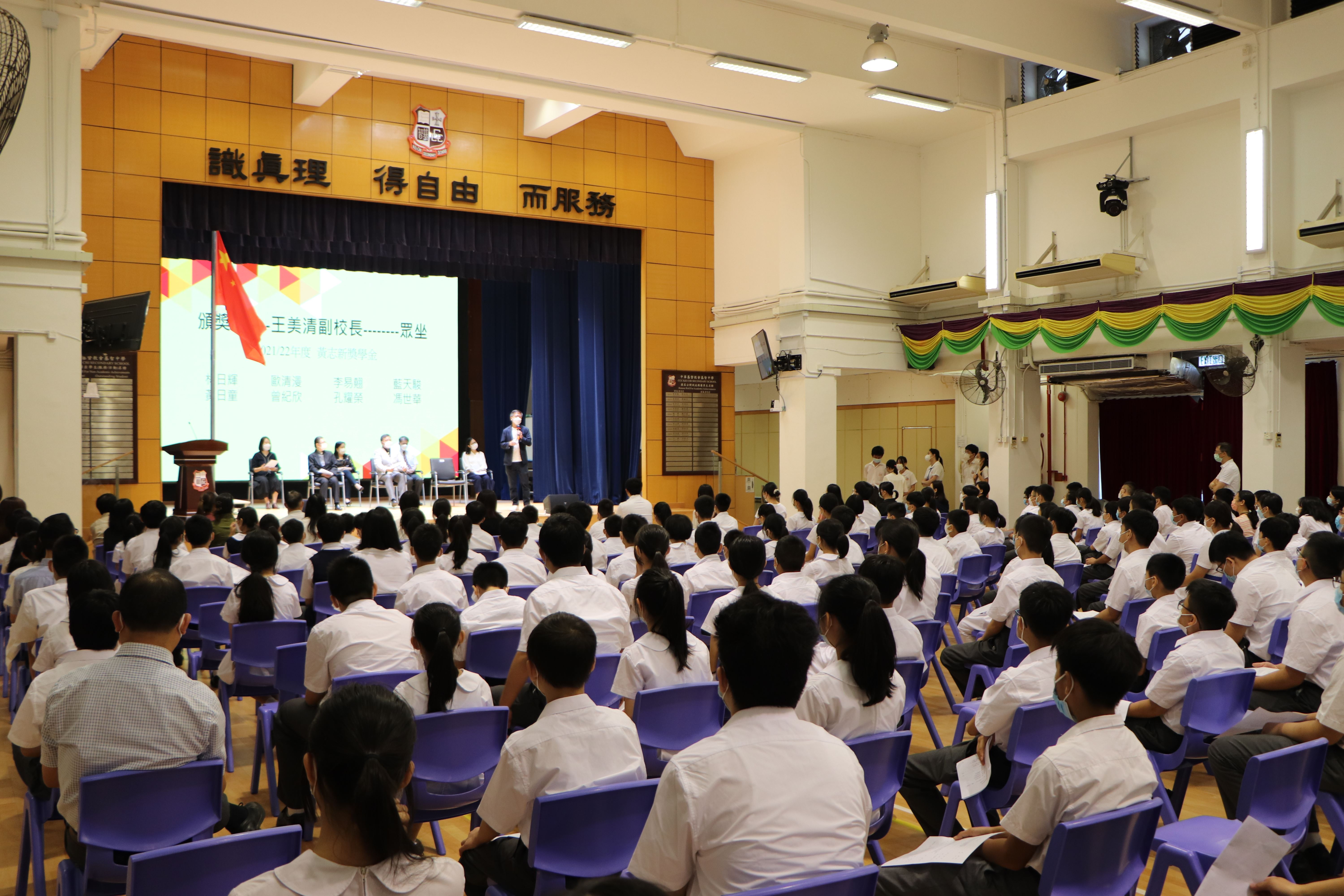 2022年9月1日學校於禮堂舉行開學禮,典禮開始前由女童軍進行升掛國旗及奏唱國歌儀式,李淦章校長分享校園主題「逆境自強」,鼓勵學生勇敢面對逆境,迎接新挑戰;並邀請黃志新校友頒發黃志新獎學金予本年度中學文憑試成績優異,入讀香港中文大學的應屆畢業生。