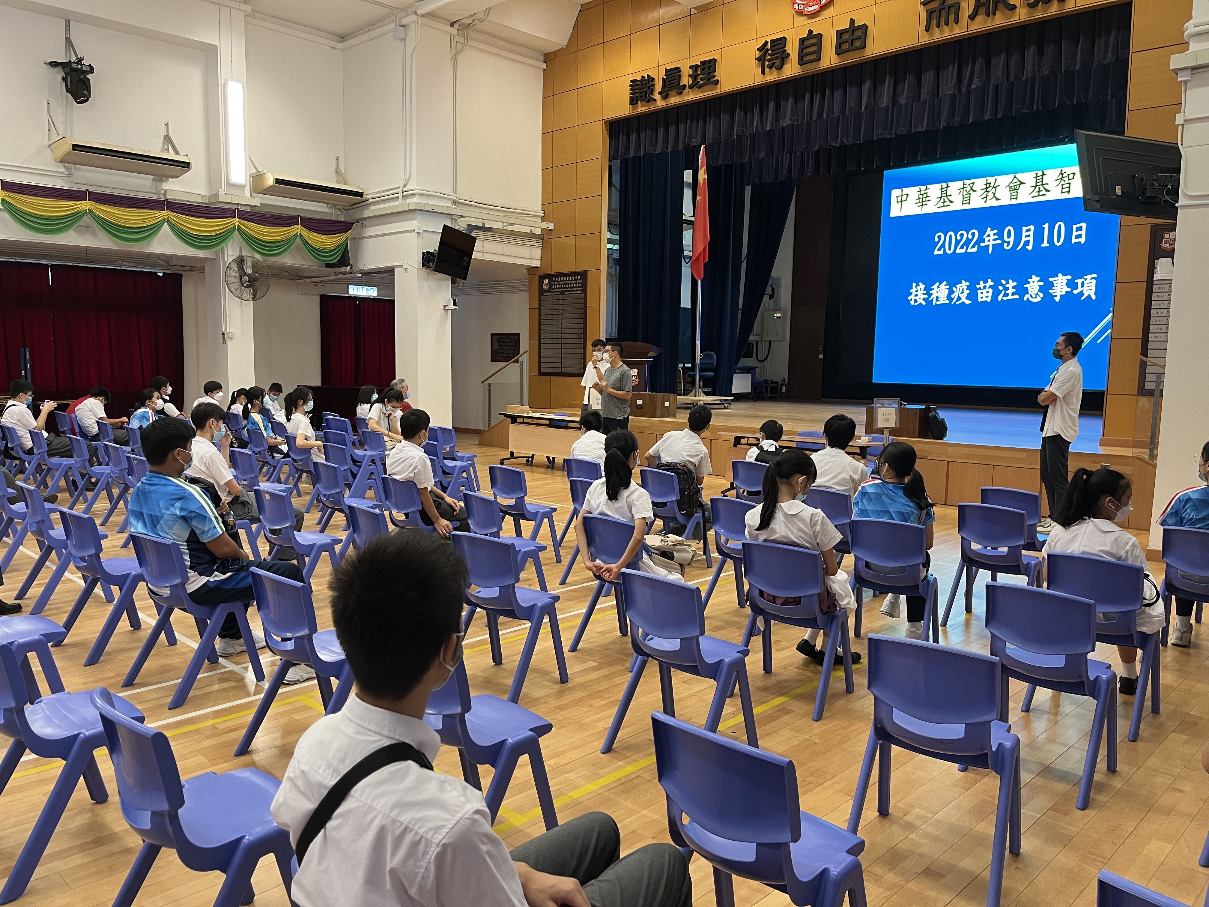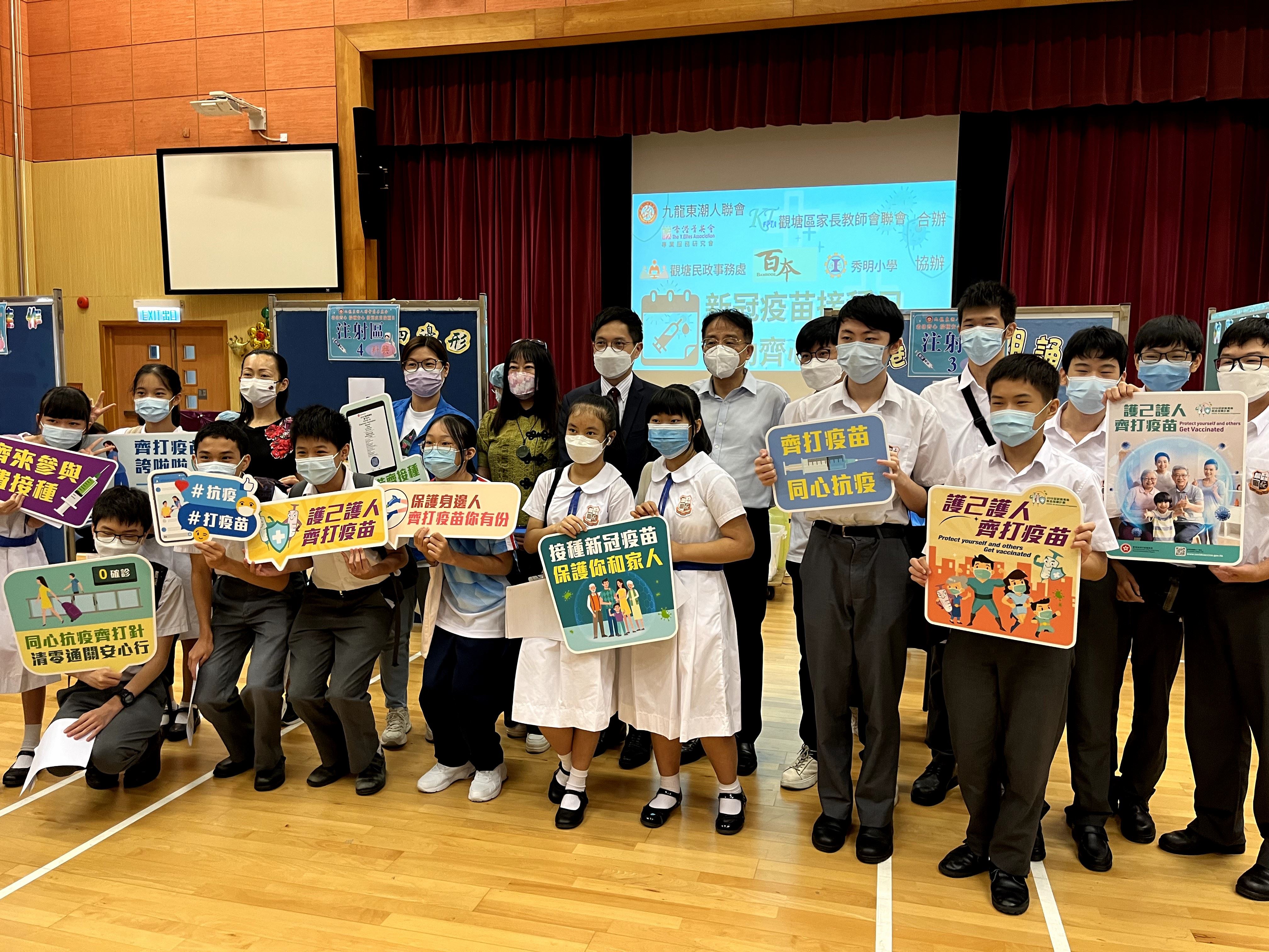 學校參與觀塘區家長教師會聯會學生接種復必泰或科興疫苗計劃,安排學生前往秀茂坪秀明小學接種疫苗,當天約有45位學生接種第2或第3針復必泰或科興疫苗。