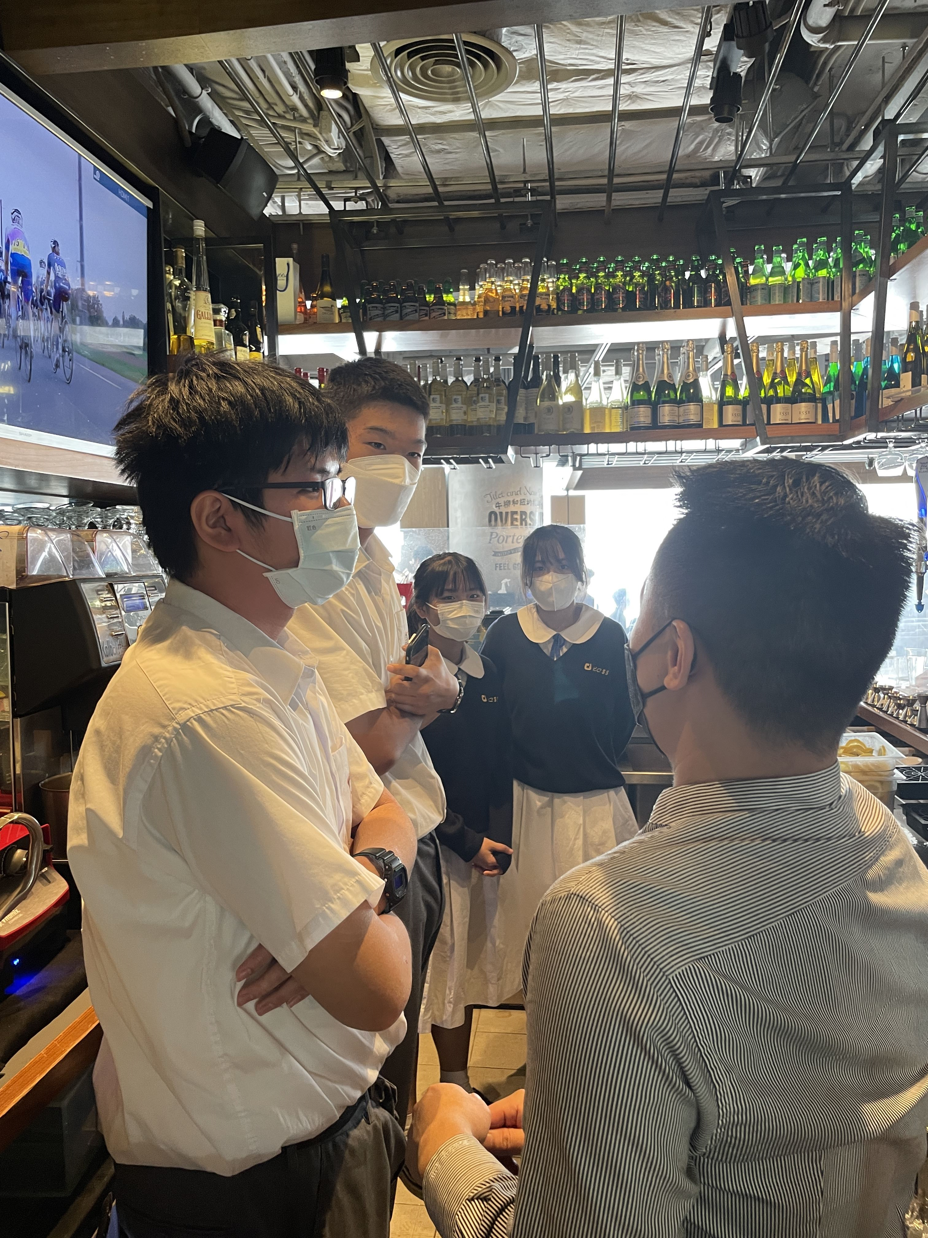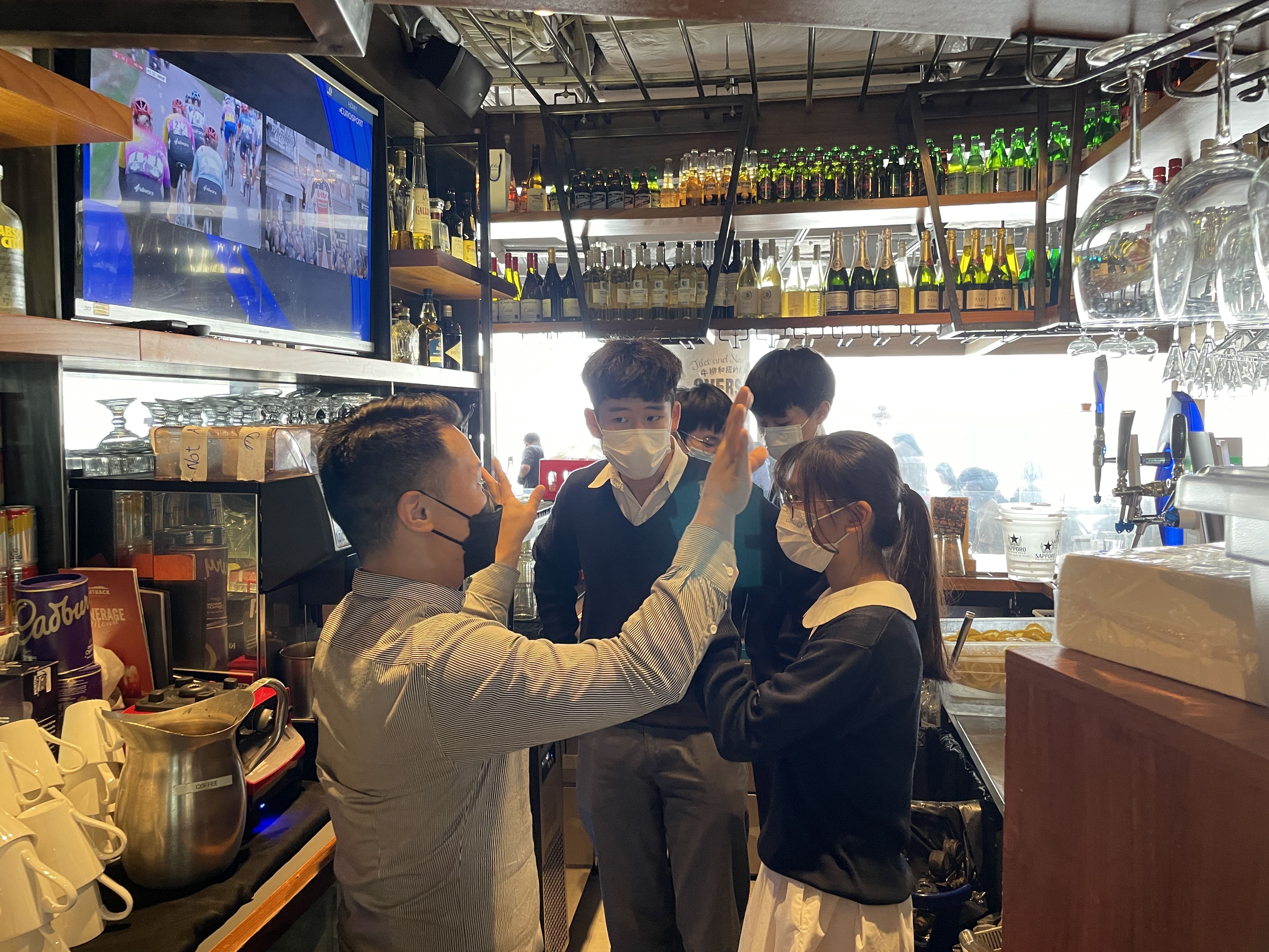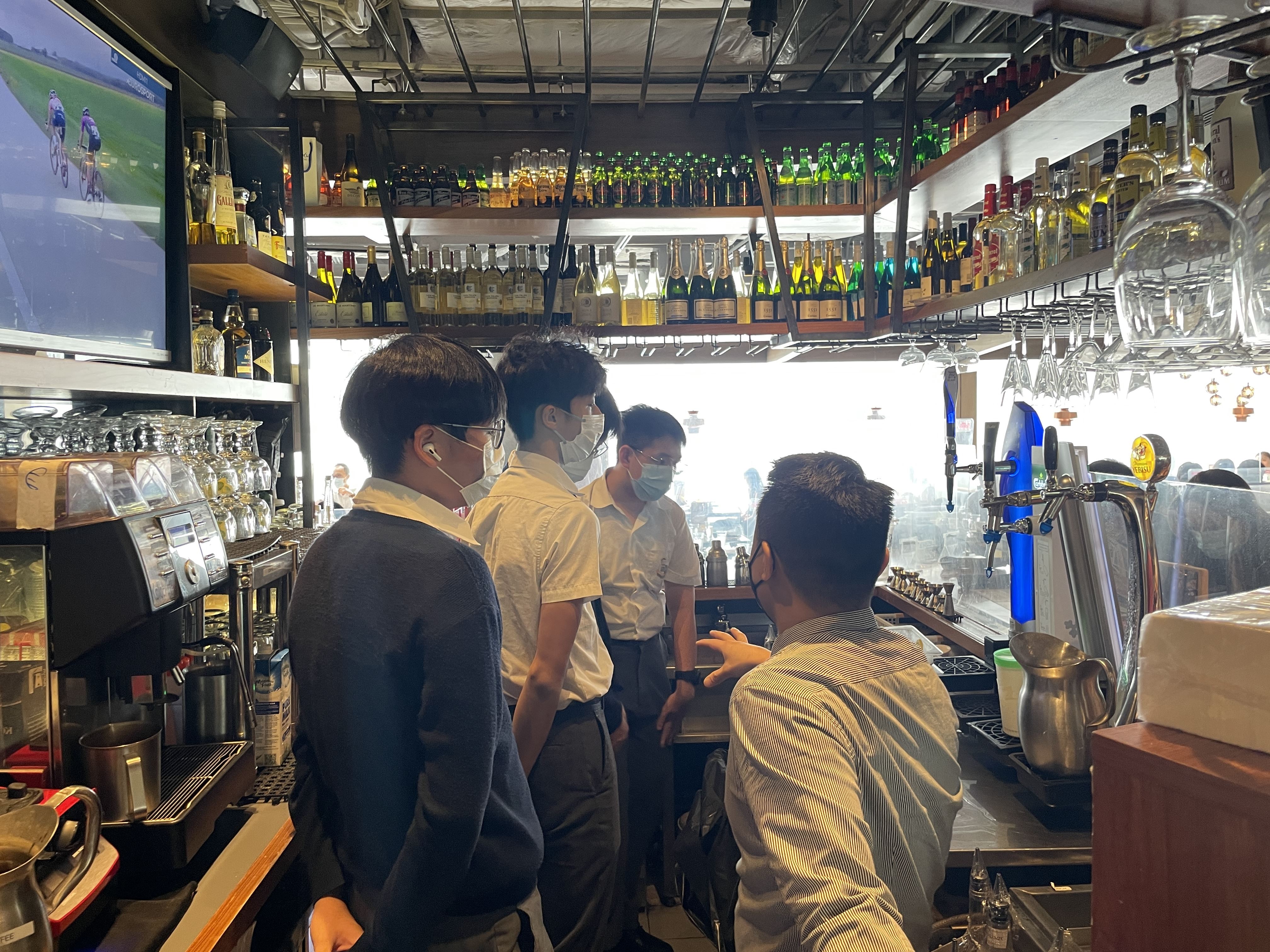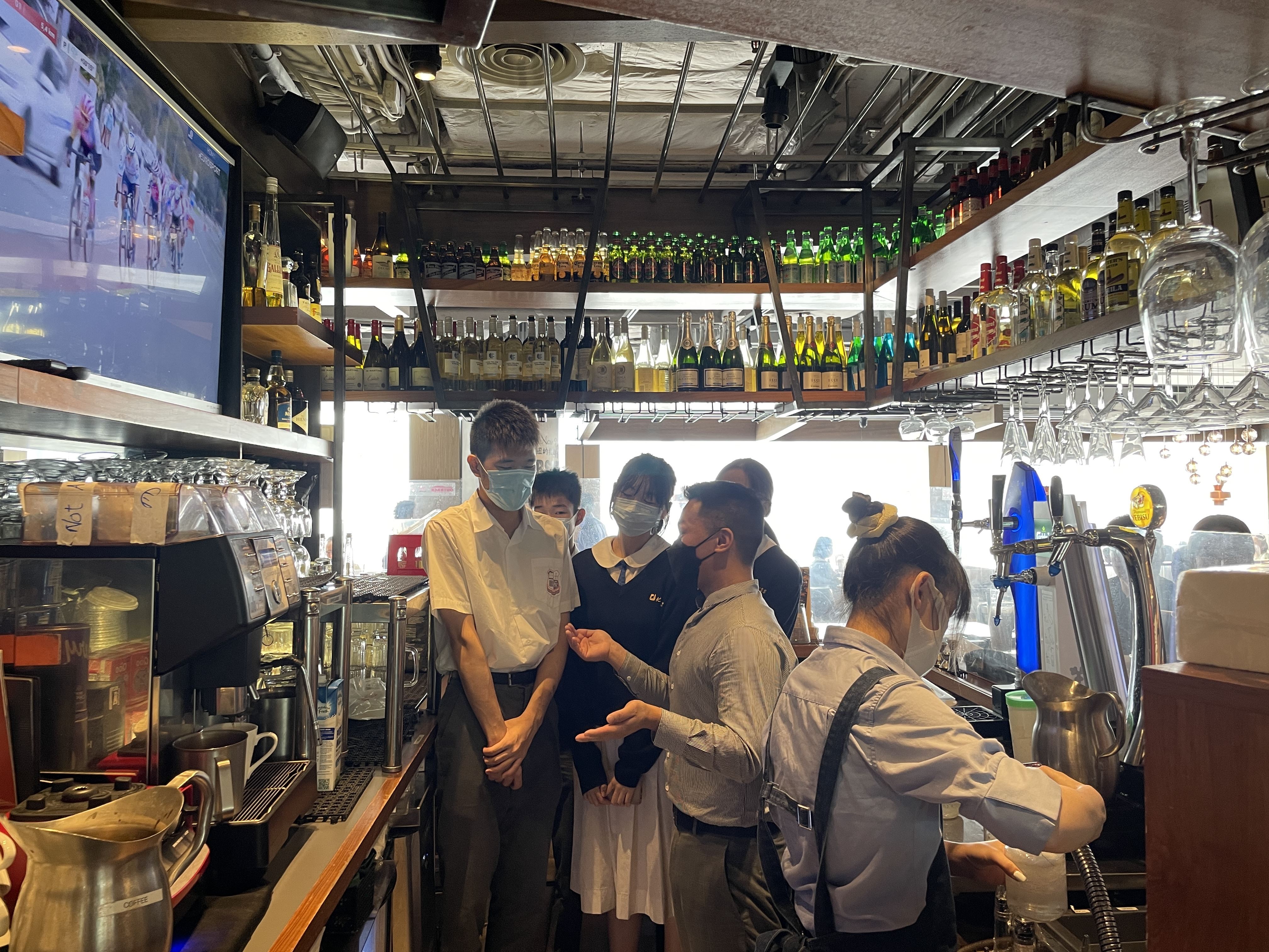 中五級修讀旅款科的同學到西式餐廳實地了解餐廳的設計佈局、運作及餐牌的設計,此外有專人講解水吧的流程及運作,並實地學習西式餐桌禮儀,如嘗試各種西式餐具的使用方法。