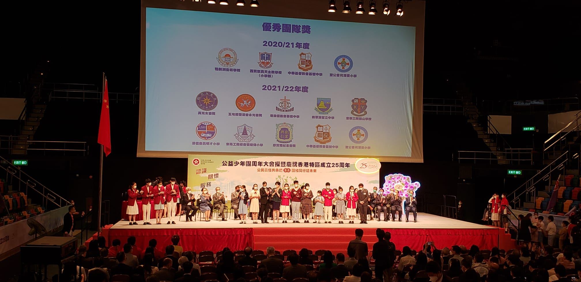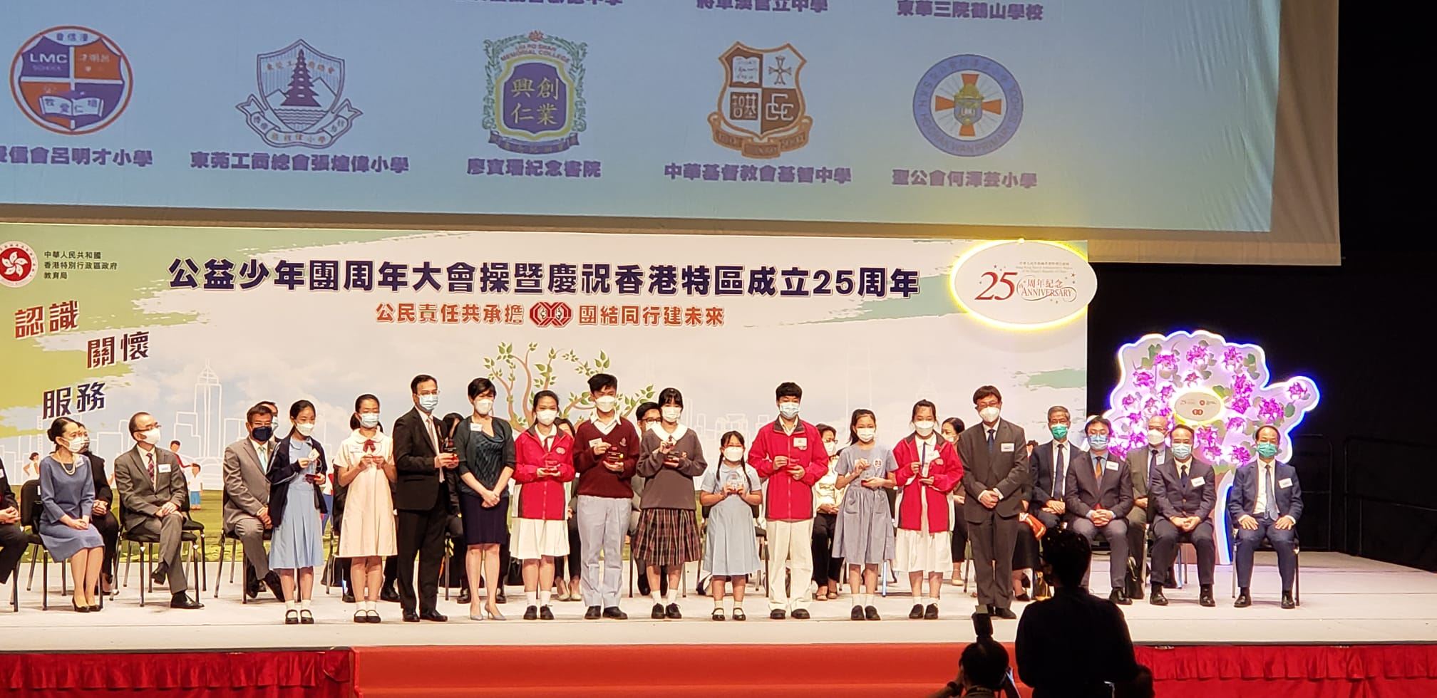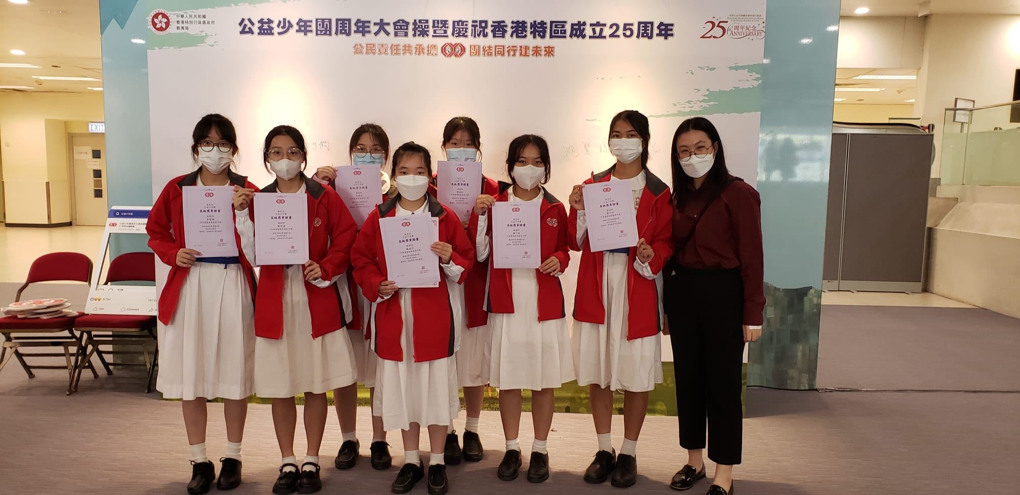 公益少年團員於10月26日一同參加周年大會操暨慶祝香港特區成立二十五周年頒獎禮。當中本校榮獲連續兩年的優秀團體獎;另外6D班魏金莎及莫書維同學獲得紫章及榮譽章;6C班陳熙盈、6A班謝少淇、6C班林潔恩、6B班羅日怡、6B班黎嘉怡、李易翹及陳安婷同學亦獲得榮譽章。