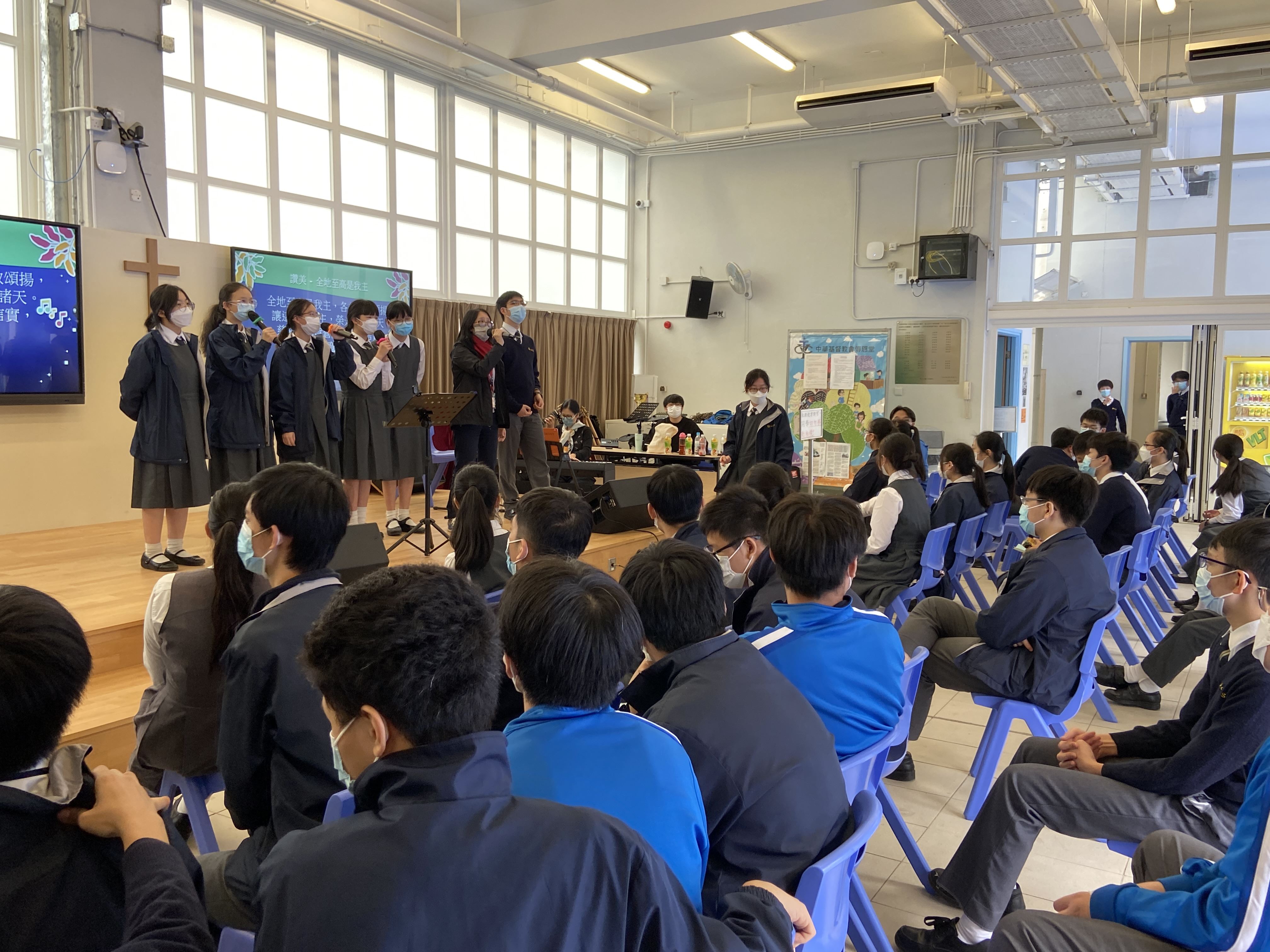 福音周的Sing A Way 活動在12月1日的午膳時段在室內共享學習園地進行,同學們非常投入。當天一班基督精兵獻唱了全地至高是我主、God Will Make A Way 及十架的冠冕。最令人難忘的是有三位基督精兵在老師及同學面前勇敢地分享自己的信仰經歷。