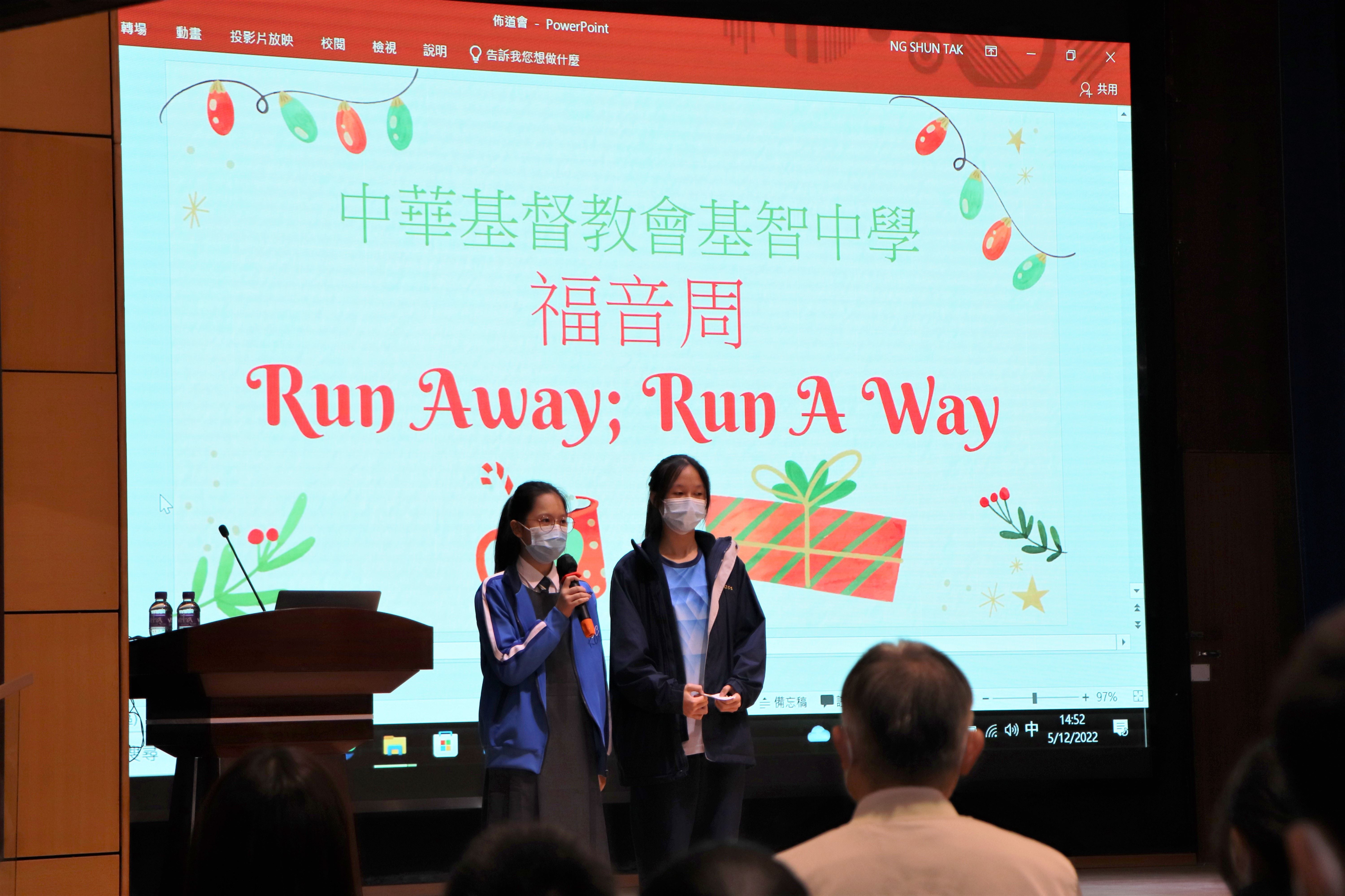 福音周Run Away; Run A Way佈道會由愛基金協辦,邀請藝人森美講見證。森美分享神如何帶領他走出相士悖論的陰霾及神如何一步一步帶領他走進一條蒙福之路。森美亦鼓勵同學享受神賜予的美好,活在其中!