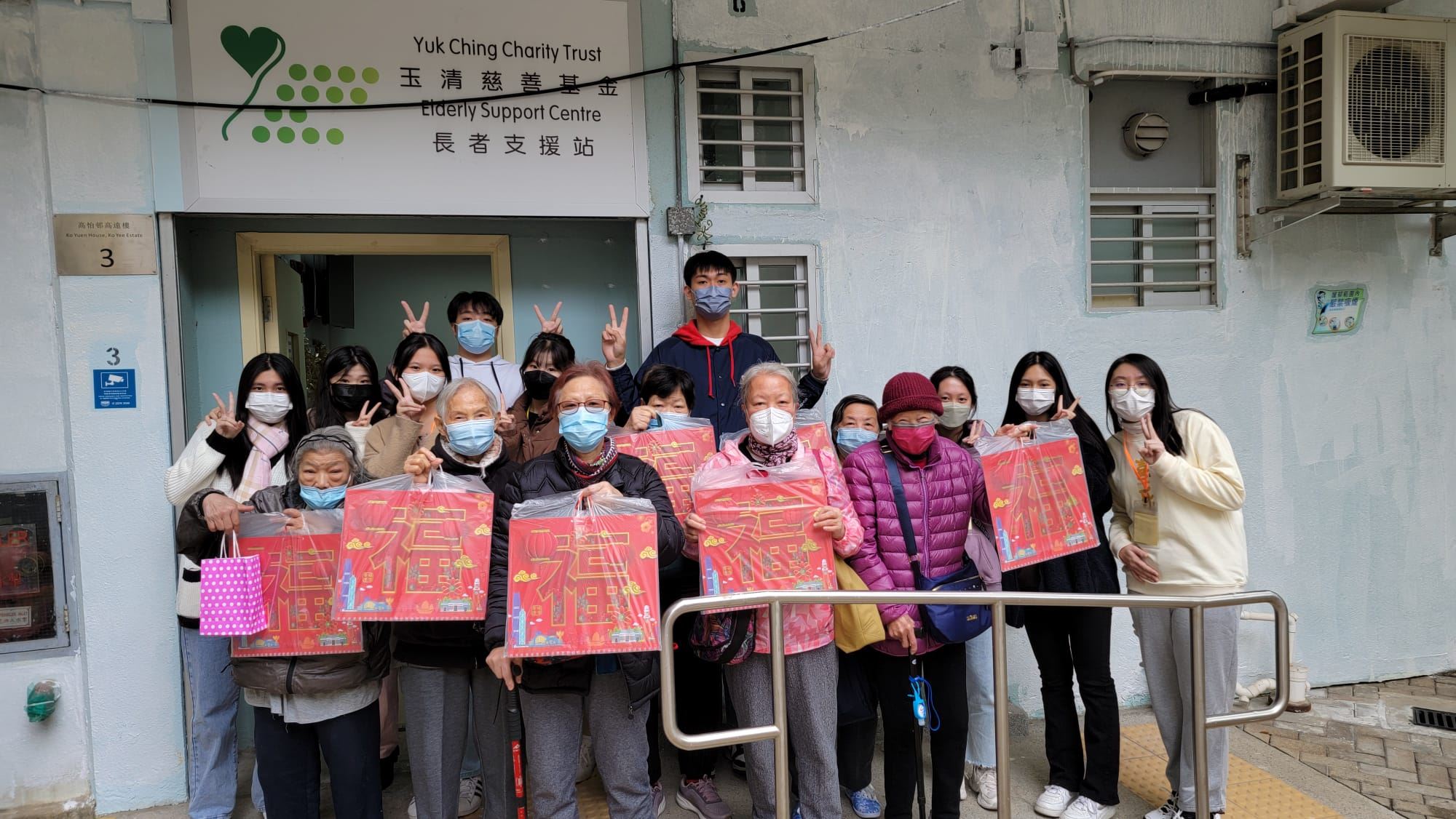 本校18位4C青年義工領袖計劃的團員在攝氏12度的寒冷日子到了油塘高怡邨,為19位長者送上"Fun樂暖您心"活動,既上樓探訪問候,送上毛氈、心意包及年曆,又在長者支援站陪長者玩互動遊戲,訪談閒聊及送上節日賀咭及小禮物,為長者送上最真摯的問候及關懷,團員分享活動有意義。探訪活動結束時,長者都依依不捨,並向本校師生致謝。