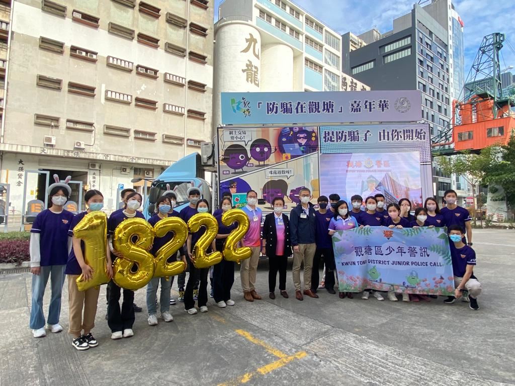 3A 張雅燕、侯紫潁、曾家圓、吳泳宜、余紫妍、3B 王錦文、肖志軒、3D蔡菁菁、4C 譚錦權 及 4D 鄧啓泓於1月7日防騙在觀塘嘉年華中當義工,協助舉辦攤位遊戲及場內活動。