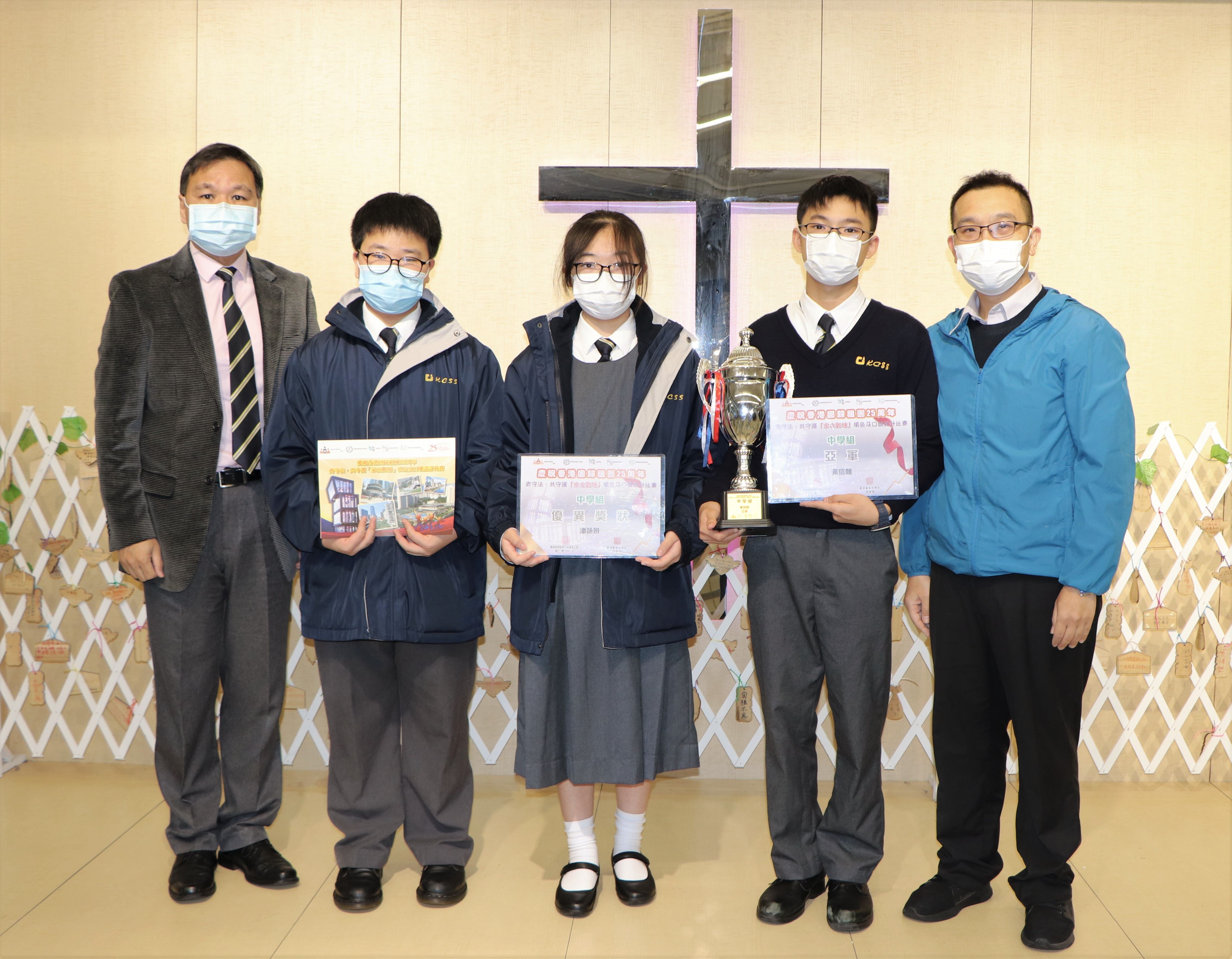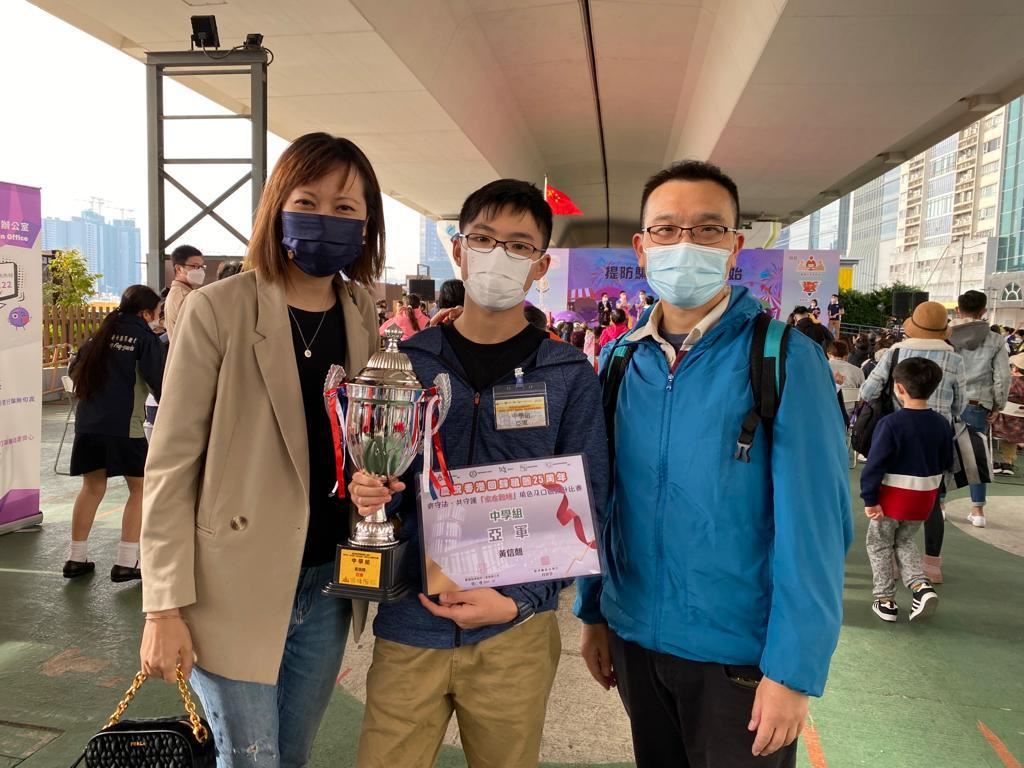 生活與社會科參與由觀塘區撲滅罪行委員會、觀塘警區、觀塘區學校聯會、觀塘區家長教師會聯會合辦之「齊守法,共守護,家在觀塘」填色及口號設計比賽,本校學生作品從中學組700多份作品中獲得獎項,並於1月7日在觀塘海濱舉行之『防騙在觀塘嘉年華』中進行頒獎,得獎學生名單如下: 亞軍:黃信翹(2C) 優異:潘詠妍(2A) 入圍:施朗衡(2A)
