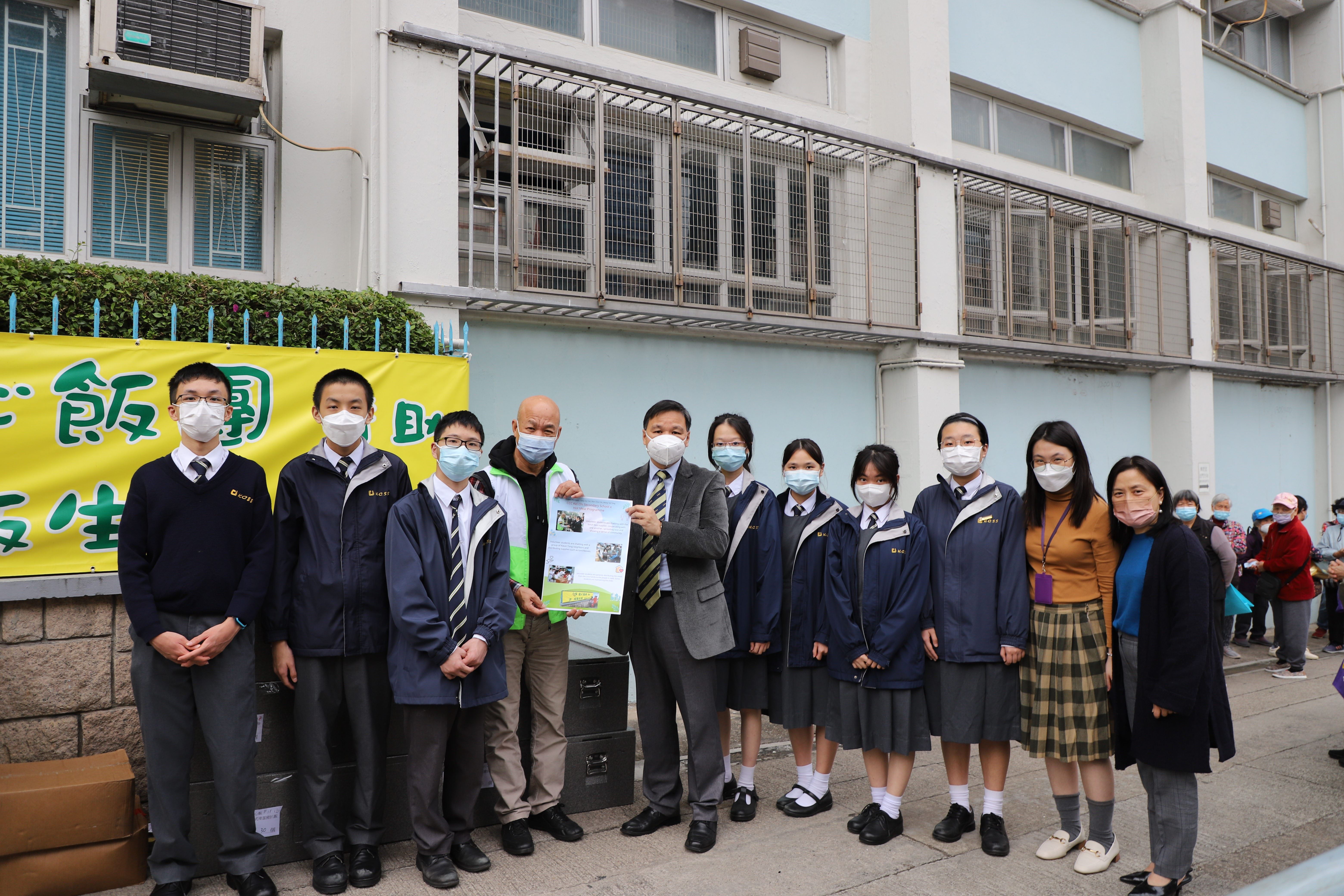 本校同學早前參加了由理工大學舉行的網上展覽,同學從本校的慈善活動「愛心飯團」中獲得創作靈感。在海報中不但運用英語記錄善舉,更發揮創意勇奪獎項。其後, 校長、老師及同學們更邀請愛心飯團領頭人黃先生, 一同與作品留下紀錄, 畫面溫馨。