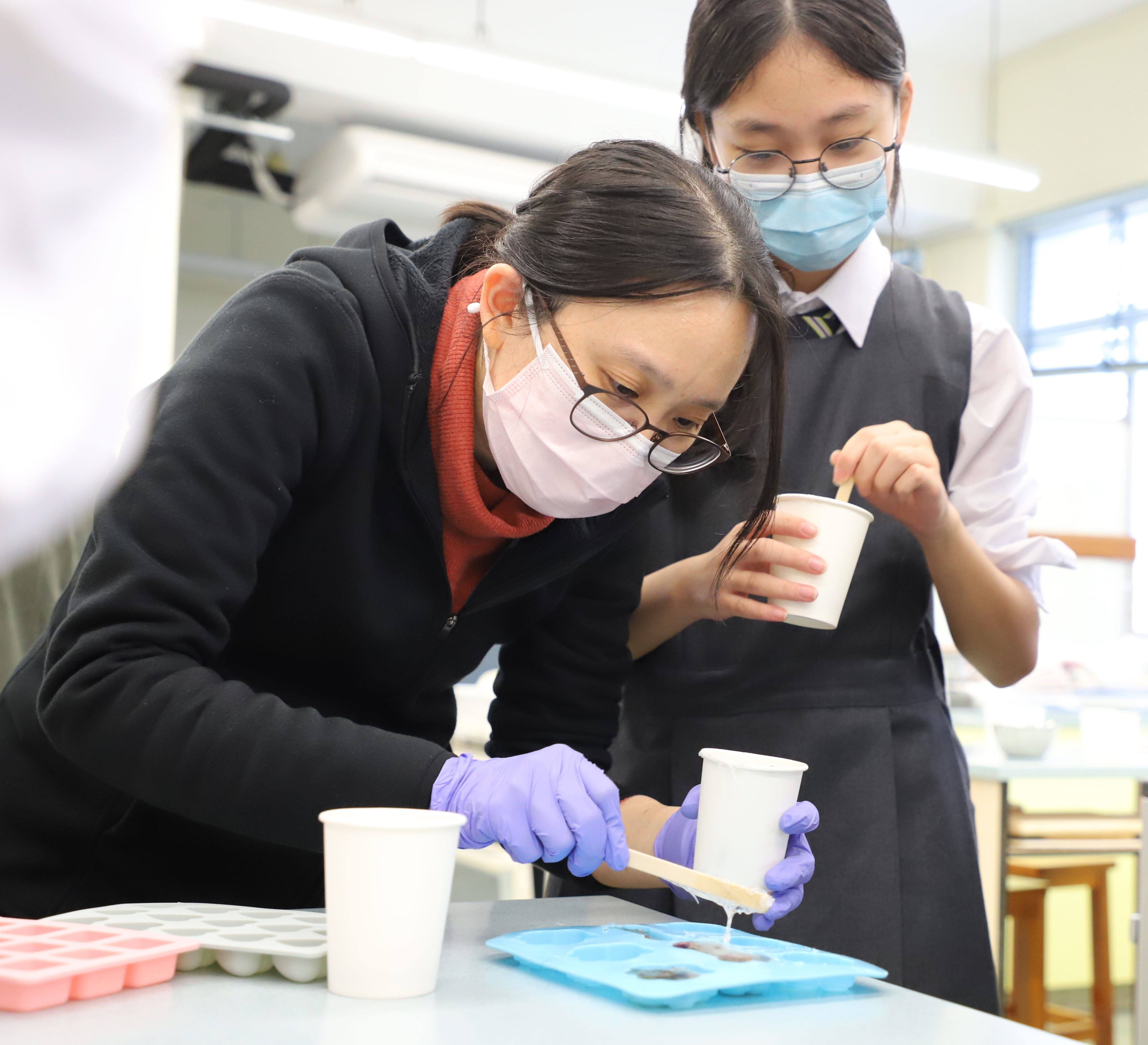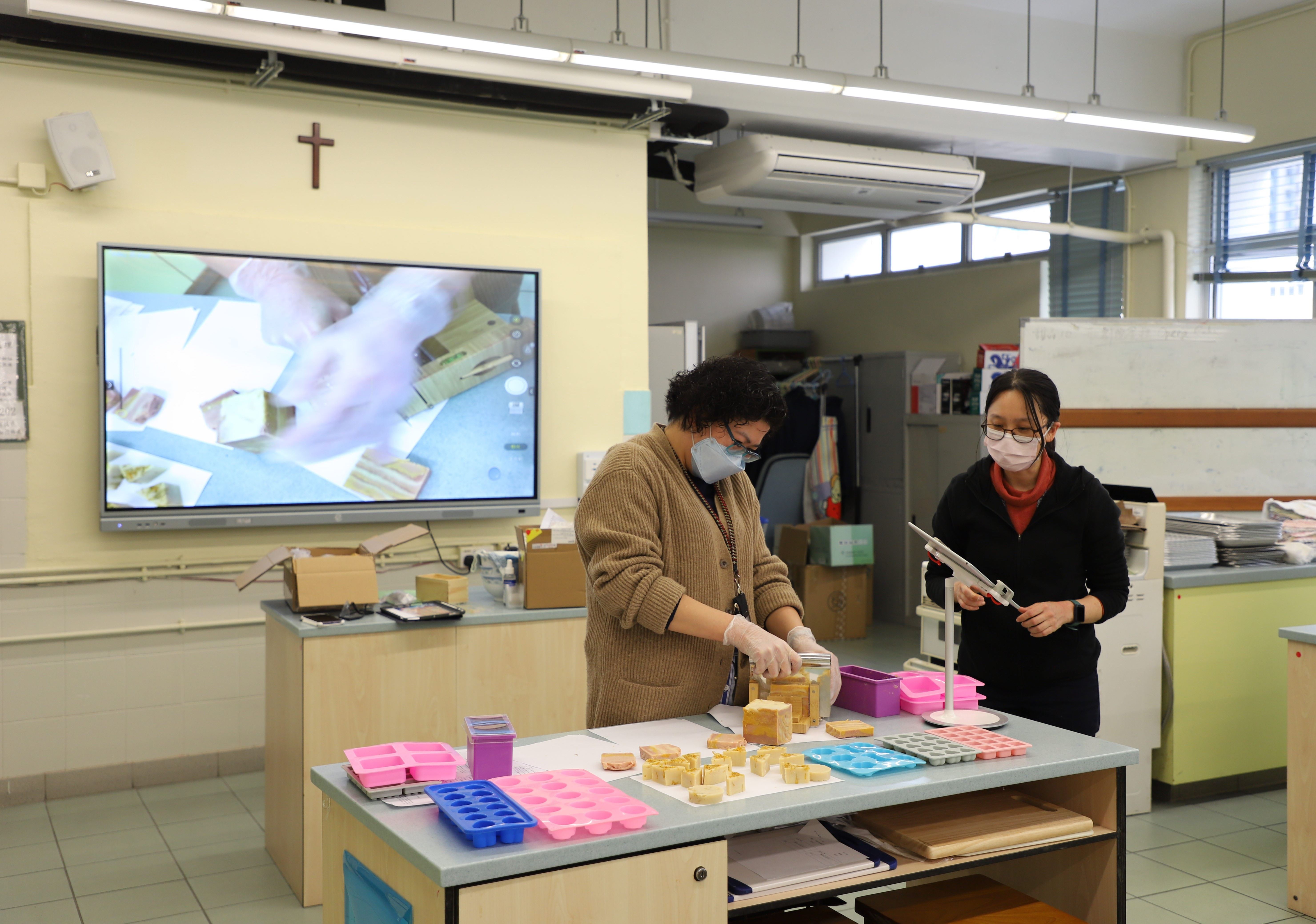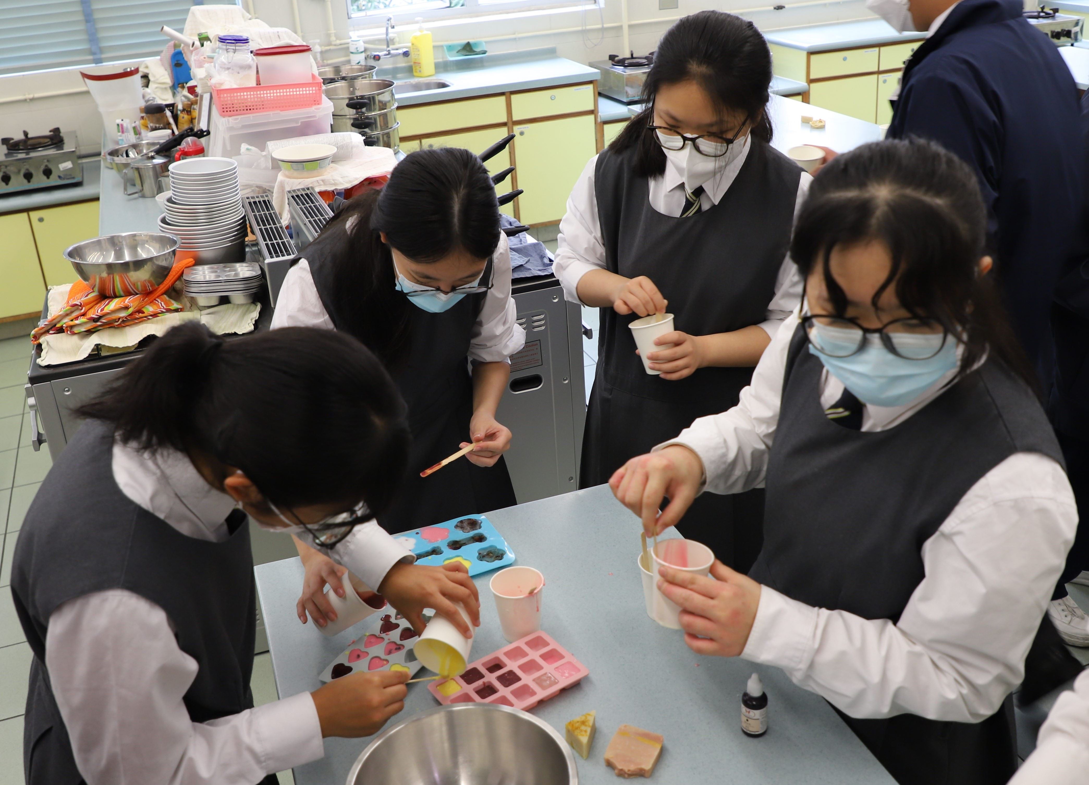 STEAM教育周中,同學在家政室,利用簡單材料,例如植物油和氫氧化鈉,自製手工皂。過程中同學不但認識到肥皂的結構及清潔原理,還能透過簡單步驟,動手實作,做出一塊屬於自己的香皂。