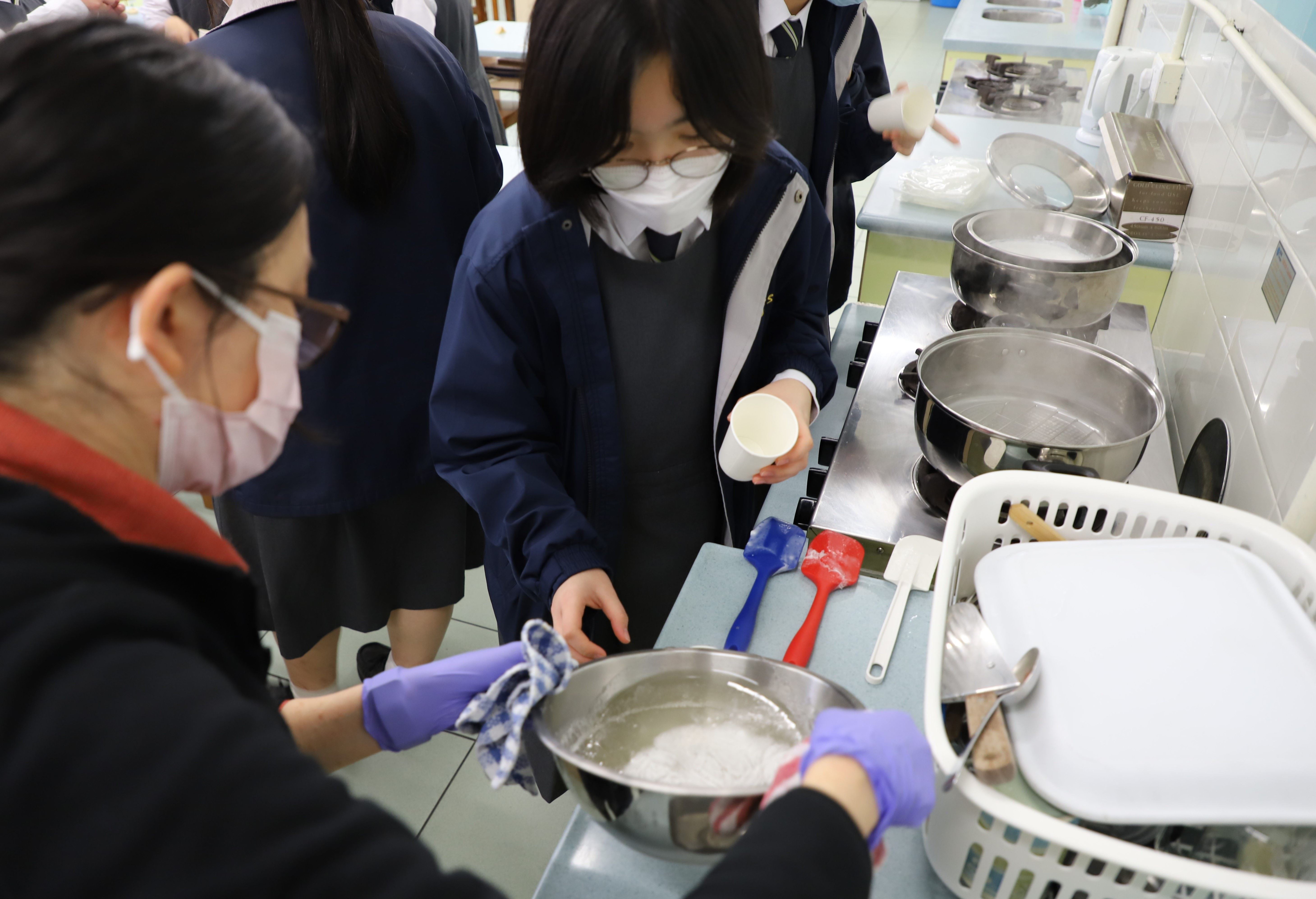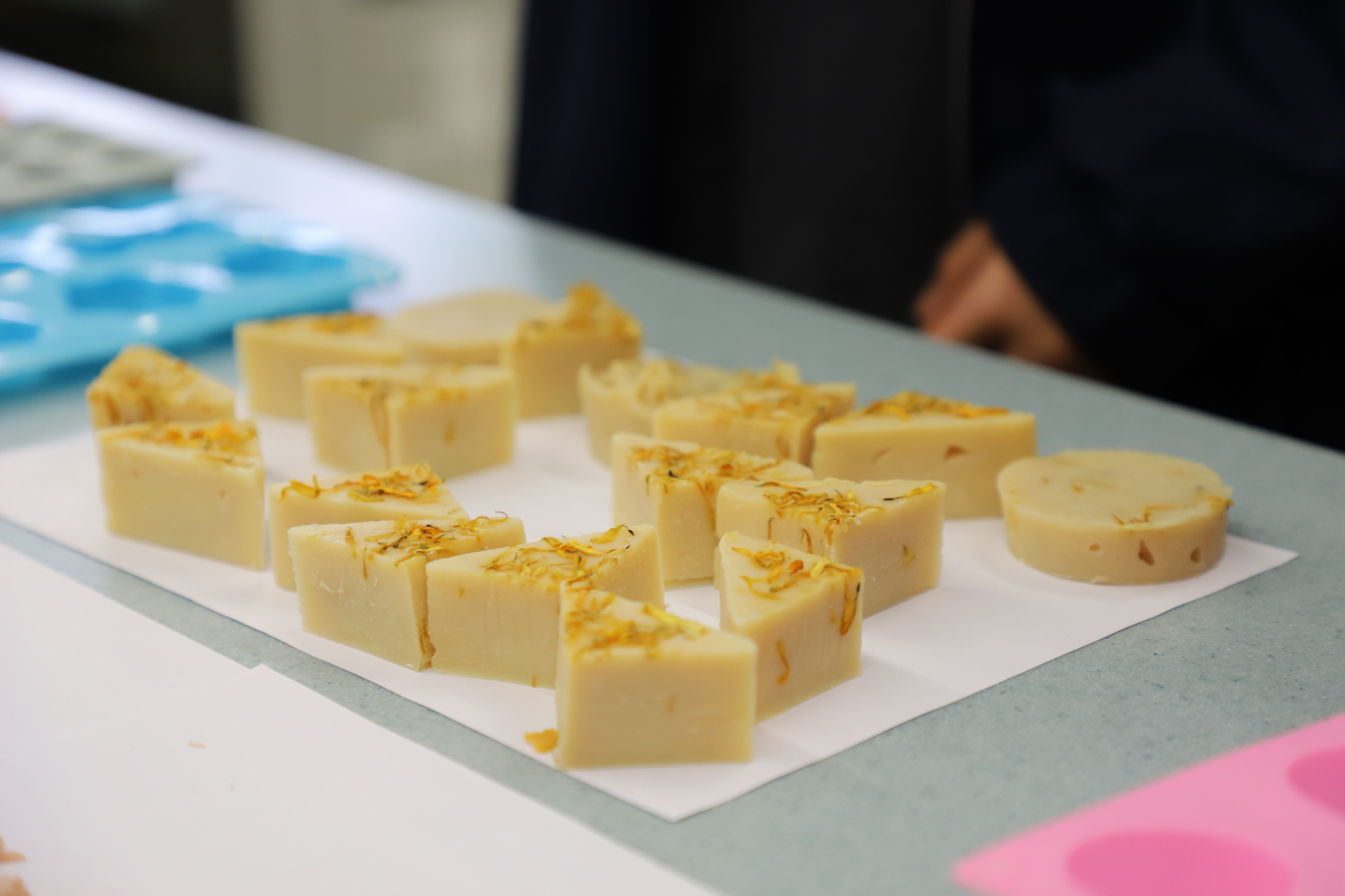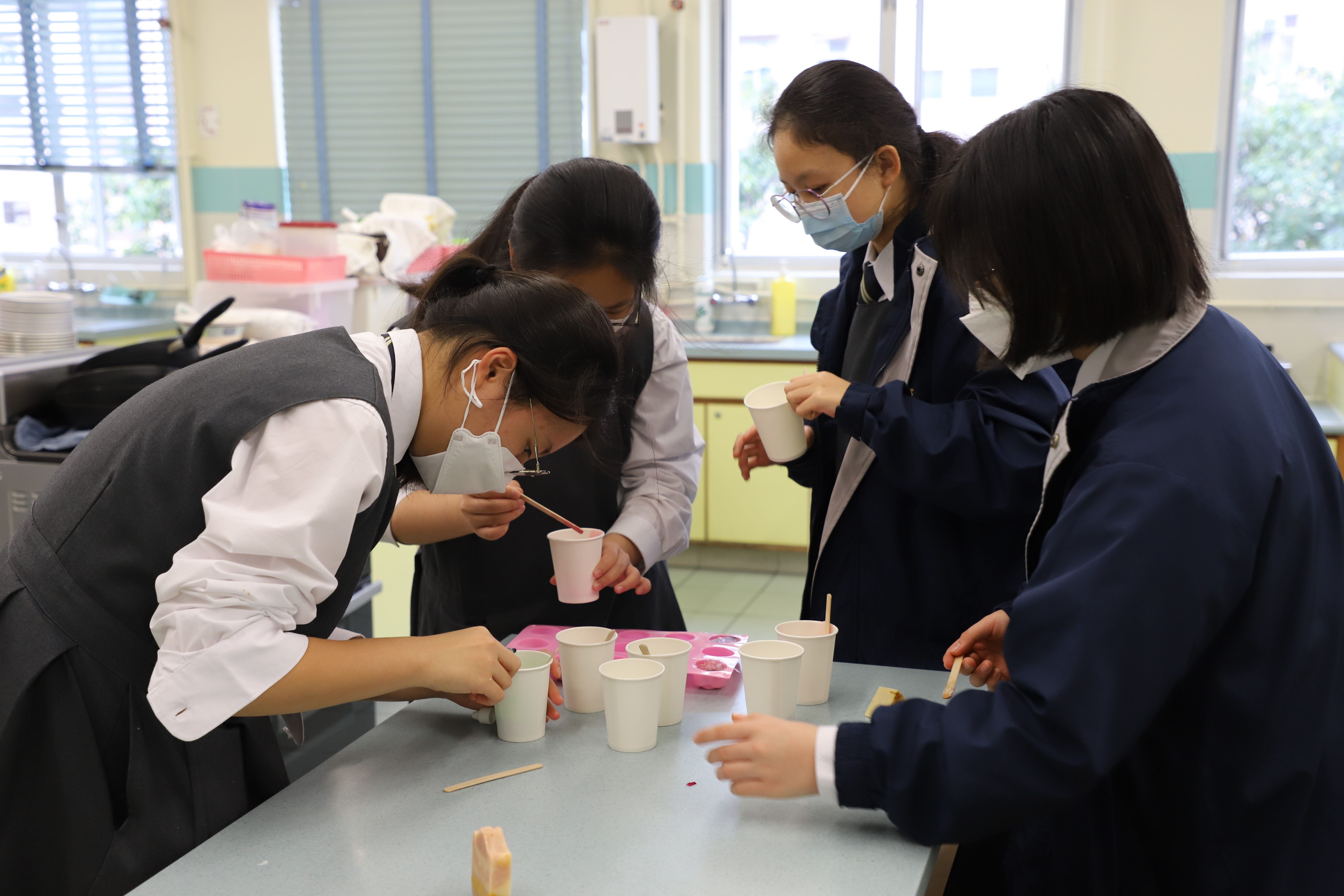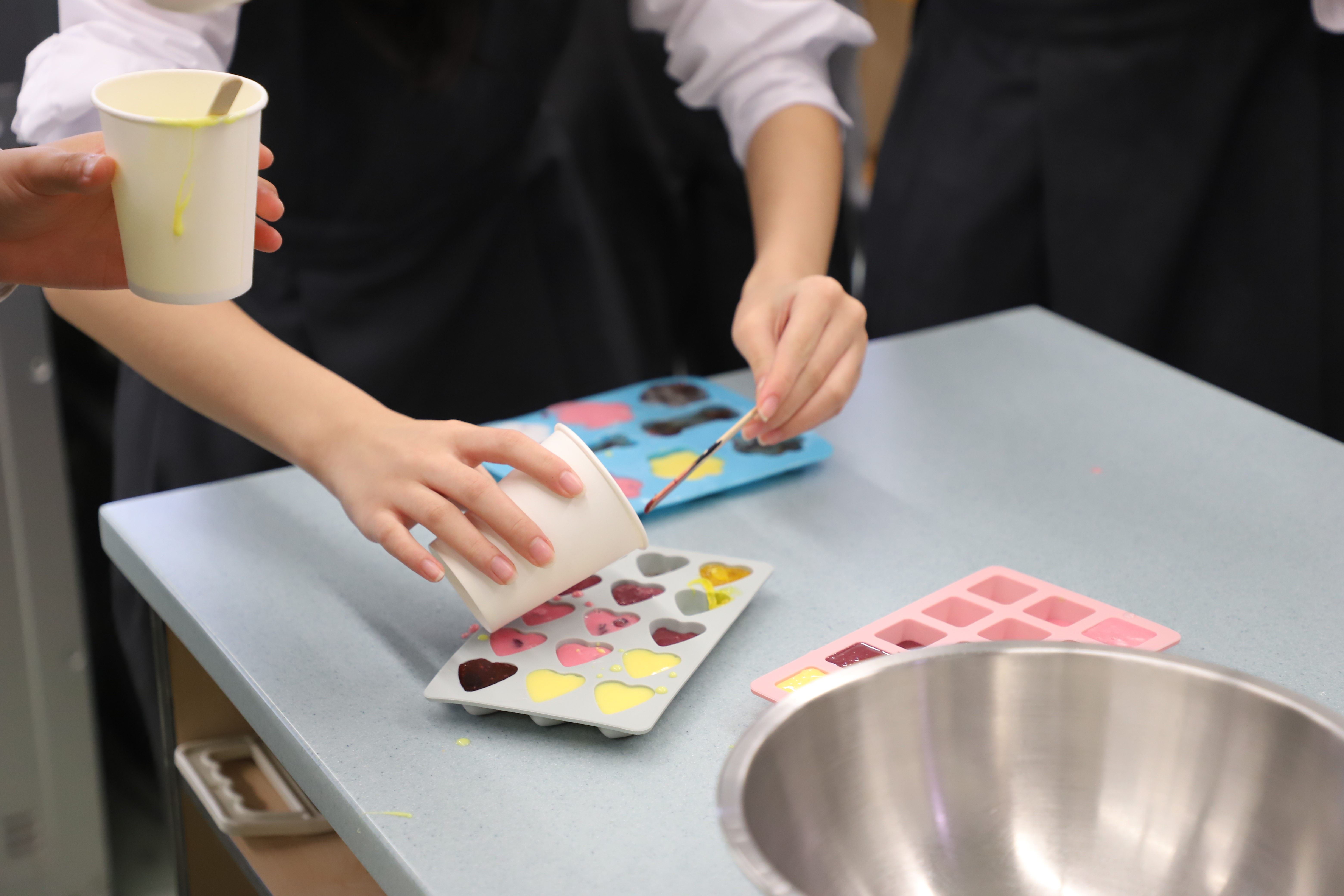 STEAM教育周中,同學在家政室,利用簡單材料,例如植物油和氫氧化鈉,自製手工皂。過程中同學不但認識到肥皂的結構及清潔原理,還能透過簡單步驟,動手實作,做出一塊屬於自己的香皂。