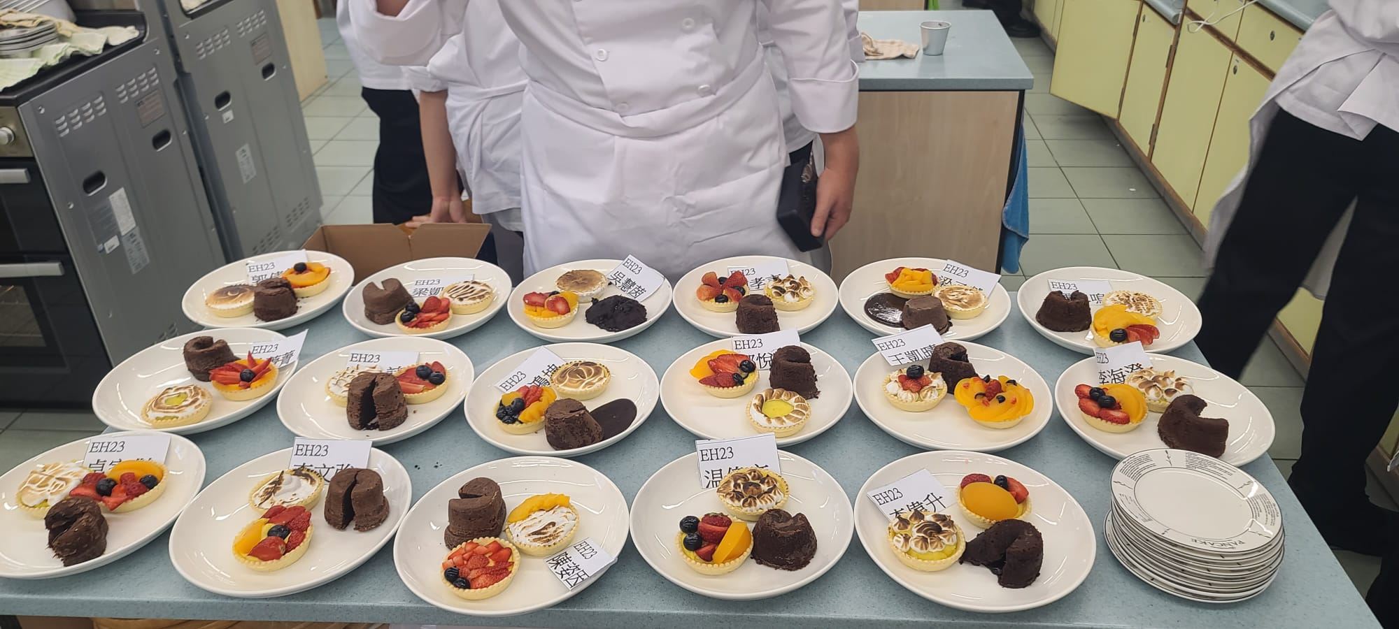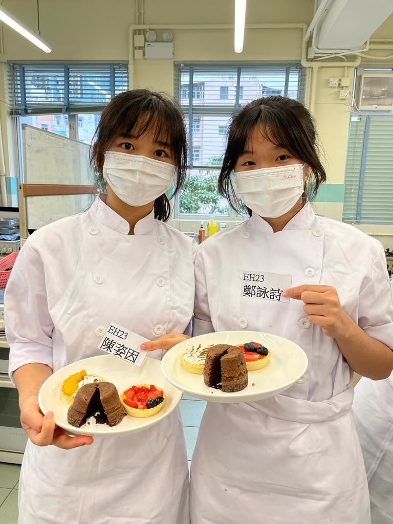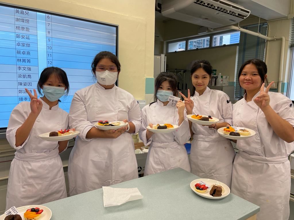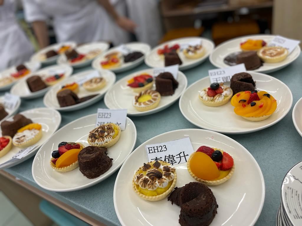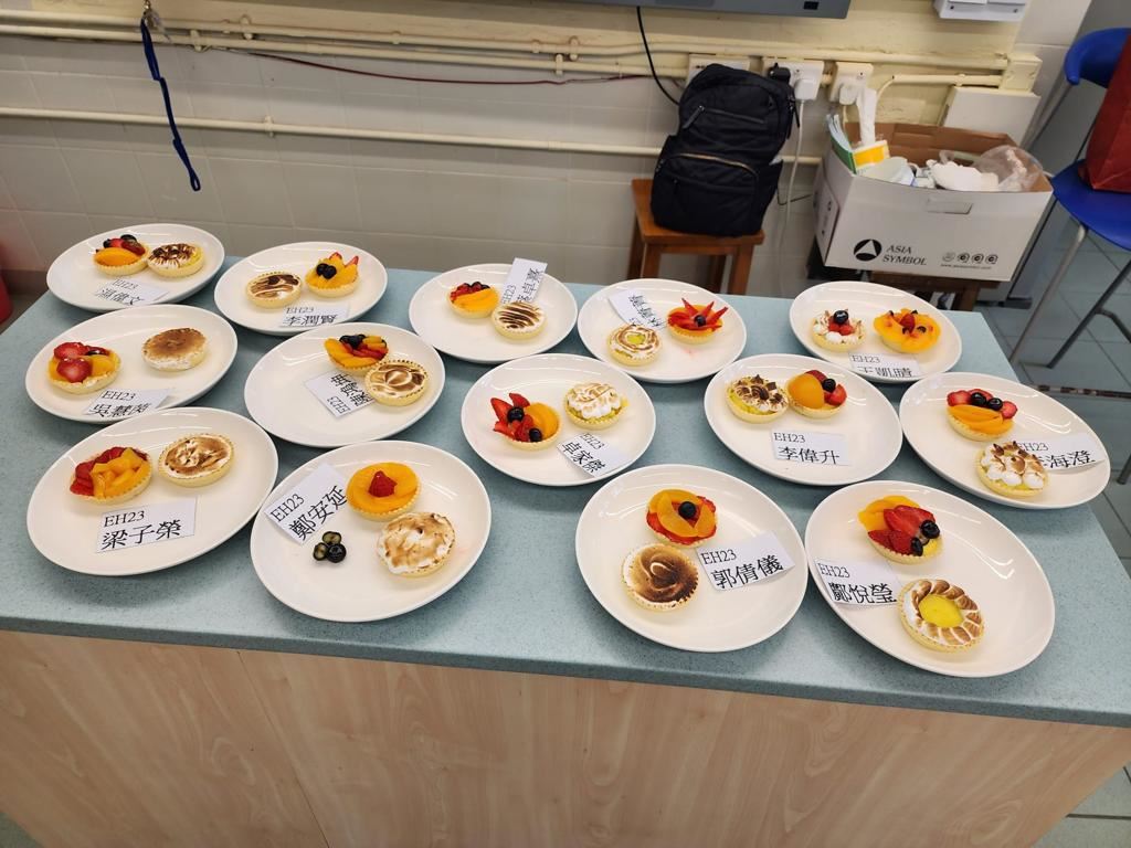 報讀了應用學習課程(甜品及咖啡店營運)的中四級學生於4月26日進行了甜品考核。考核內容為製作水果撻及心太軟,每個同學都活用己學,將課堂內教授過的技巧都靈活運用出來,完成一個個精美的甜品。