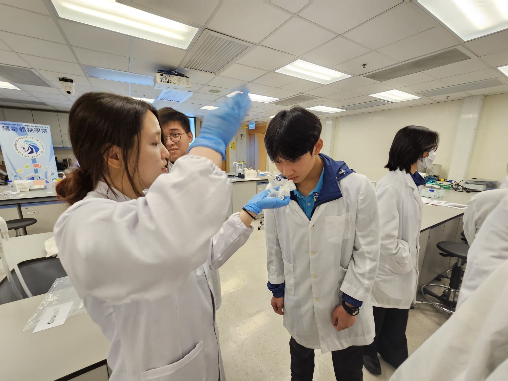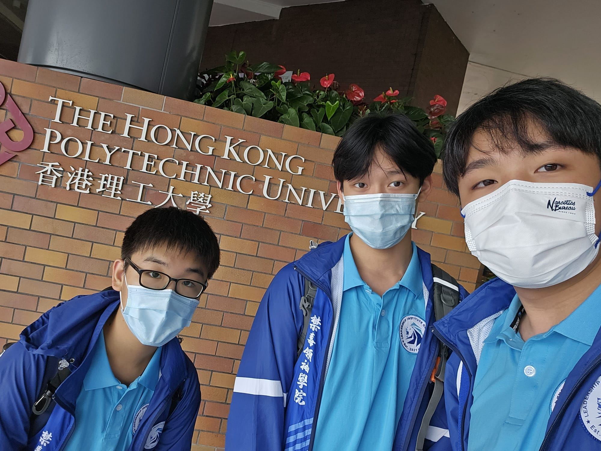 4A陳鴻坤、4D林瑞麒及鄧啓泓於4月29日前往香港理工大學出席第一次學員訓練日。當日,他們認識毒品及其禍害,聆聽販運毒品的法律責任及個案分享並參與STEM抗毒工作坊。