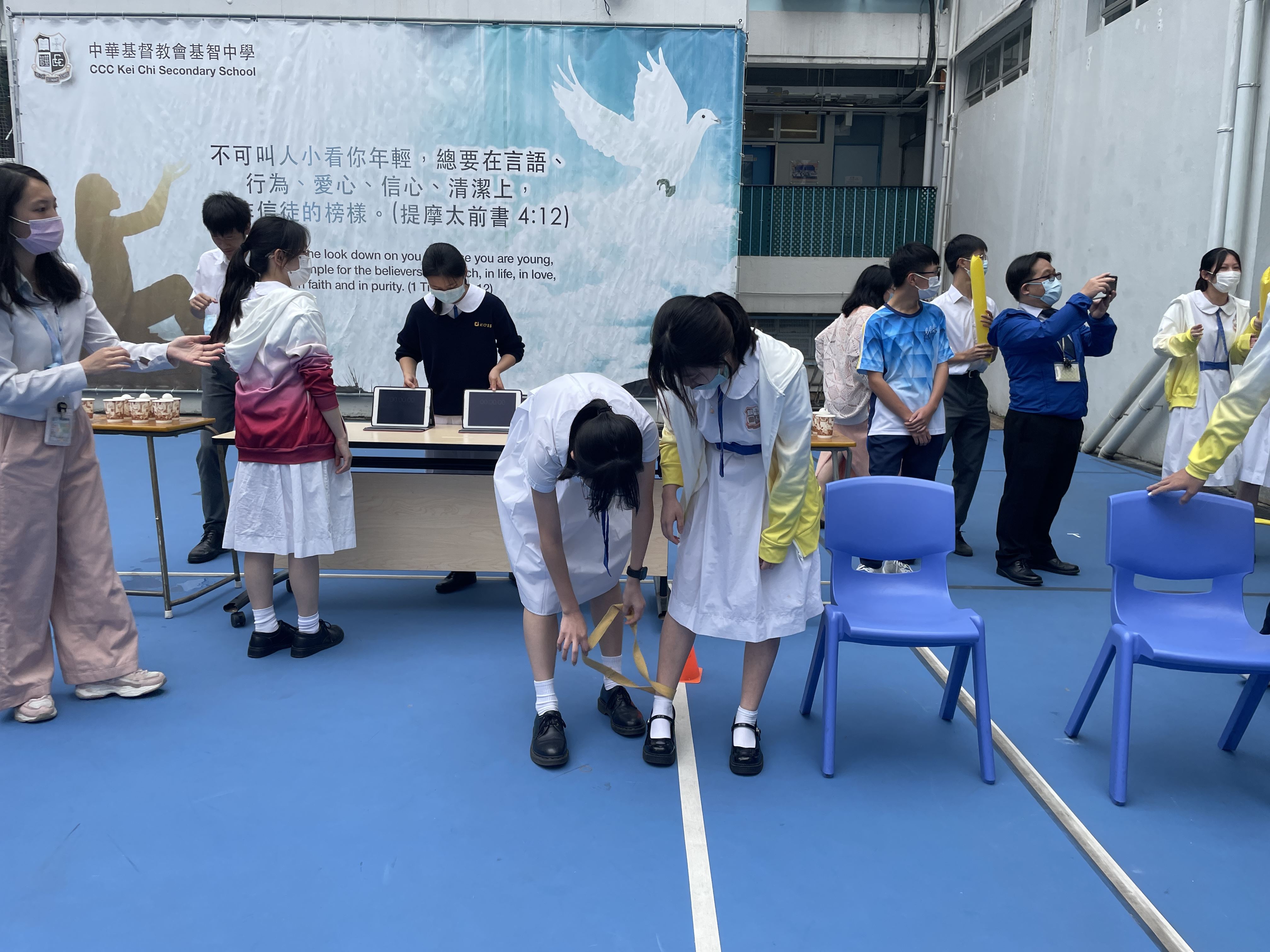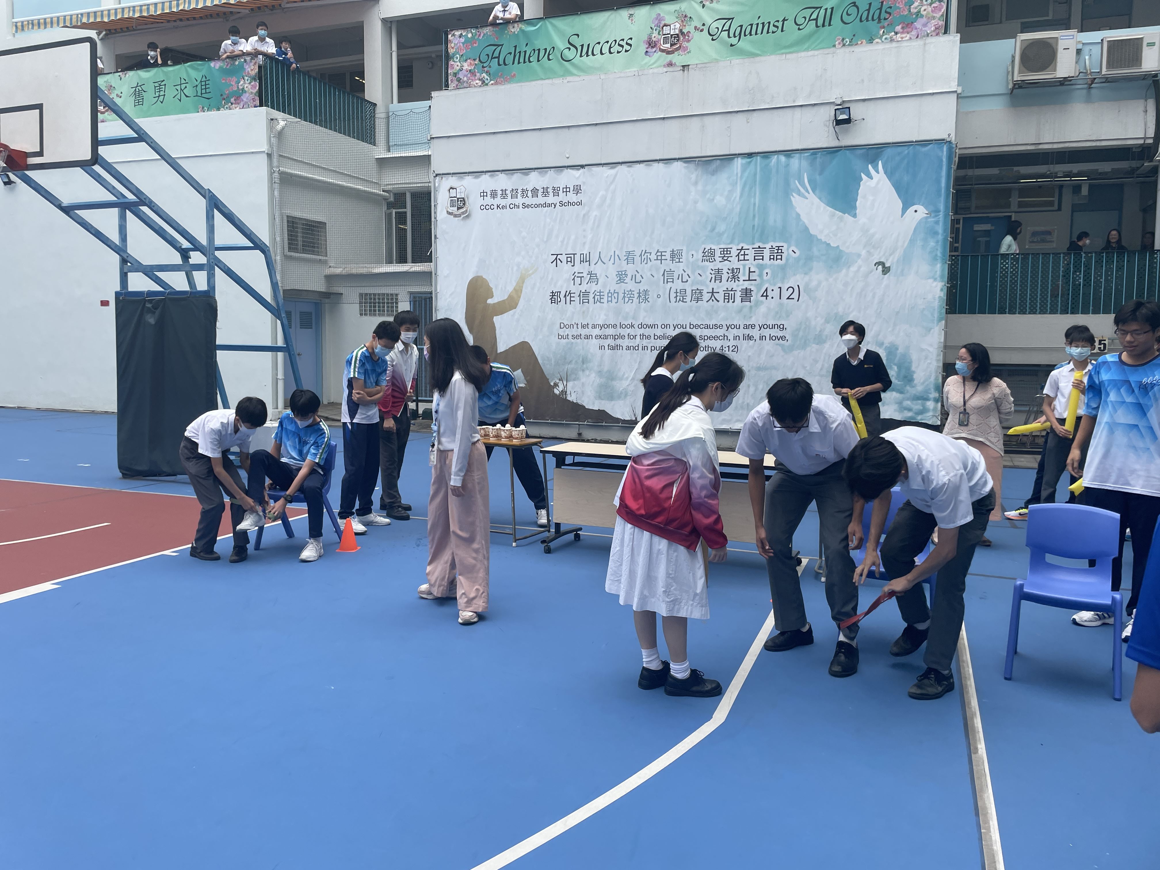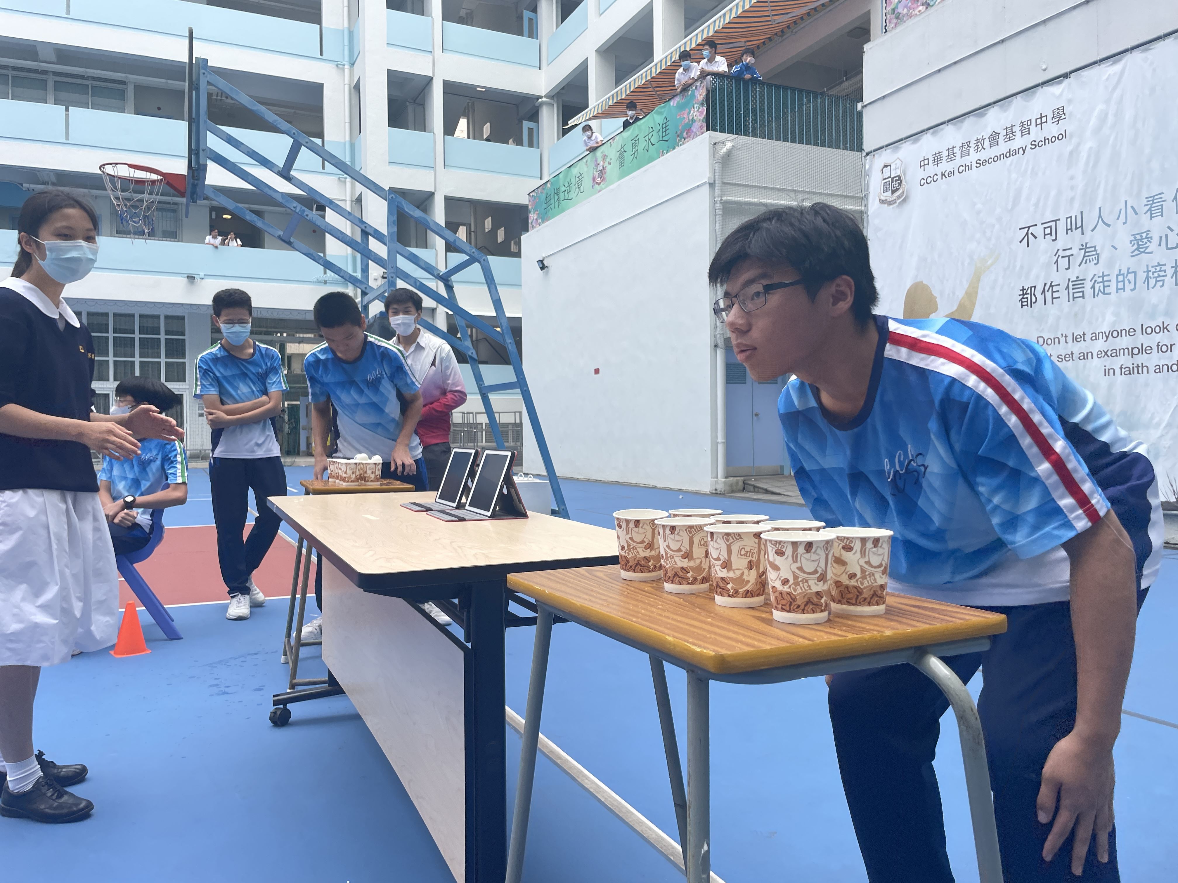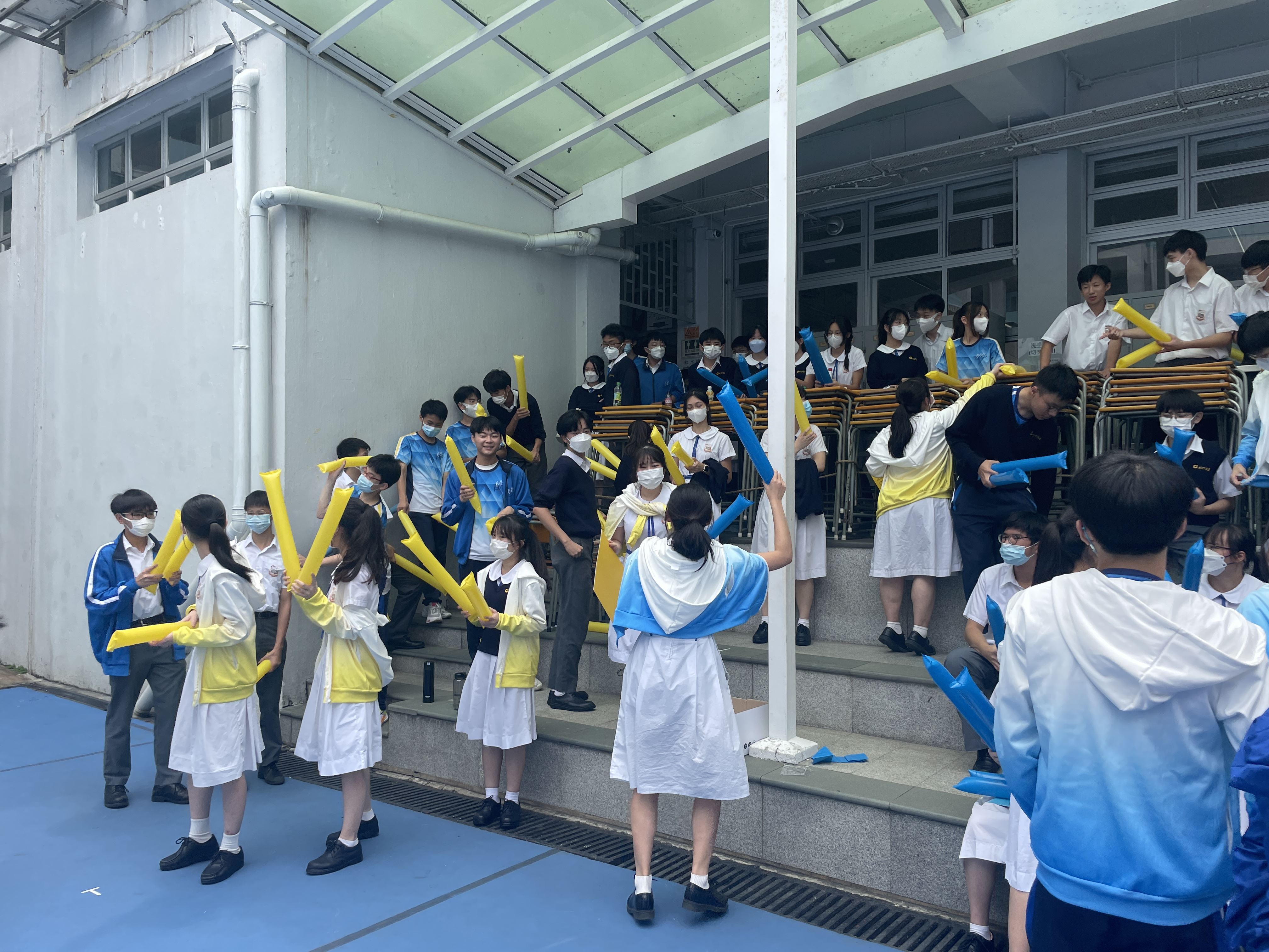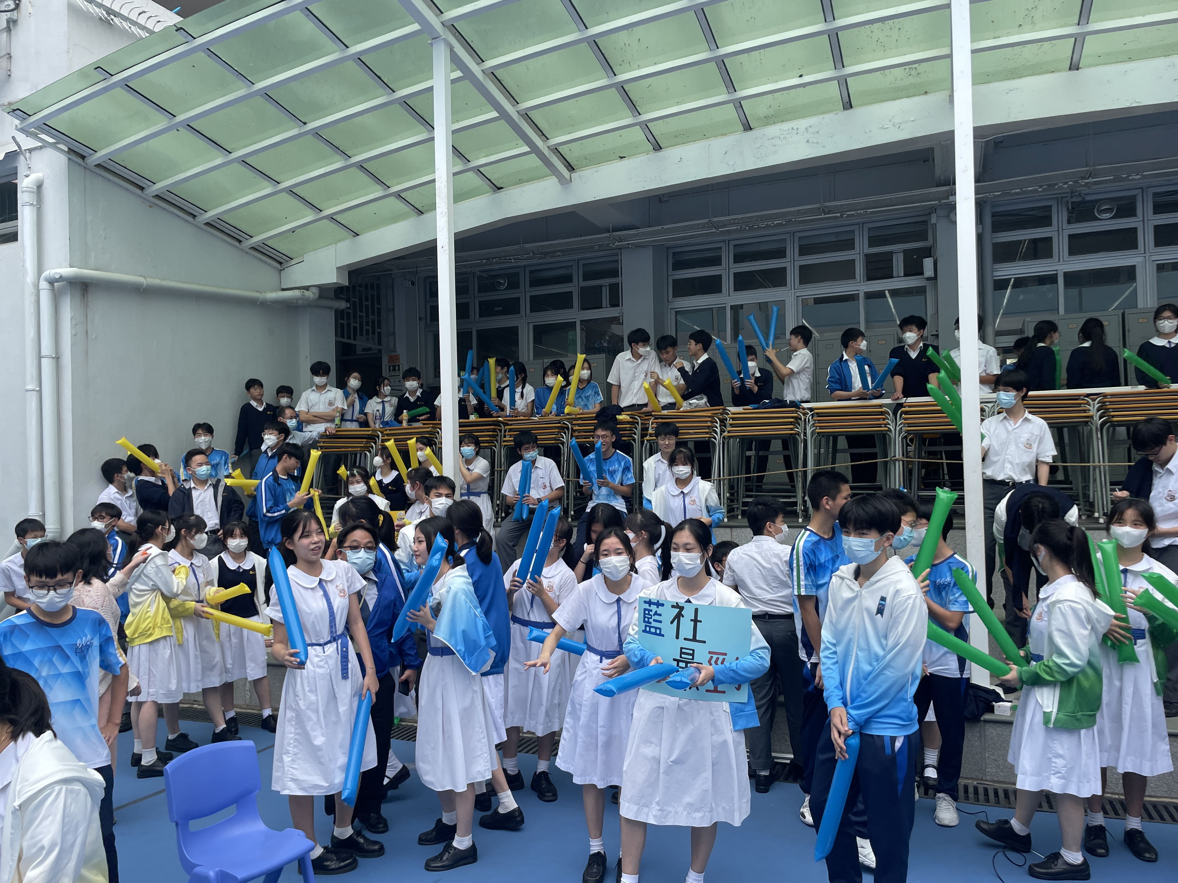 社際月活動的第一擊「時間競賽」已順利進行,最終由藍社勝出。各社同學們都到場為自己所屬的社別打氣。
