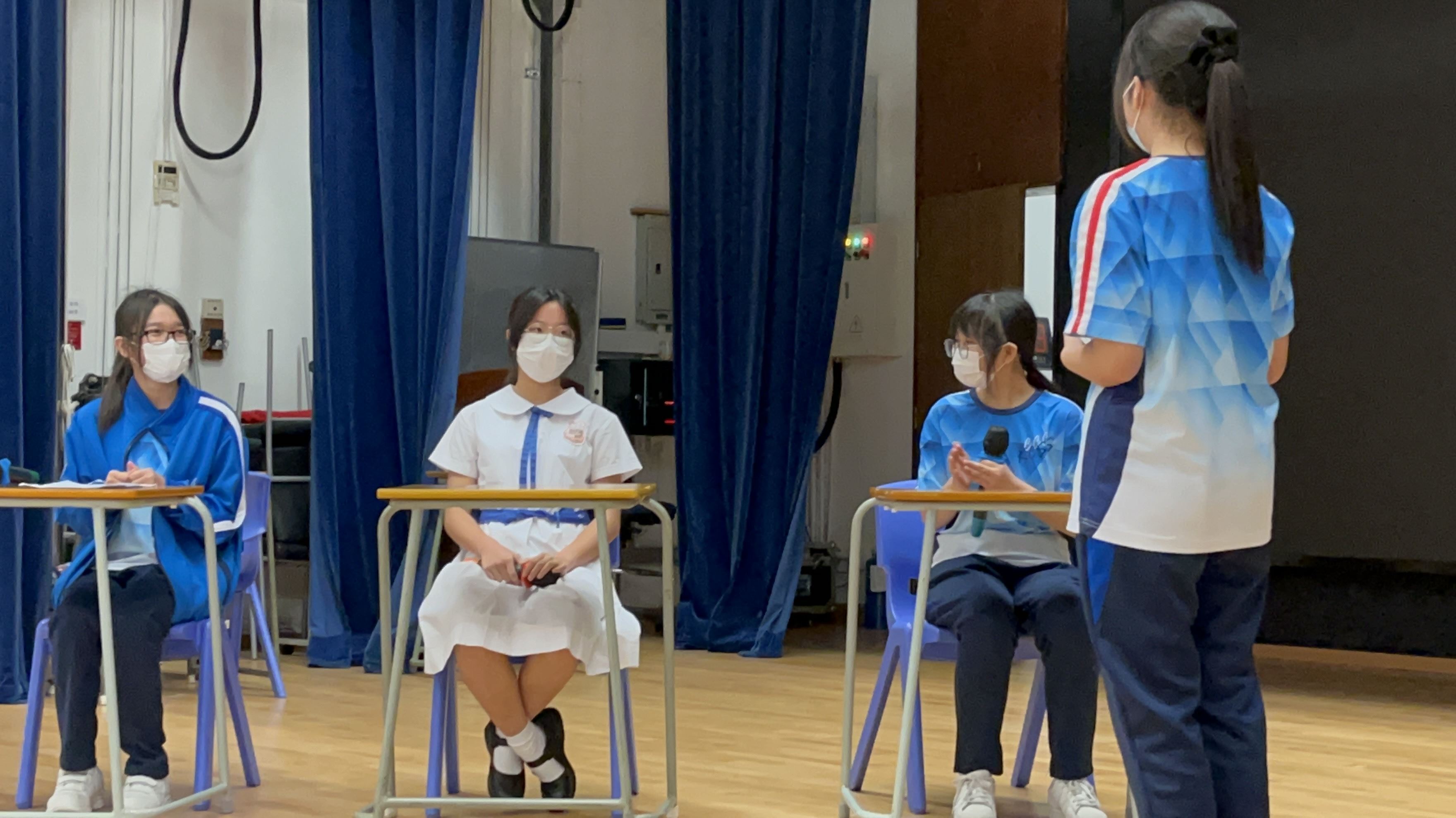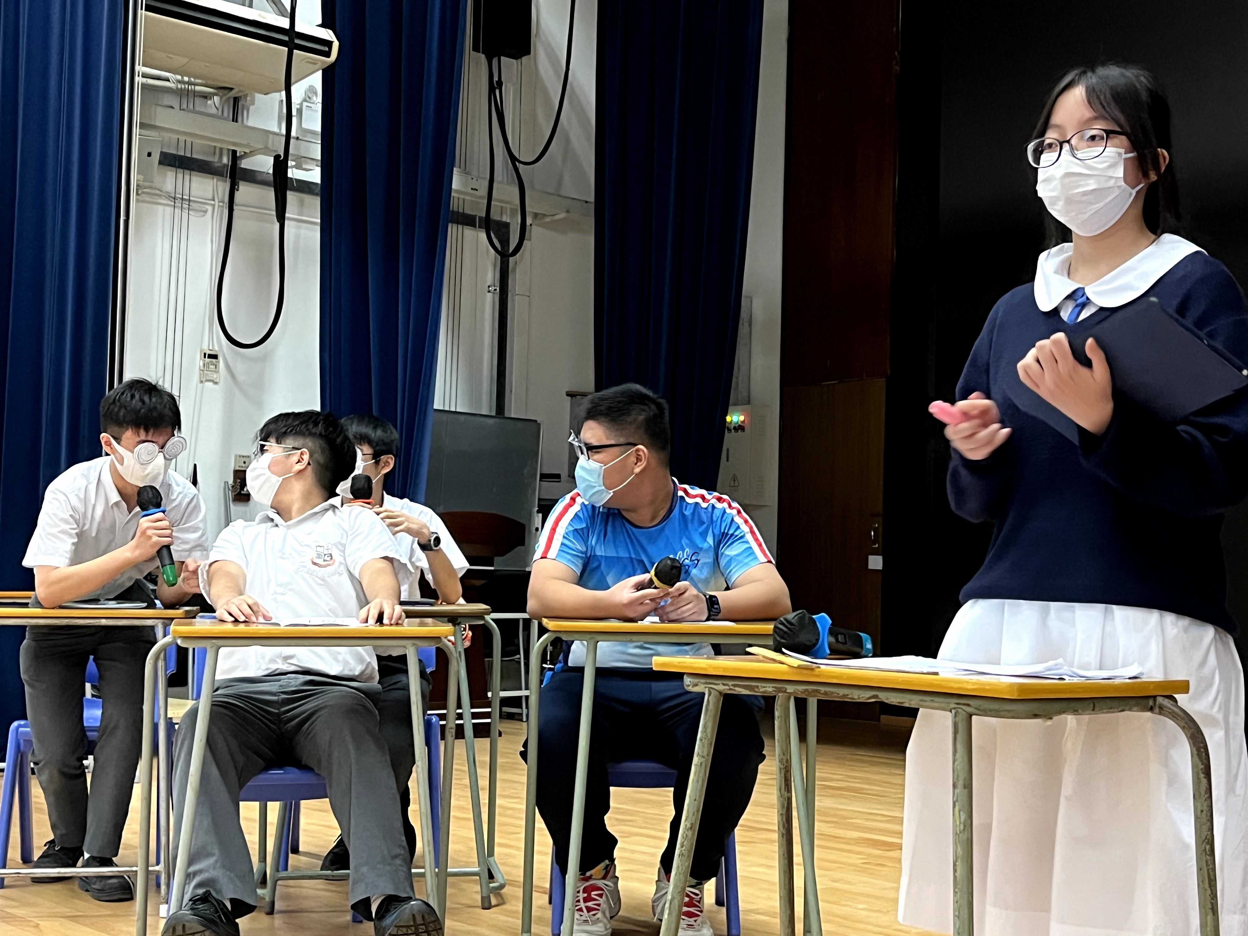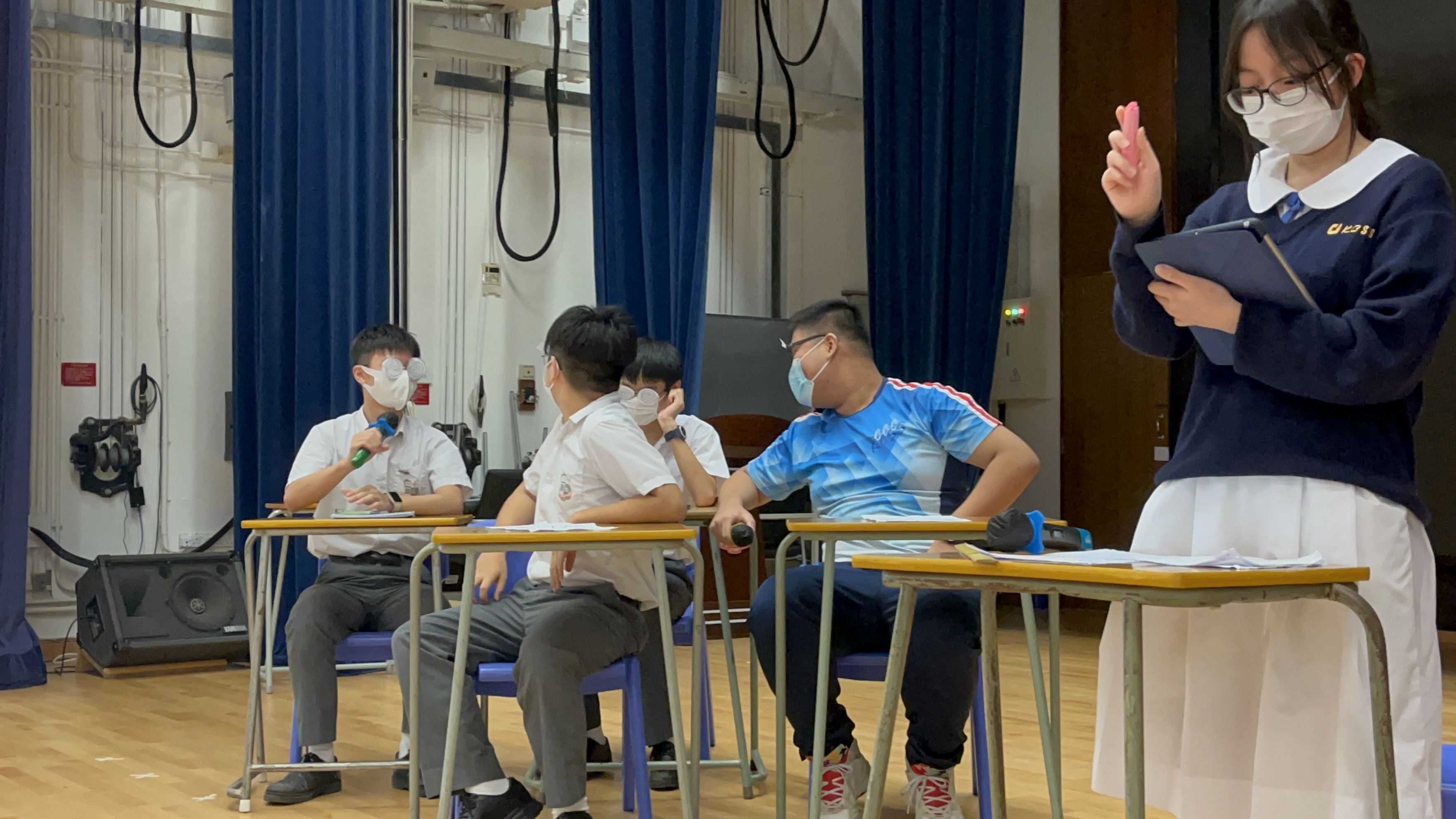中文科中二閱讀課進行戲劇教學,日前進行全級戲劇比賽,同學嘗試編寫劇本及演出,表現投入。