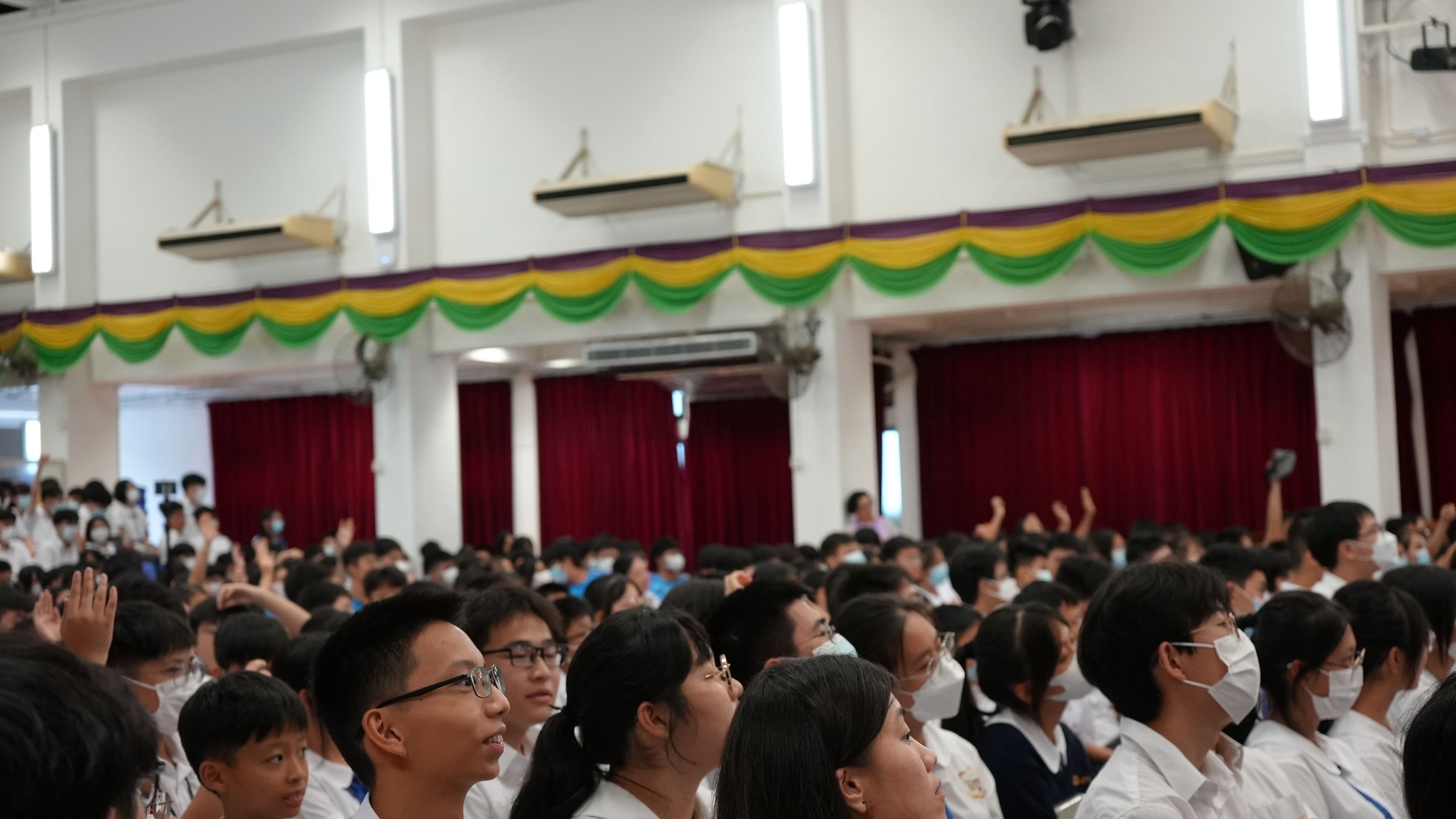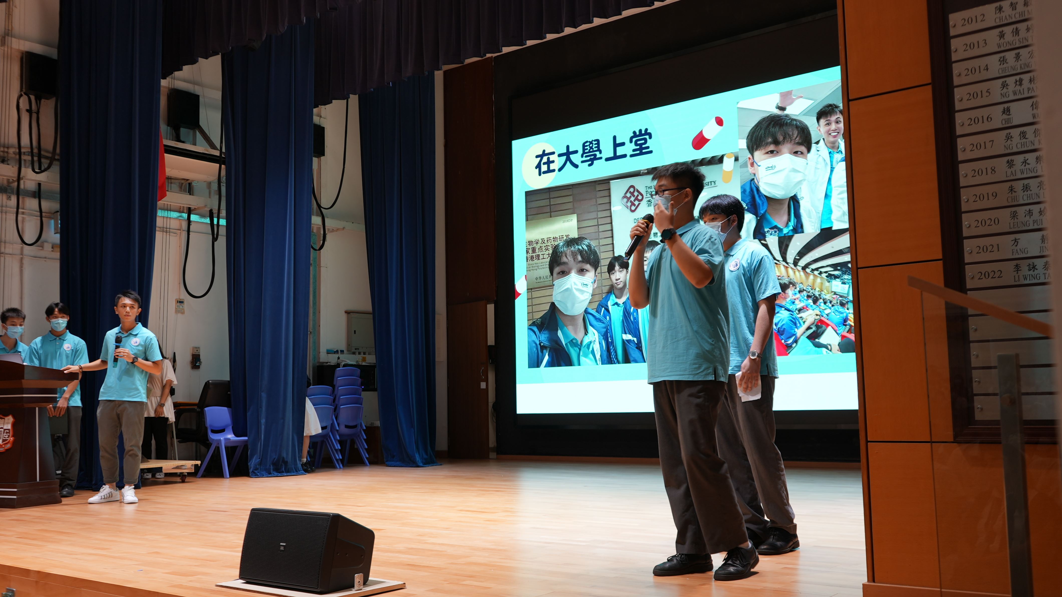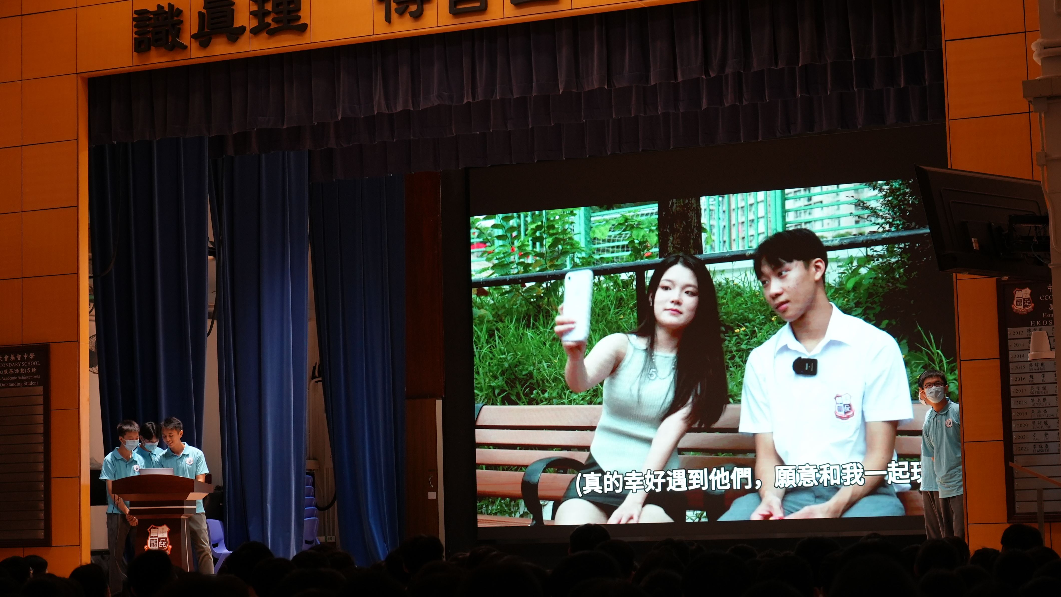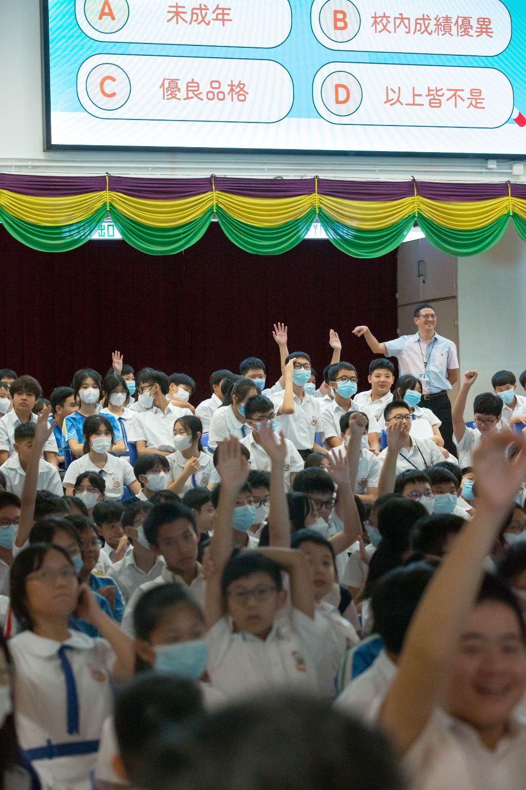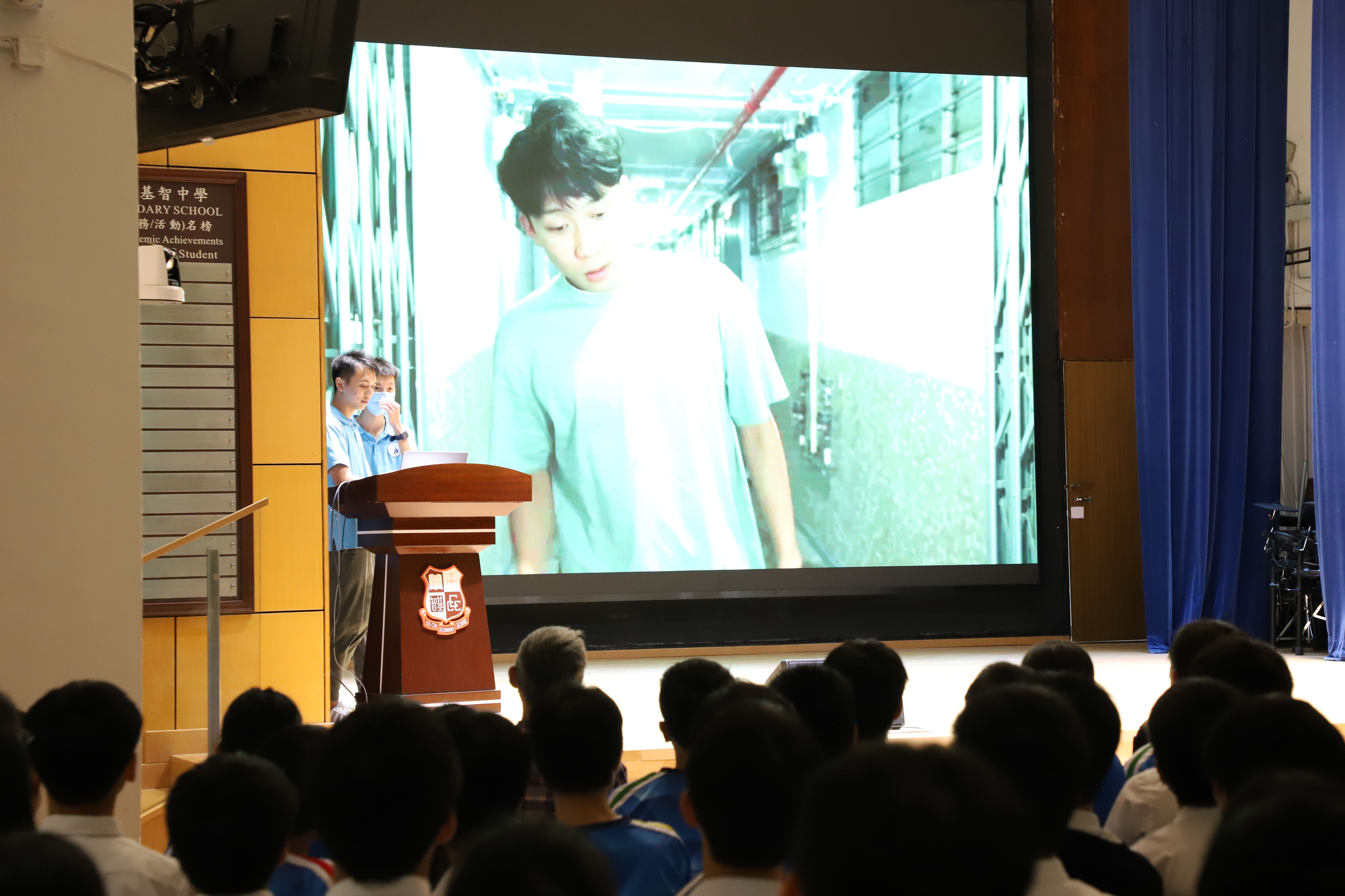 禁毒領袖學院學員大學生卓俊羲 (Jerry)、5A陳鴻坤、5D陳澤鋒、林瑞麒及鄧啓泓於9月11日向全校簡單介紹禁毒領袖學院和青少年最常吸食的毒品。通過觀賞學員精心製作的短片和參與問答及投票互動環節,學生加深對大麻和可卡因的認識,並更加了解吸食毒品帶來的禍害及販賣毒品的刑罰。