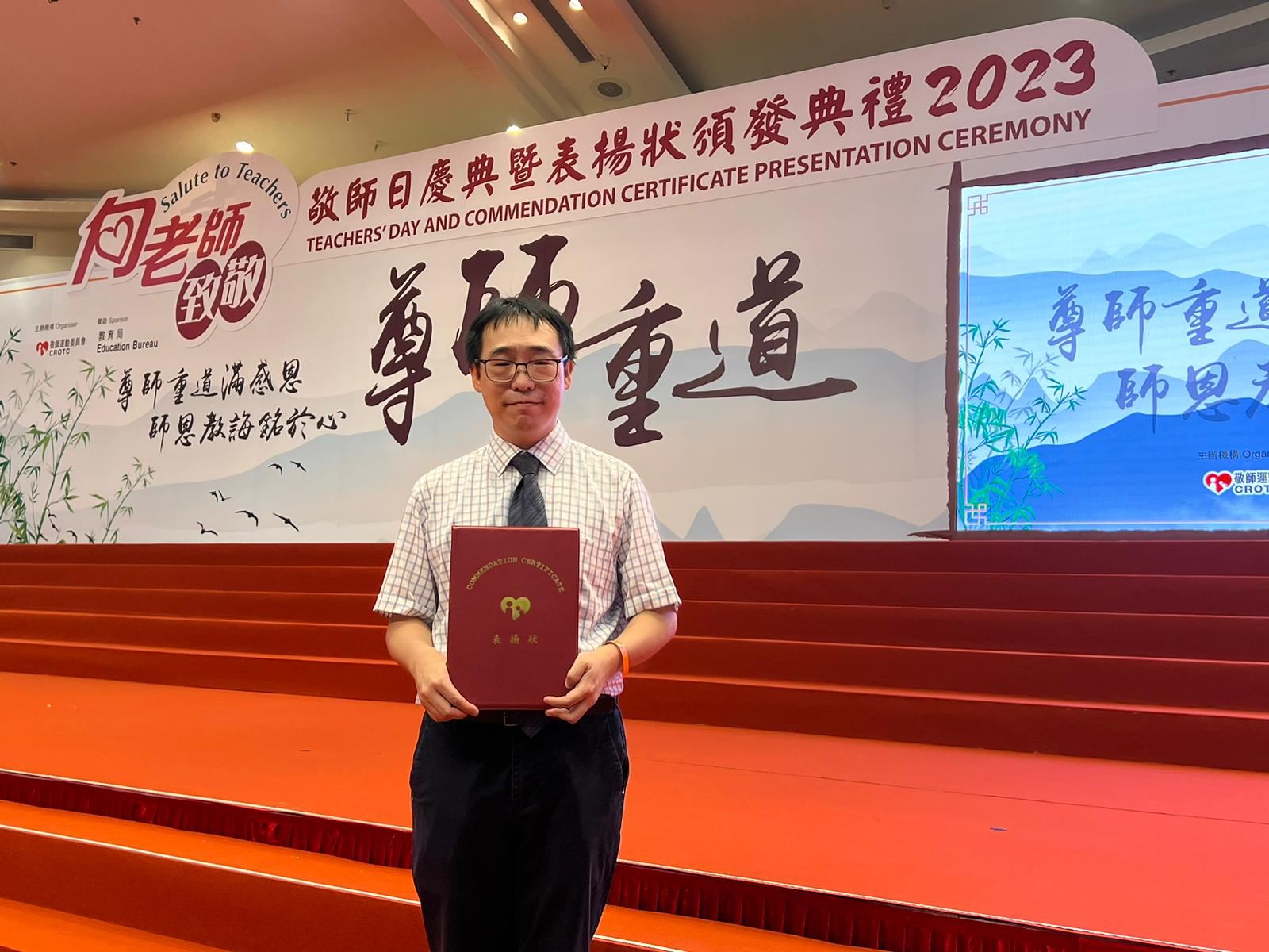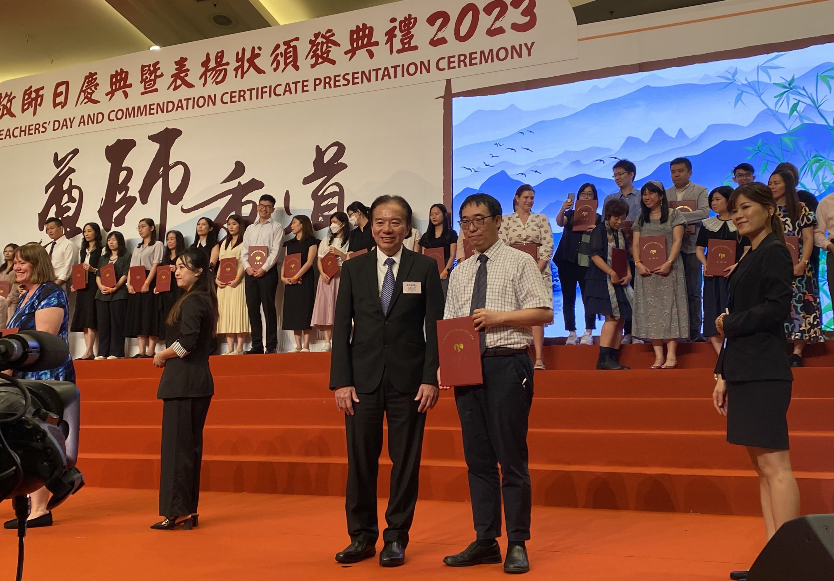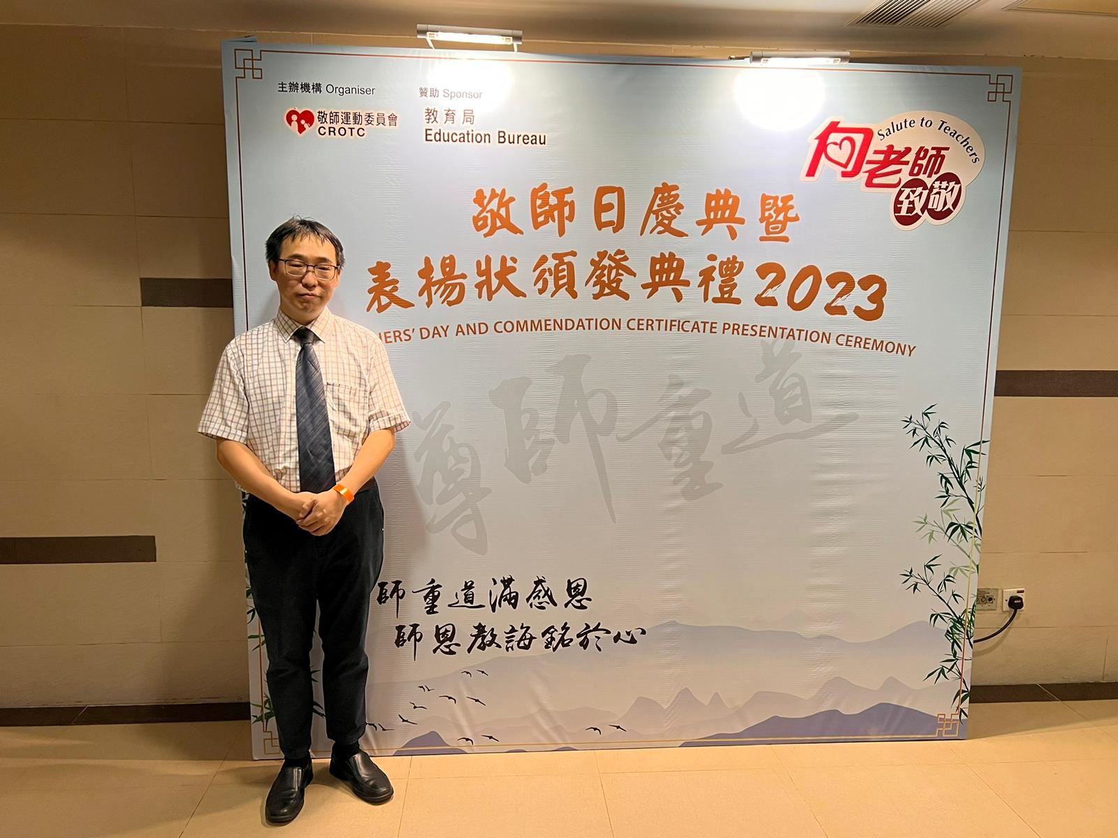 本校胡文銘老師早前出席由敬師運動委員會舉辦的「第二十八屆表揚教師計劃」頒獎典禮。在此,謹代表全校恭賀胡文銘老師,並分享他的喜悅。同時,更祝福胡文銘老師,身體健康,繼續春風化雨,事業更上層樓。
